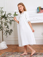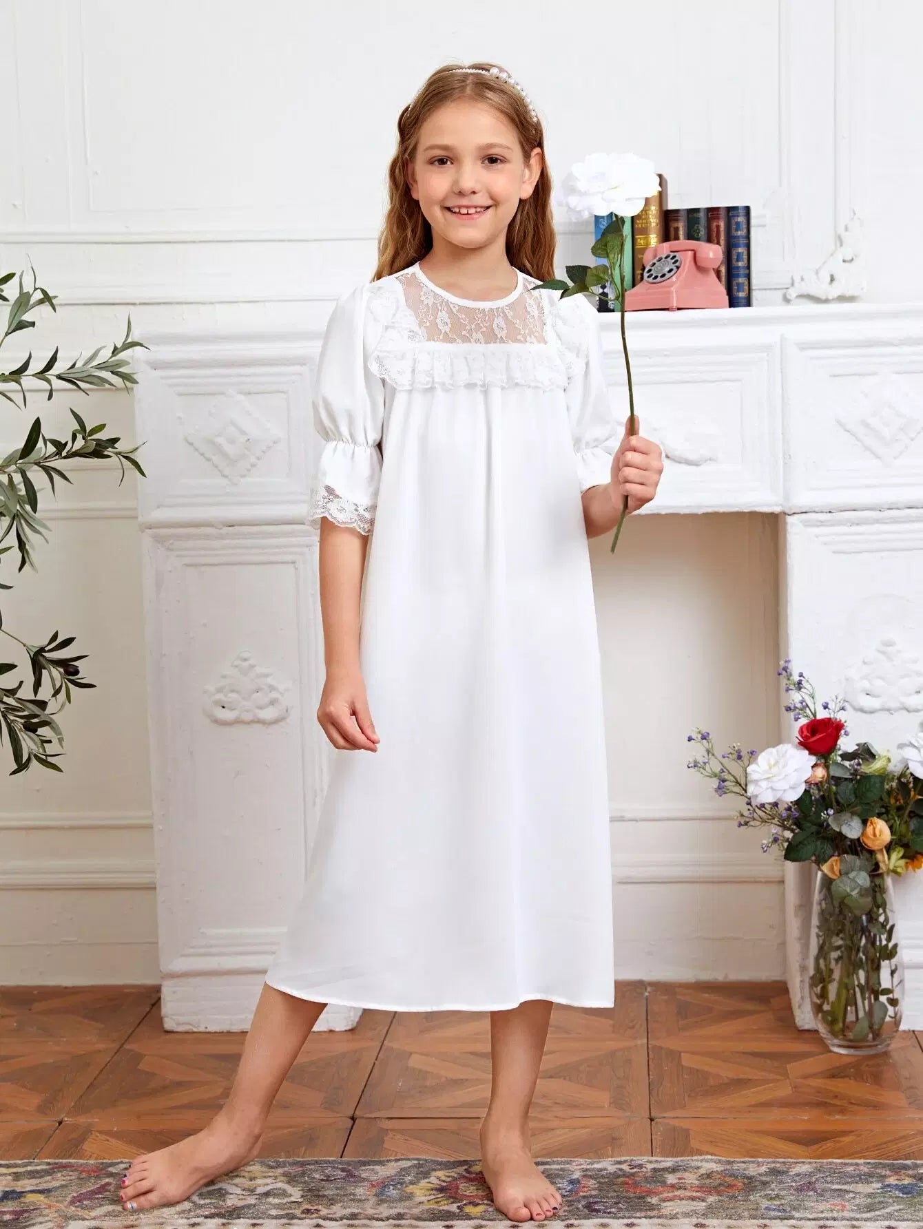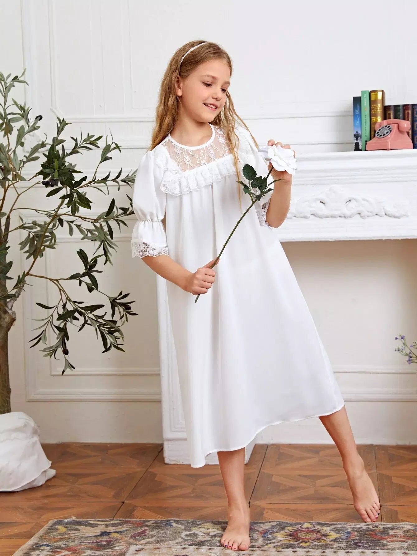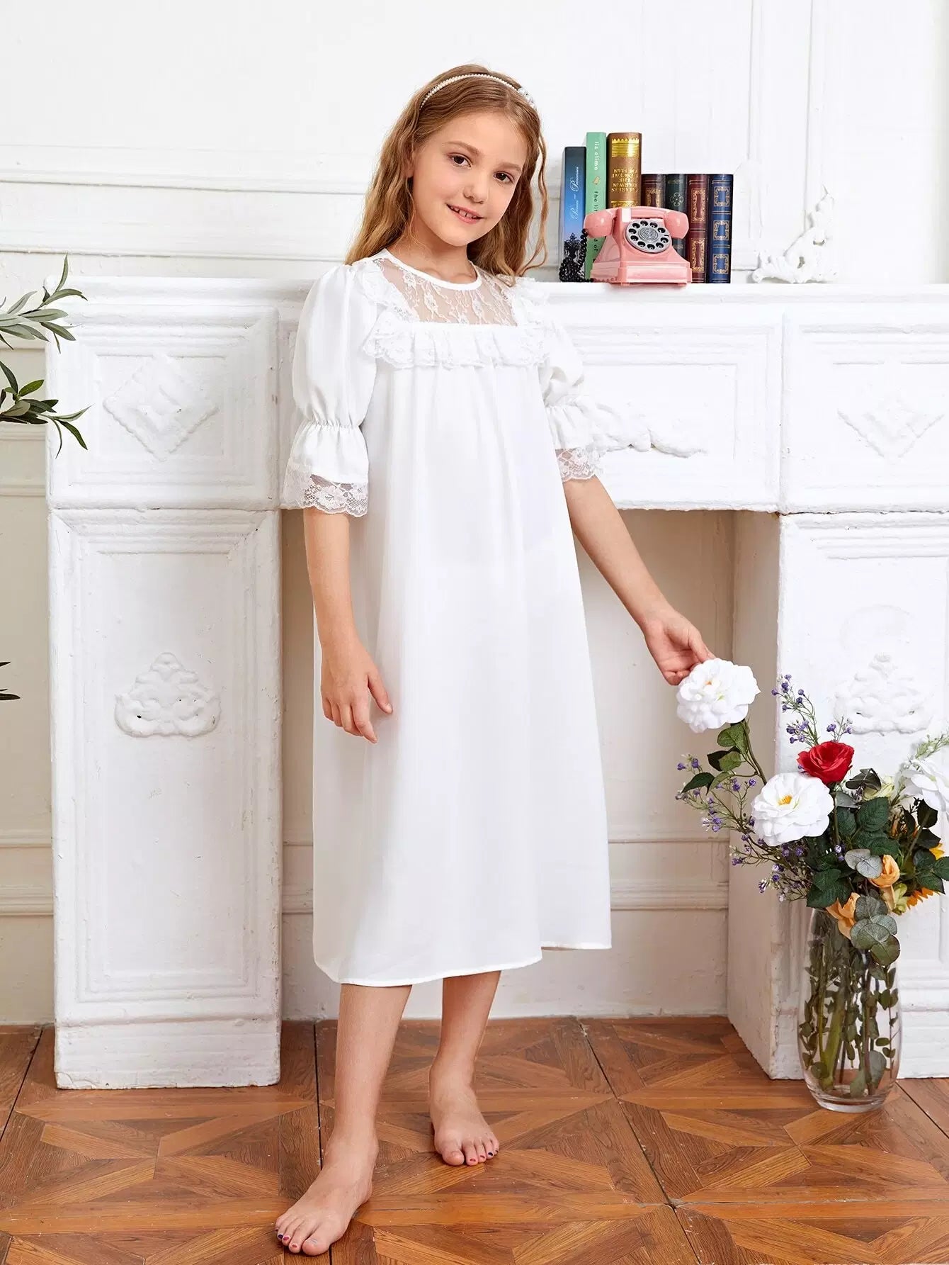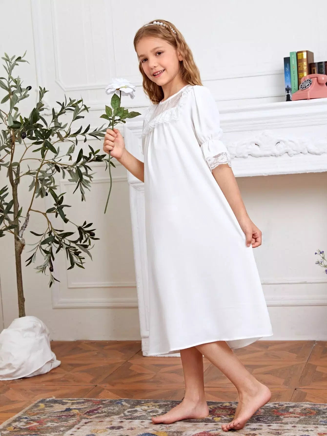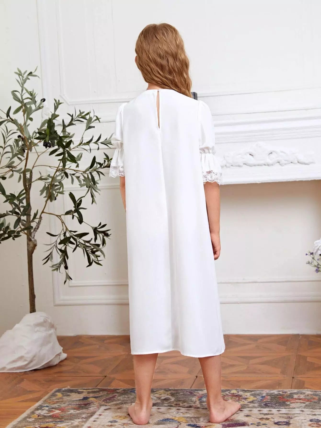 فستان نوم للبنات بأكمام منفوخة وحواف من الدانتيل