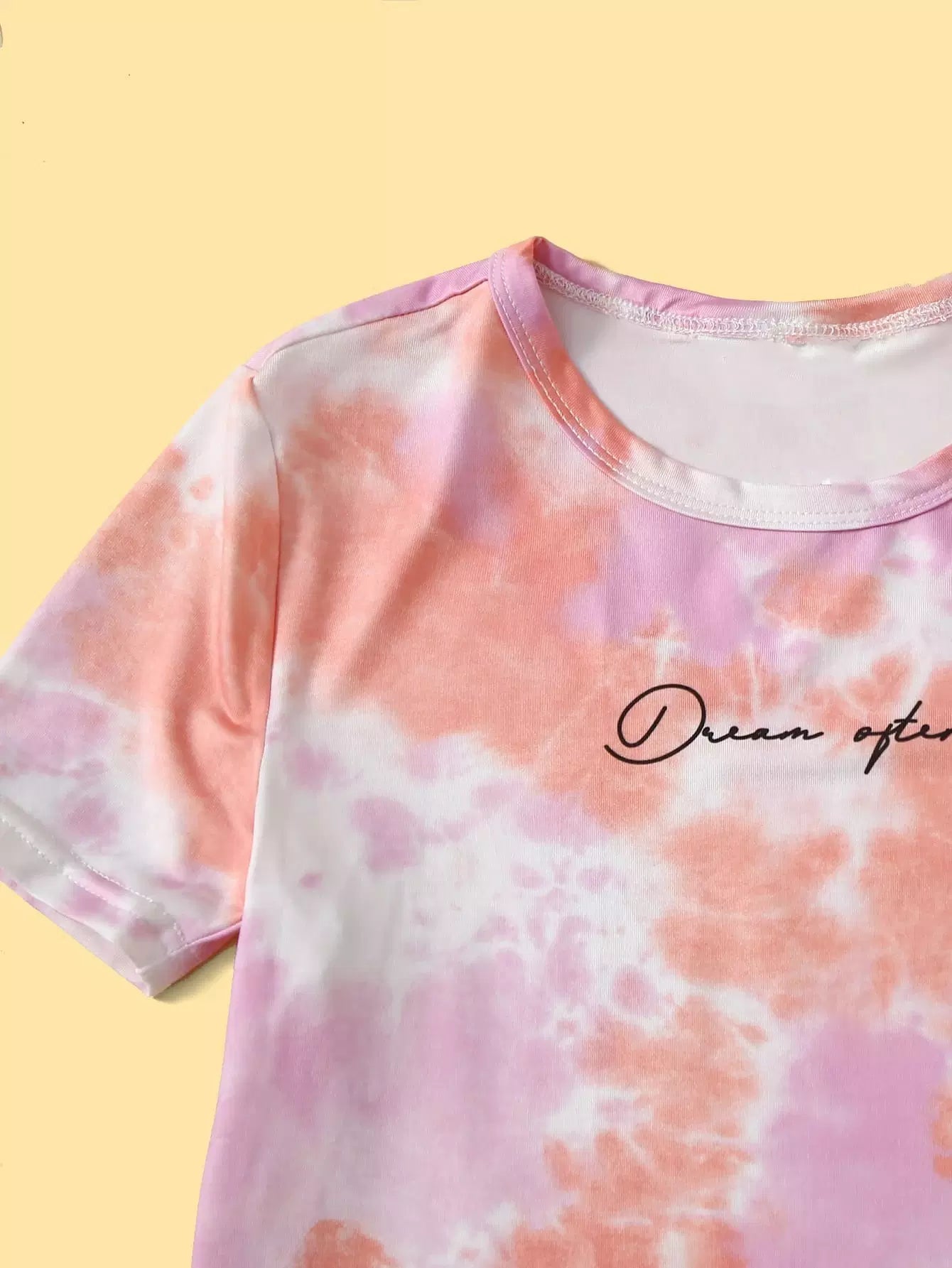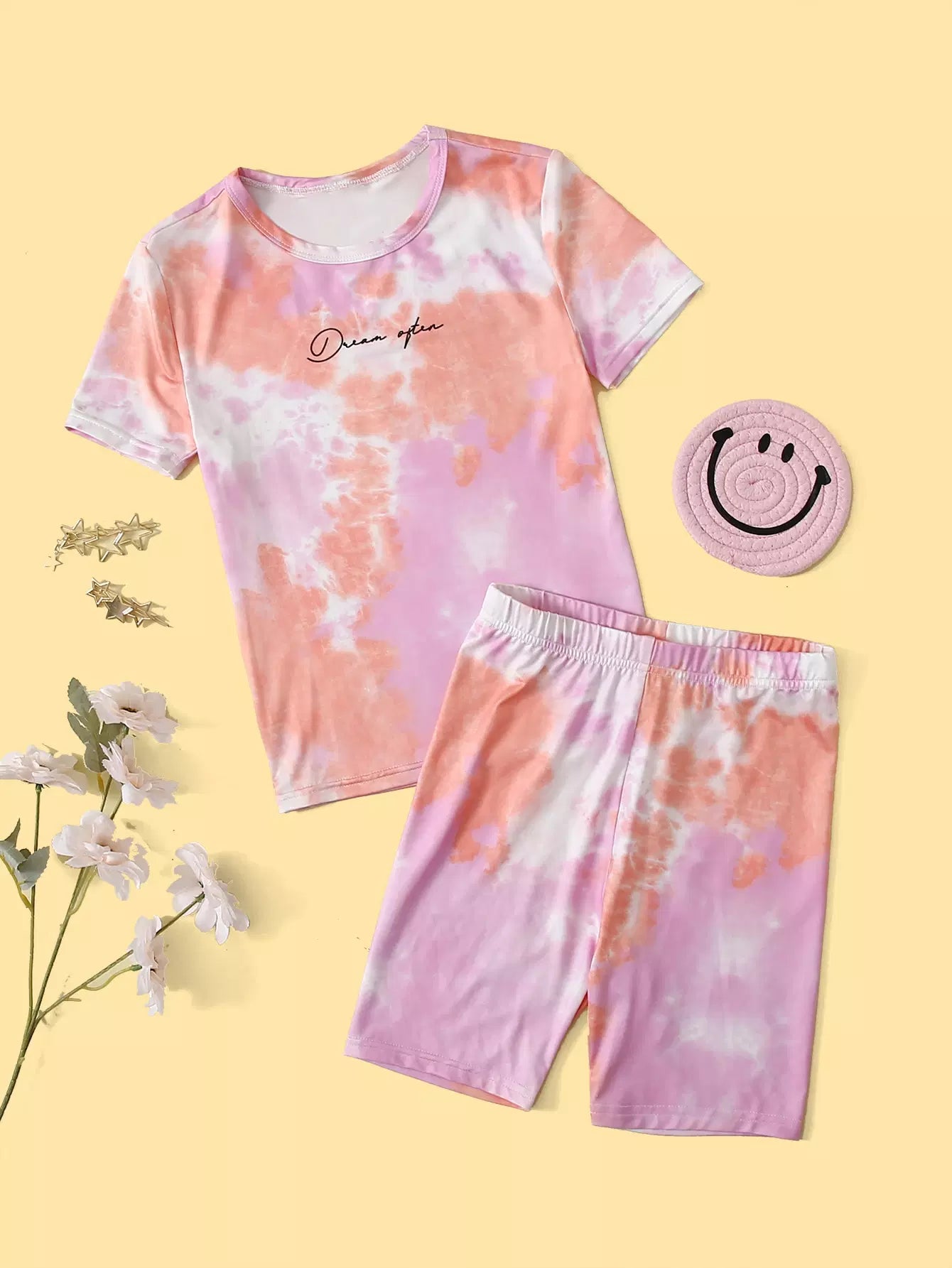 طقم بيجامة للبنات من توب وشورت بايكر مزين بحروف جرافيكية