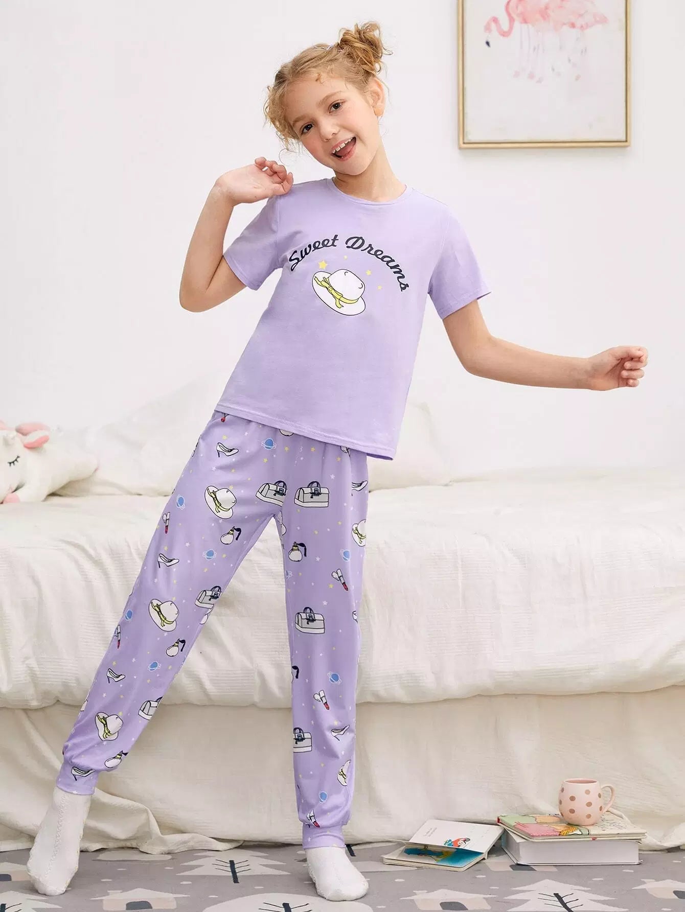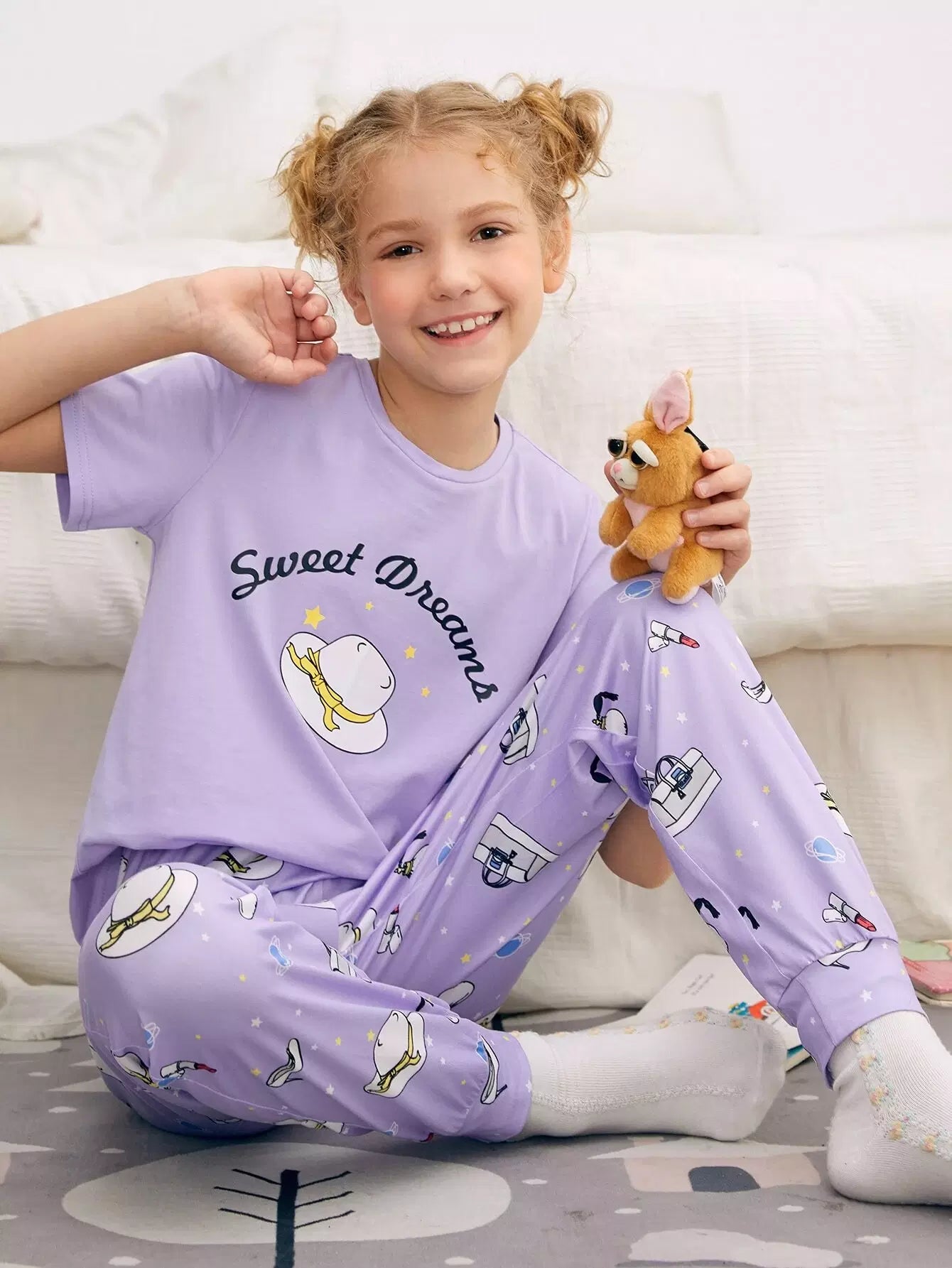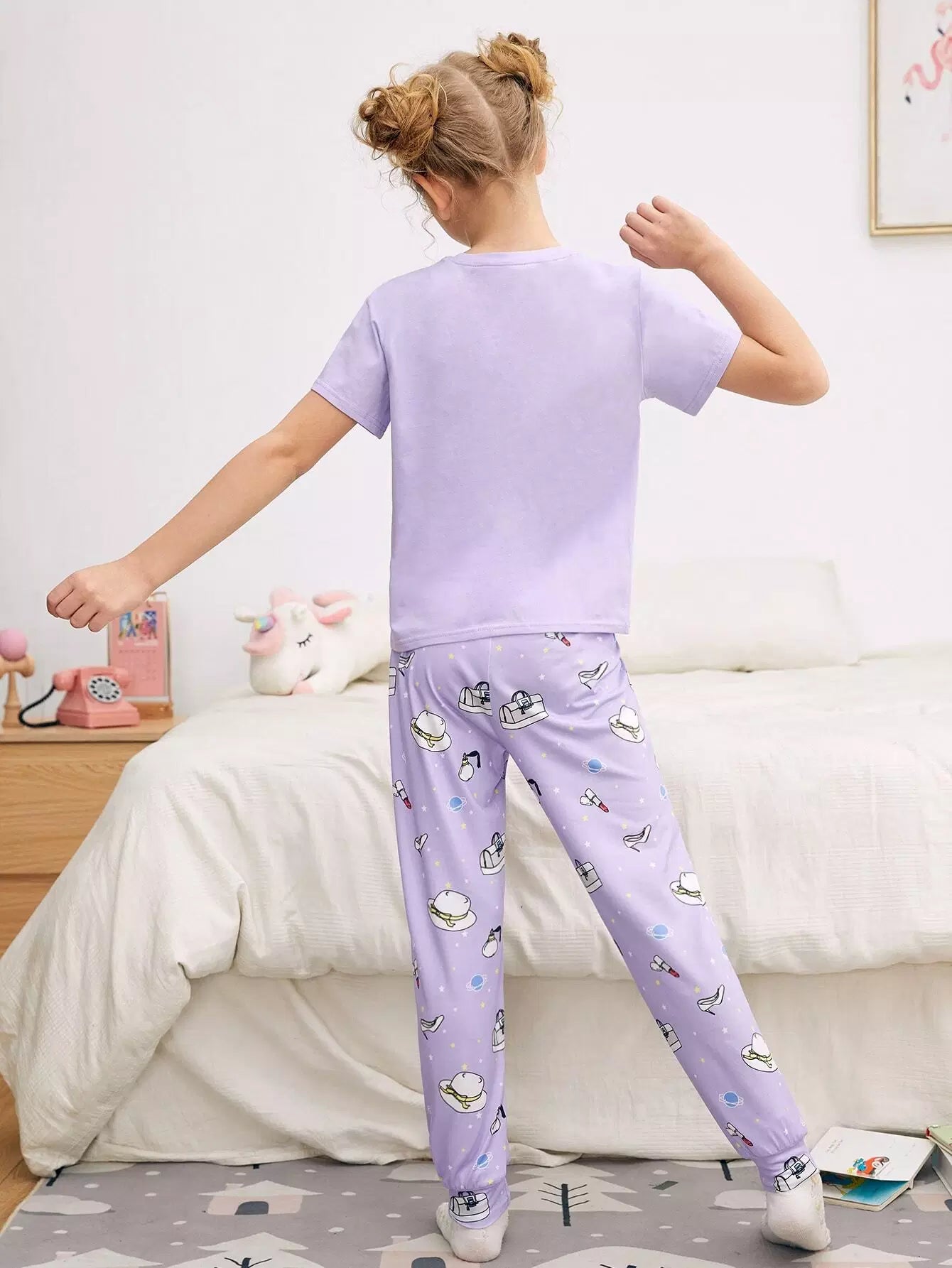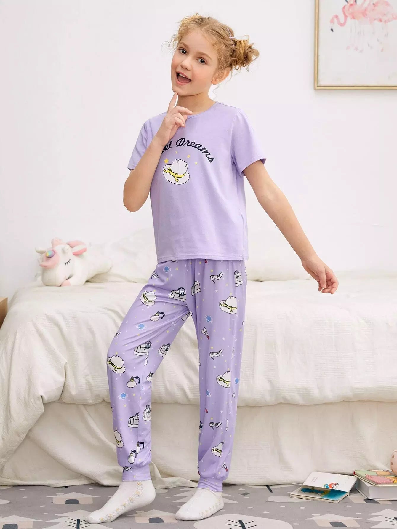 طقم بيجامة للبنات من توب وبنطلون برسومات الحروف