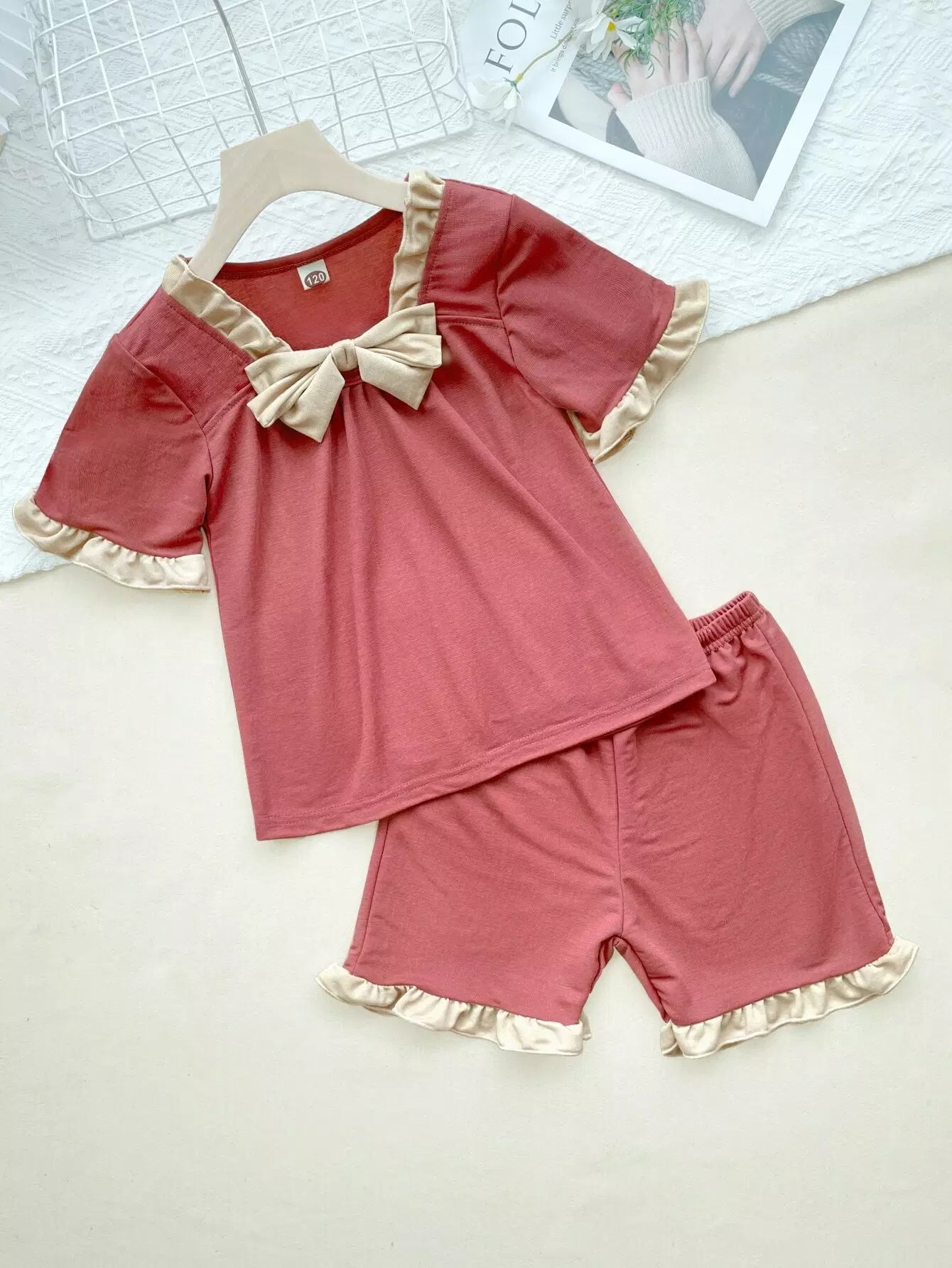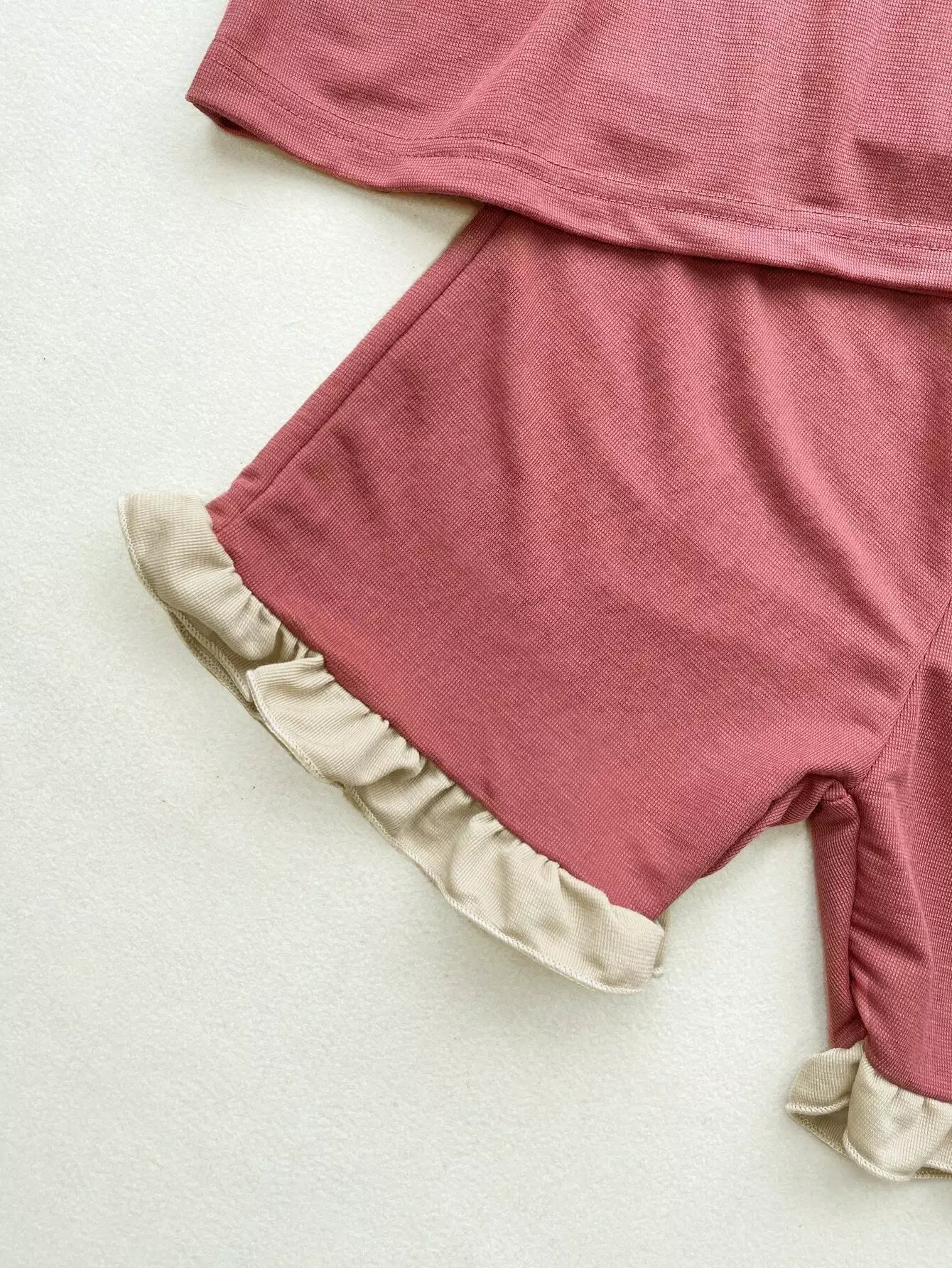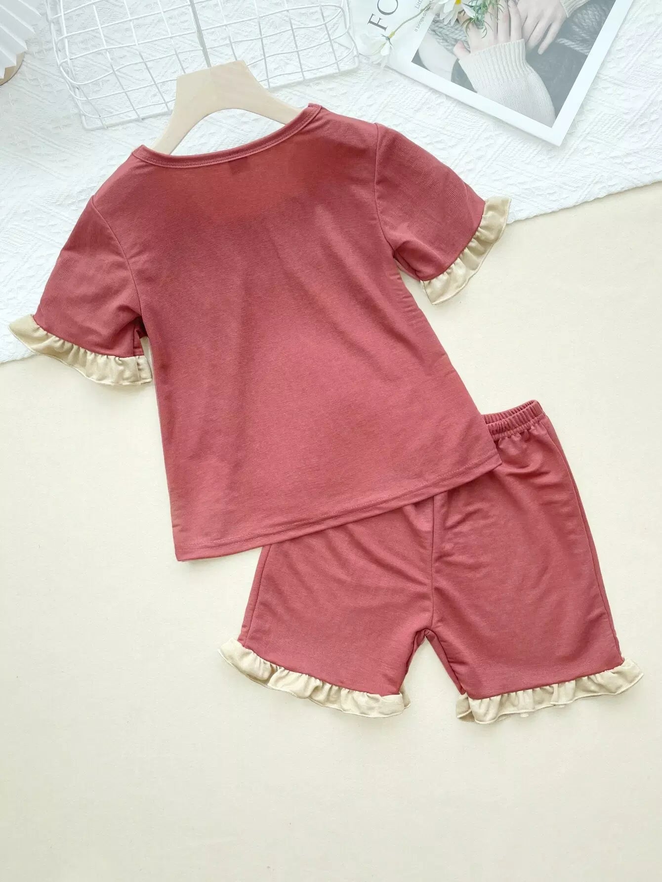 طقم تي شيرت وشورت بيجامة بنطلون بنطلون بنطلون بنطلون قصير مكشكش من الأمام