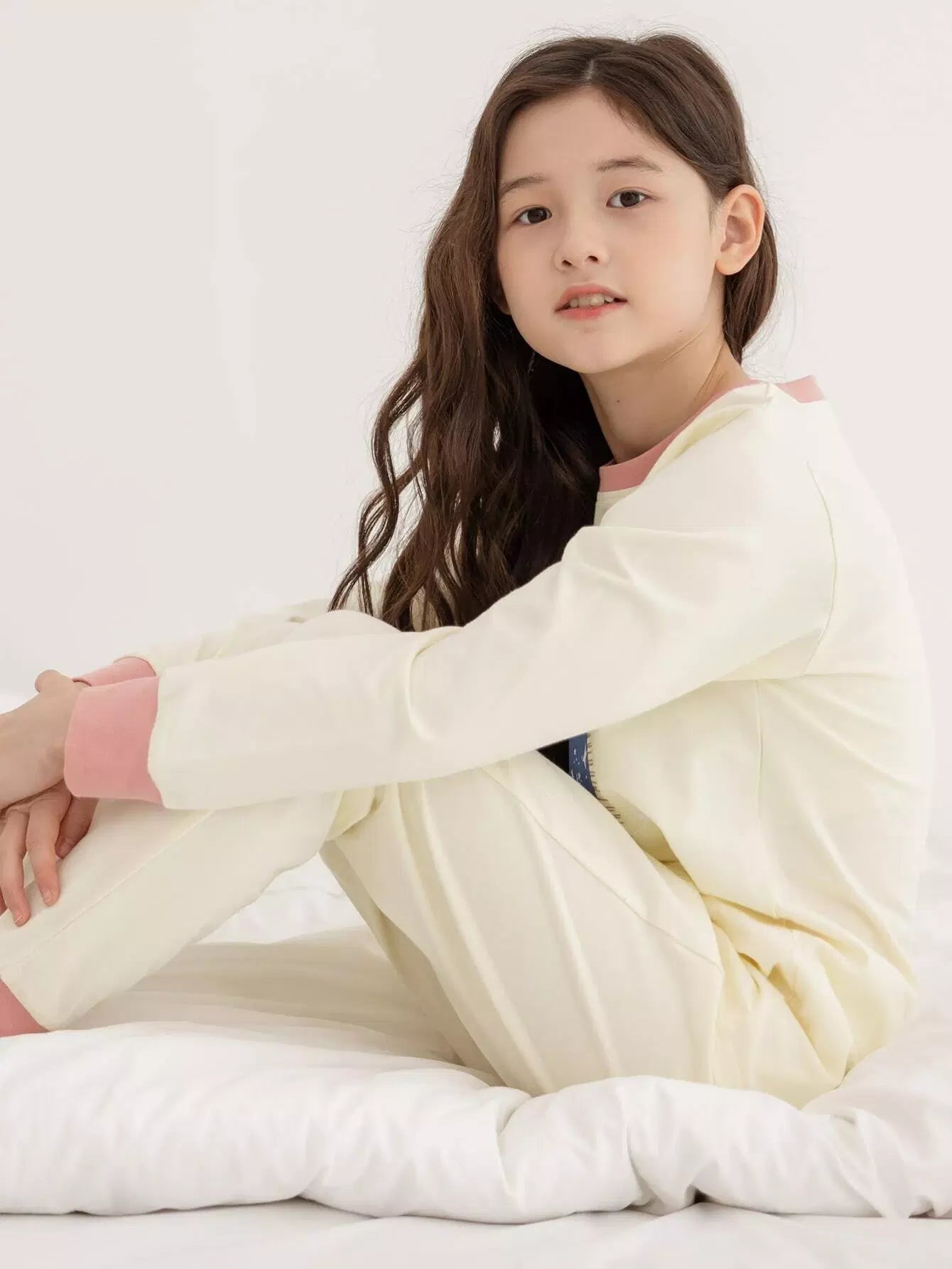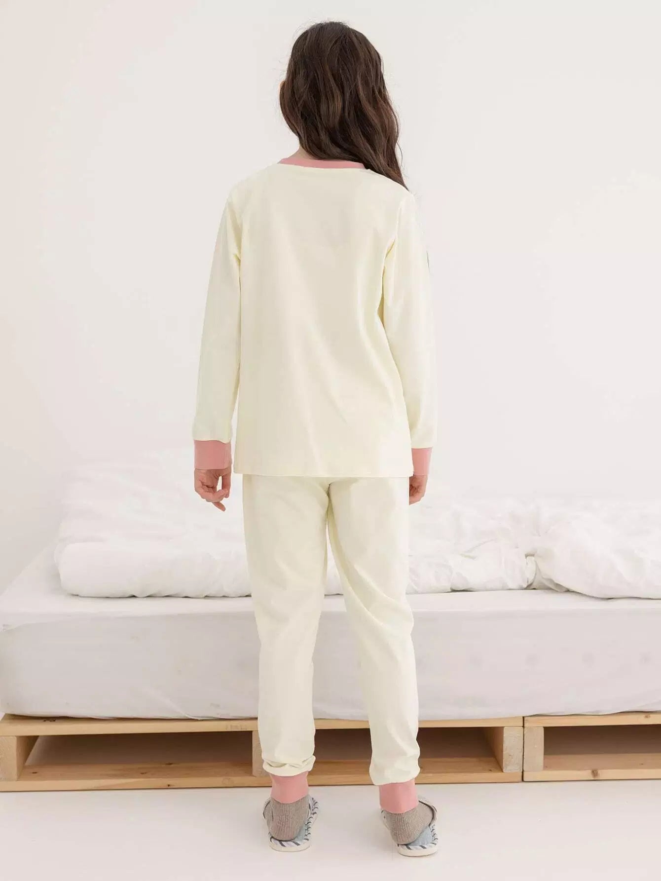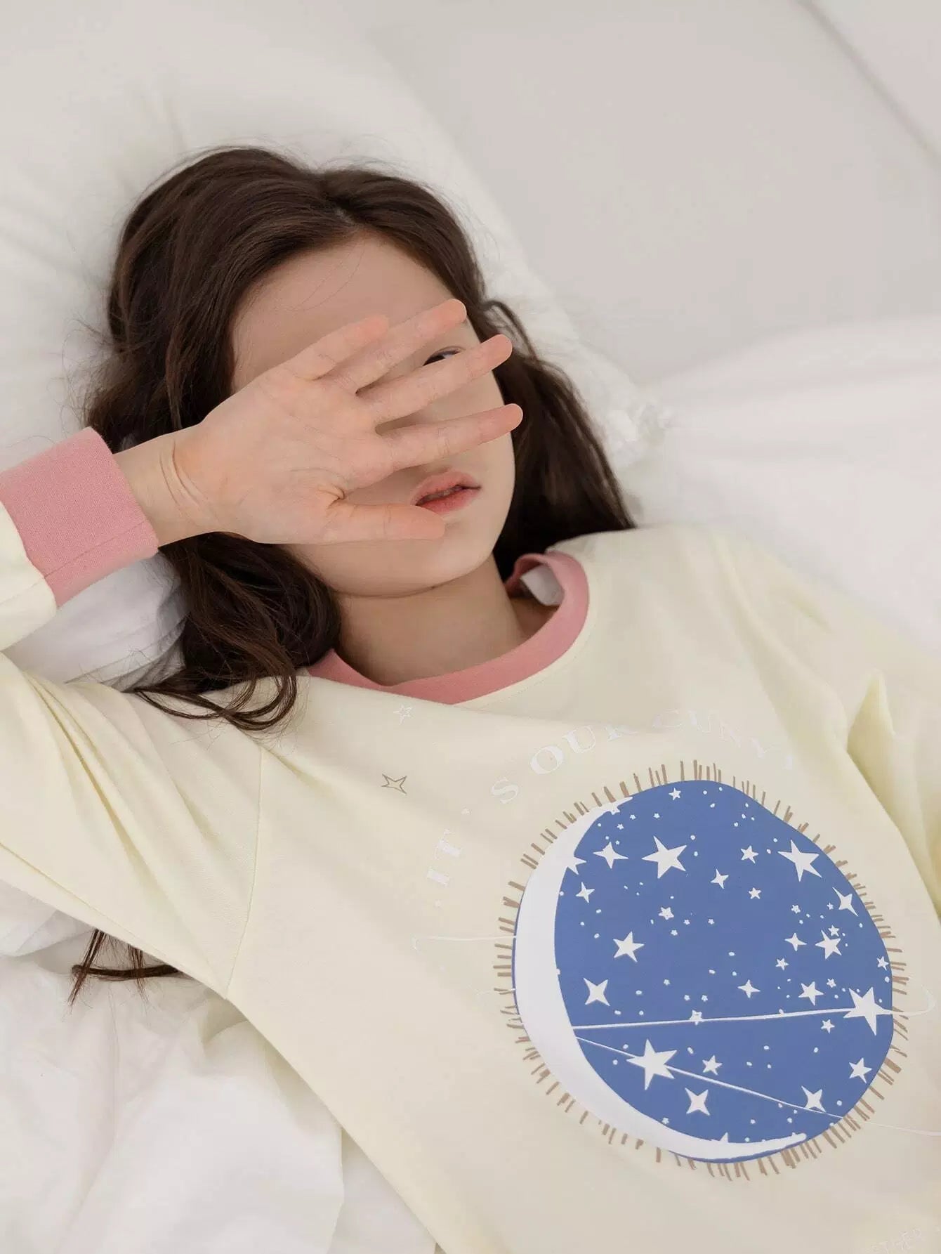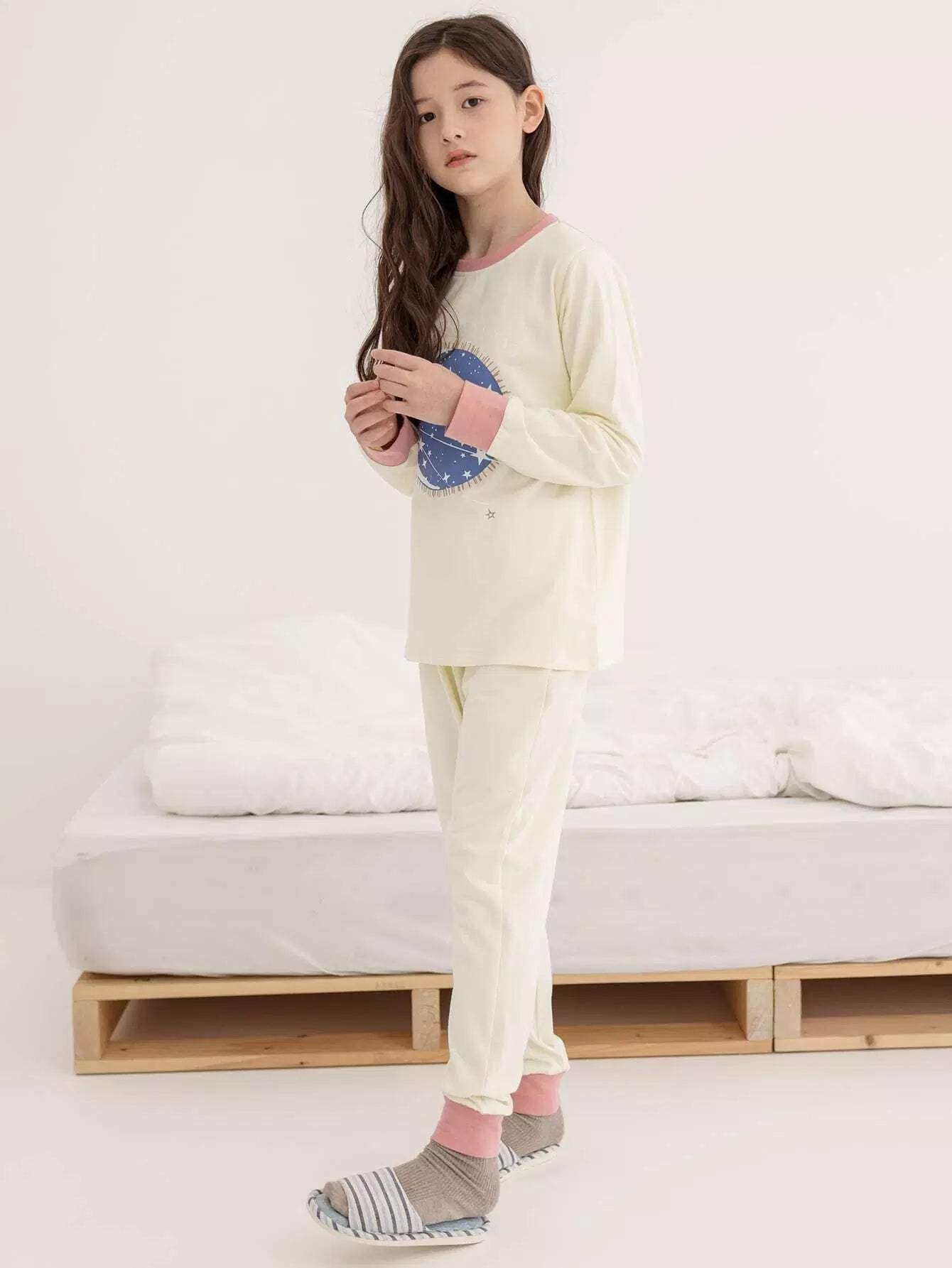 طقم بيجامة بنطلون وبلوزة وبنطال نوم بحواف بنقوش ورسومات على شكل نجمة وحروف للبنات