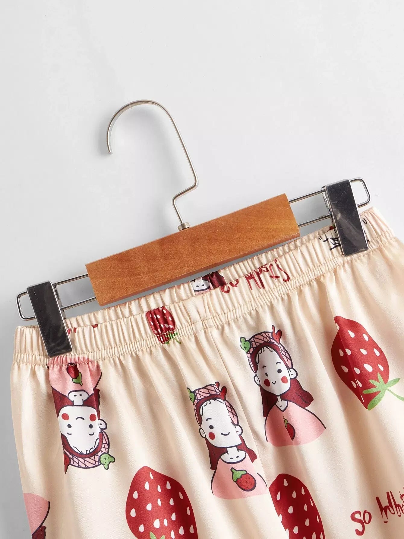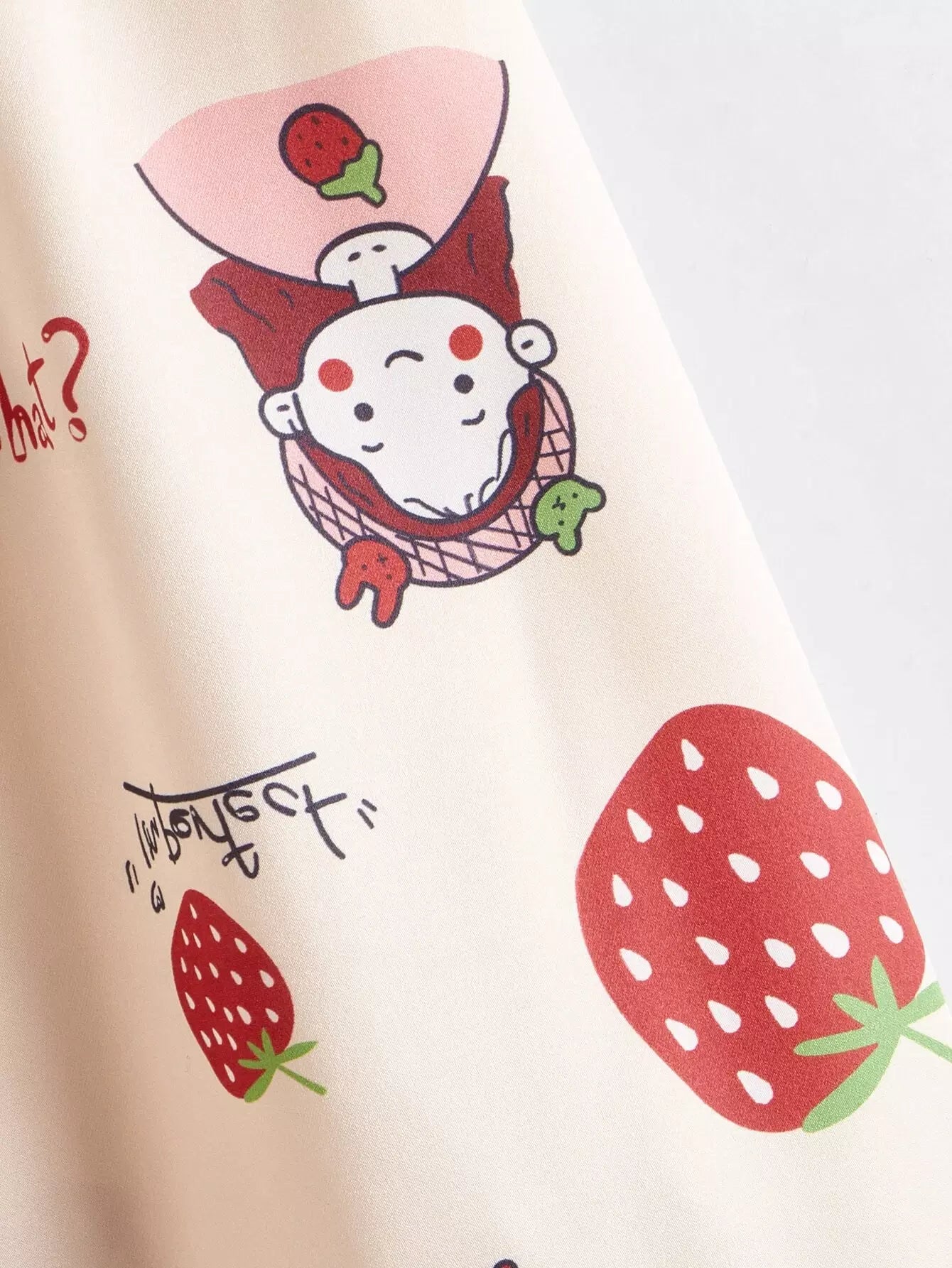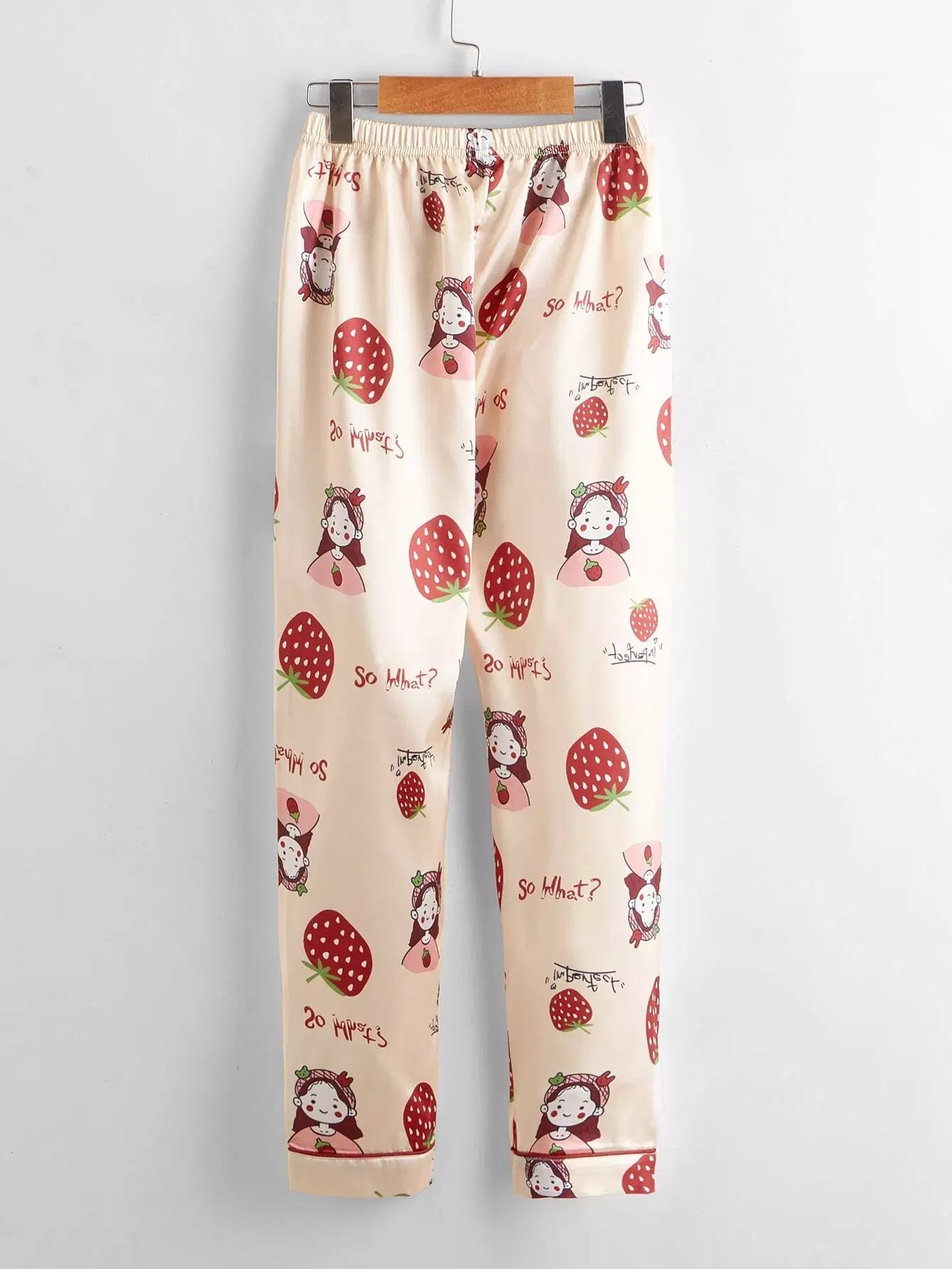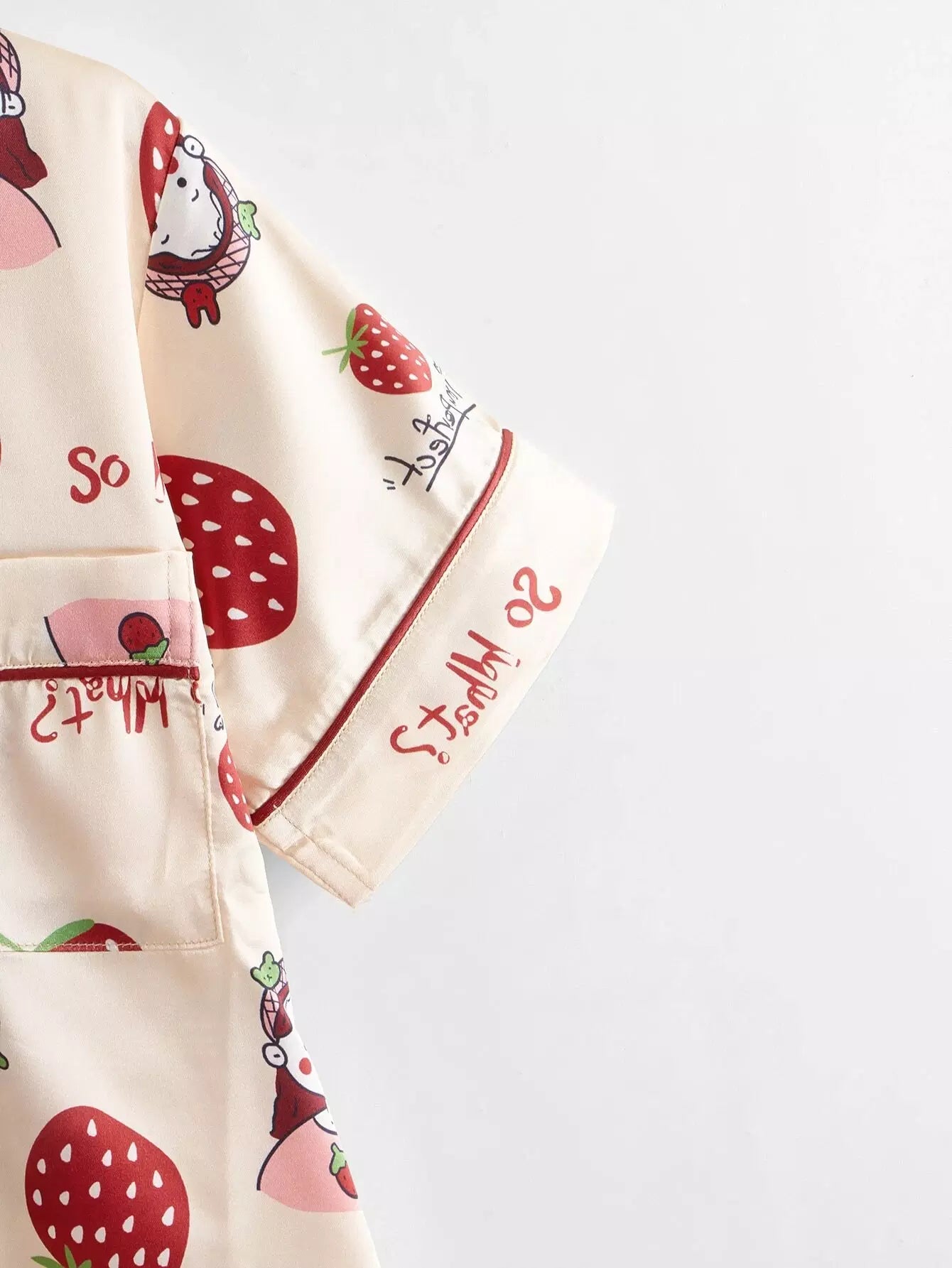 طقم بيجامة ساتان مطبوع عليه فراولة للبنات وطفلة كرتونية