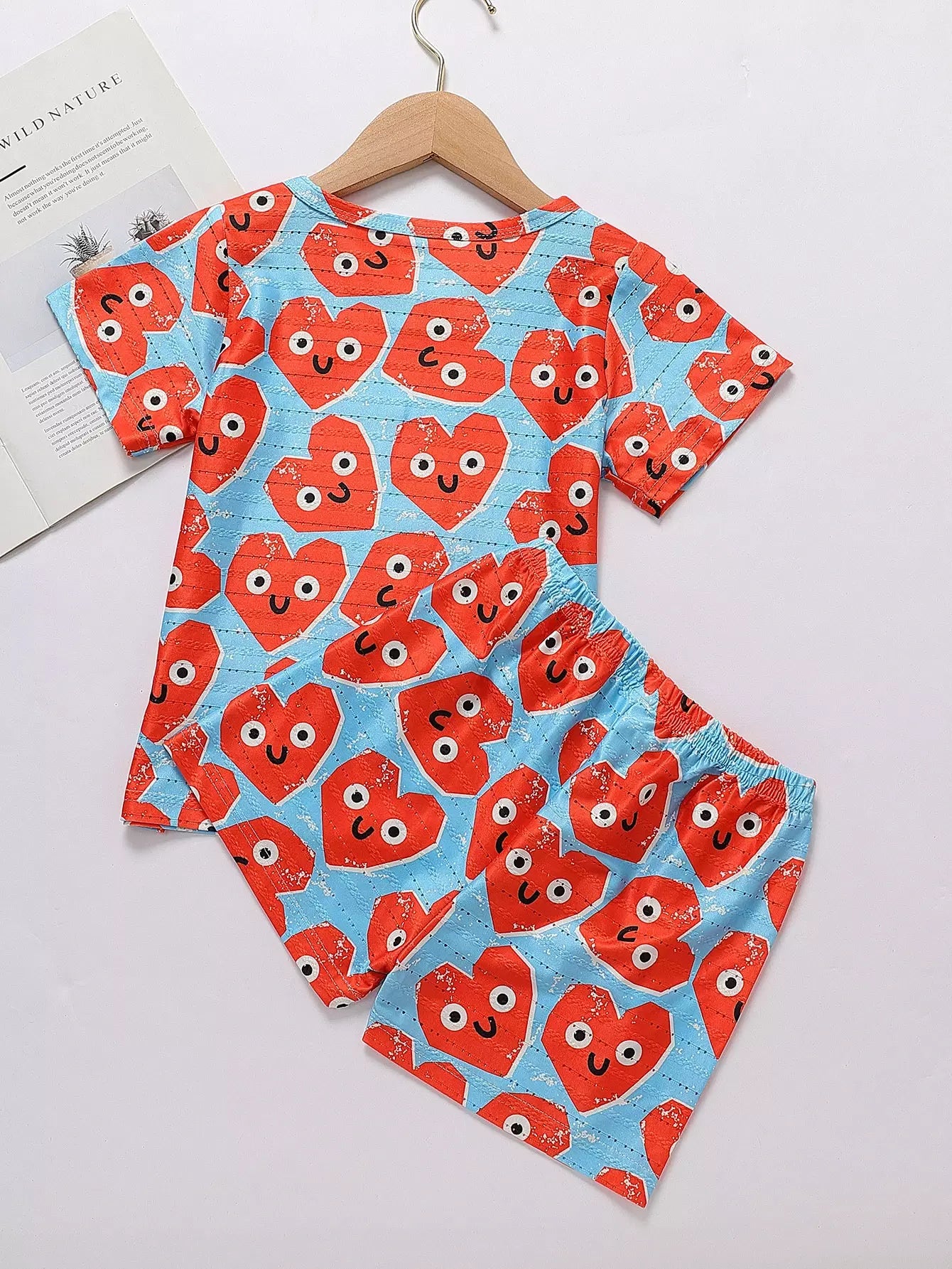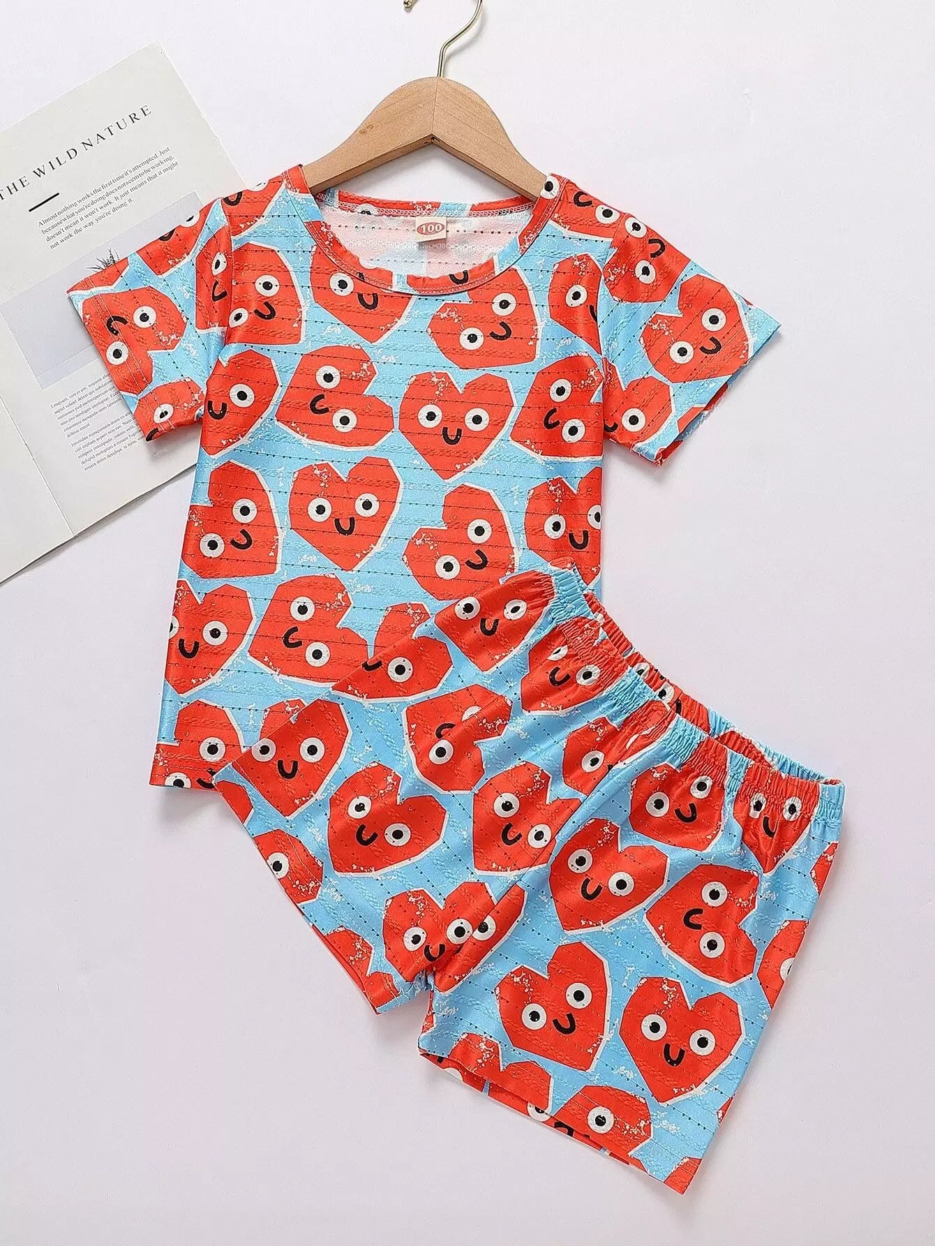 طقم بيجامة بقلب على شكل قلب للبنات الصغار