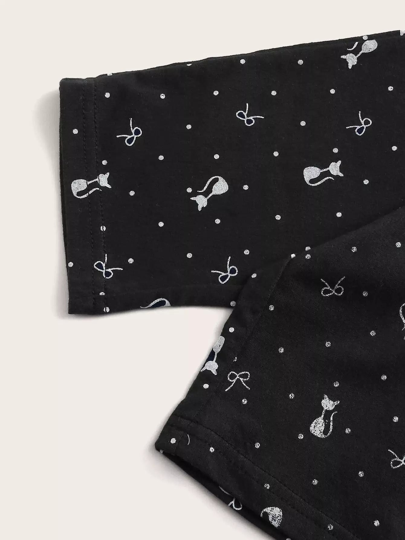 طقم بيجامات بناتي صغيرات بطبعة قطة كرتونية