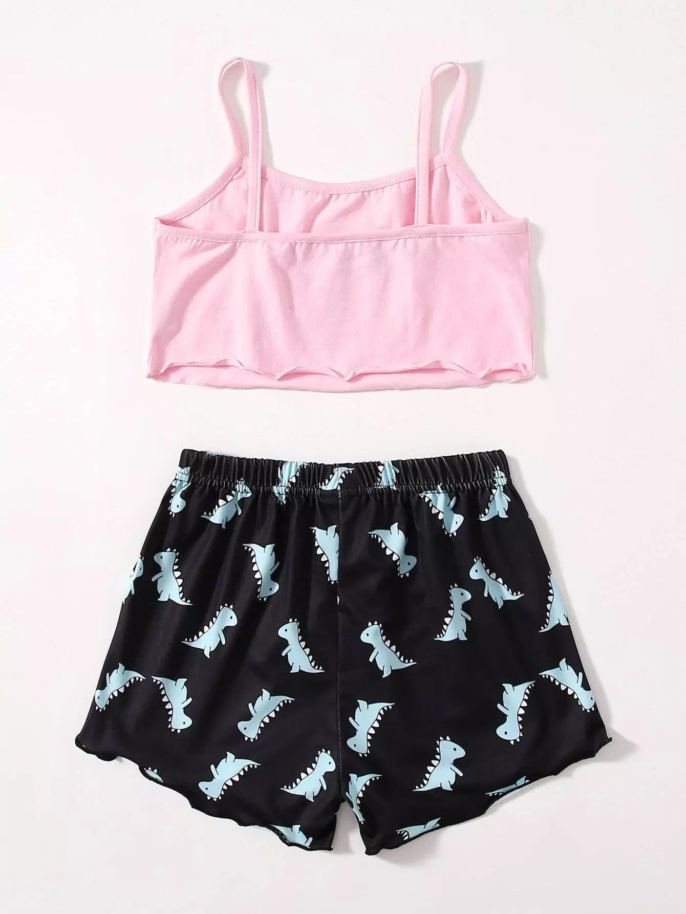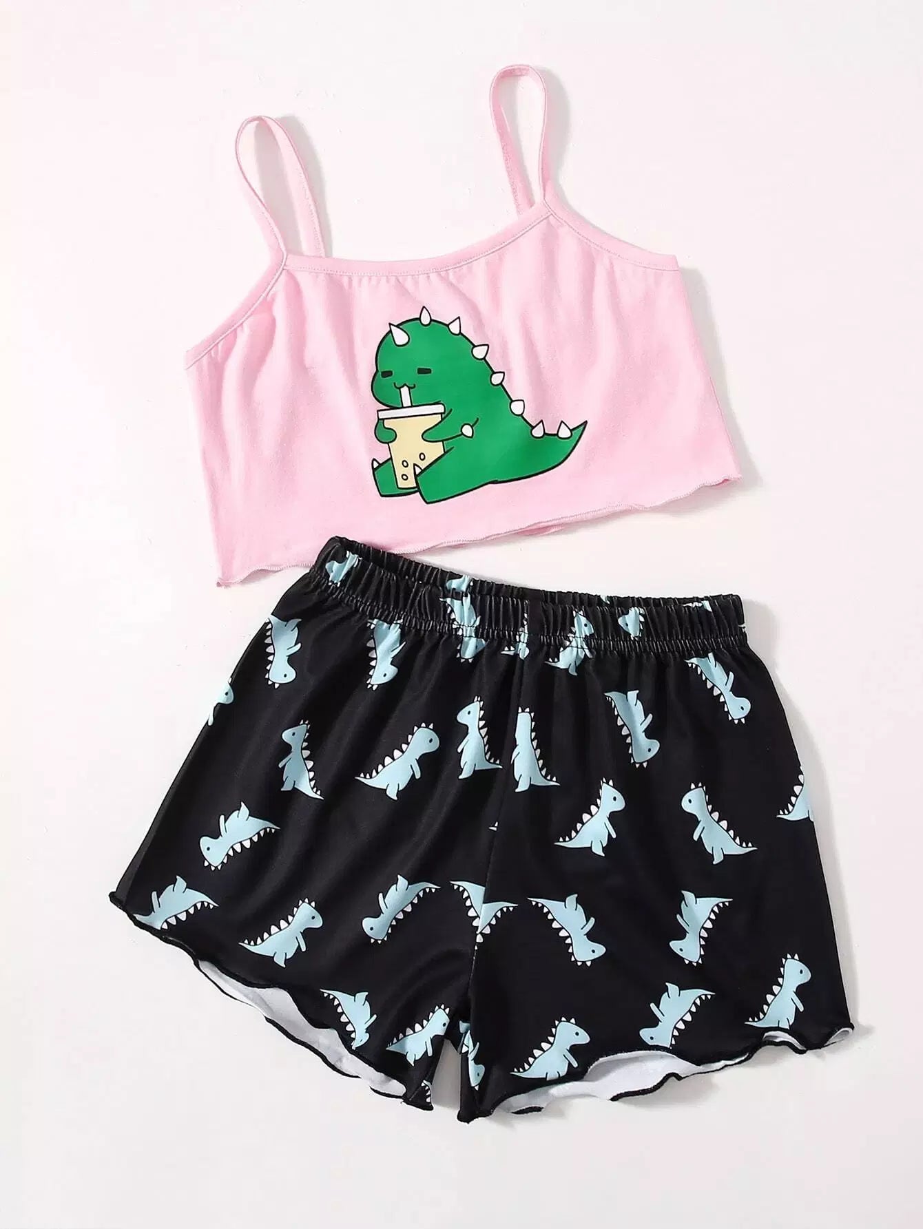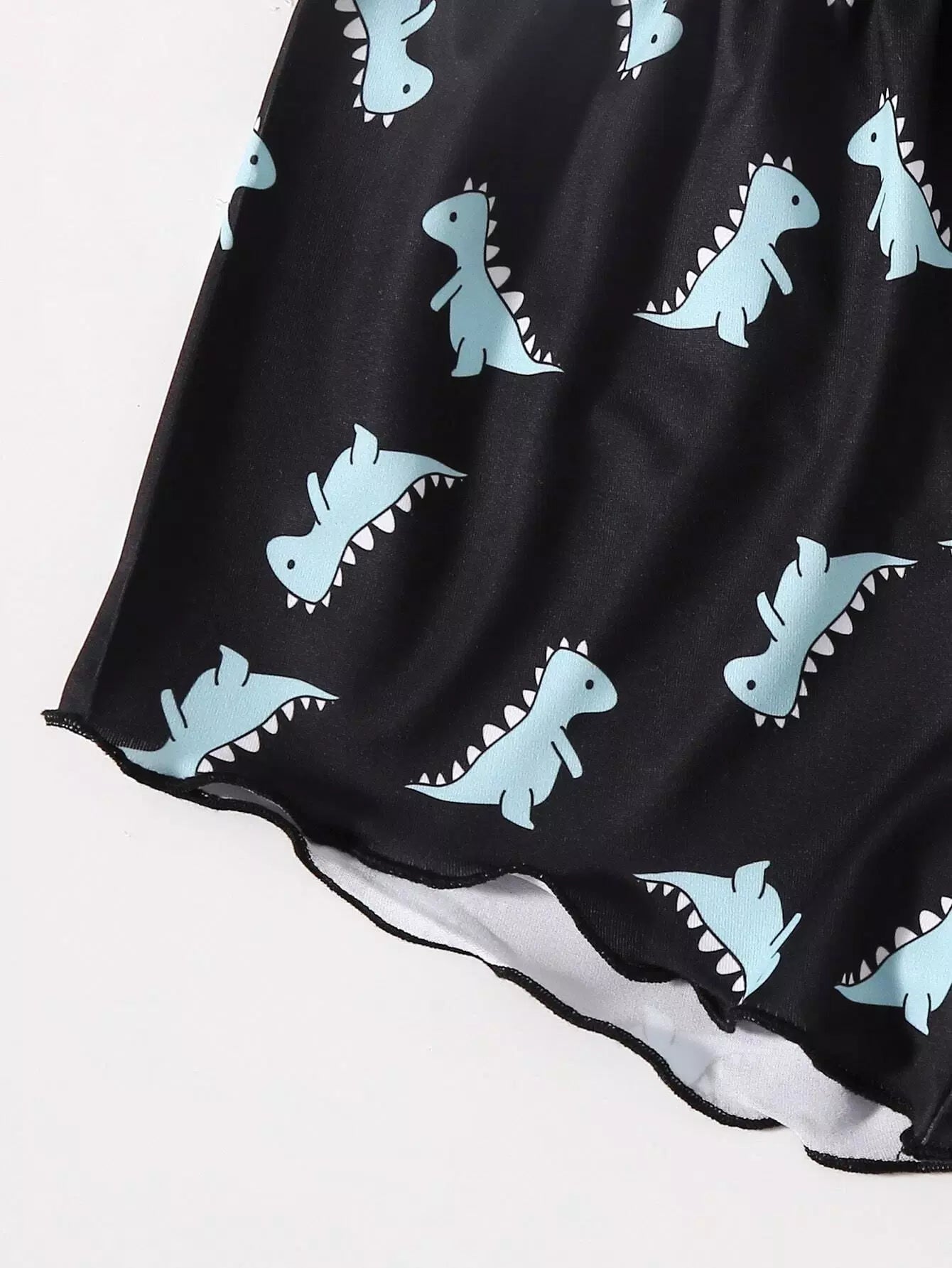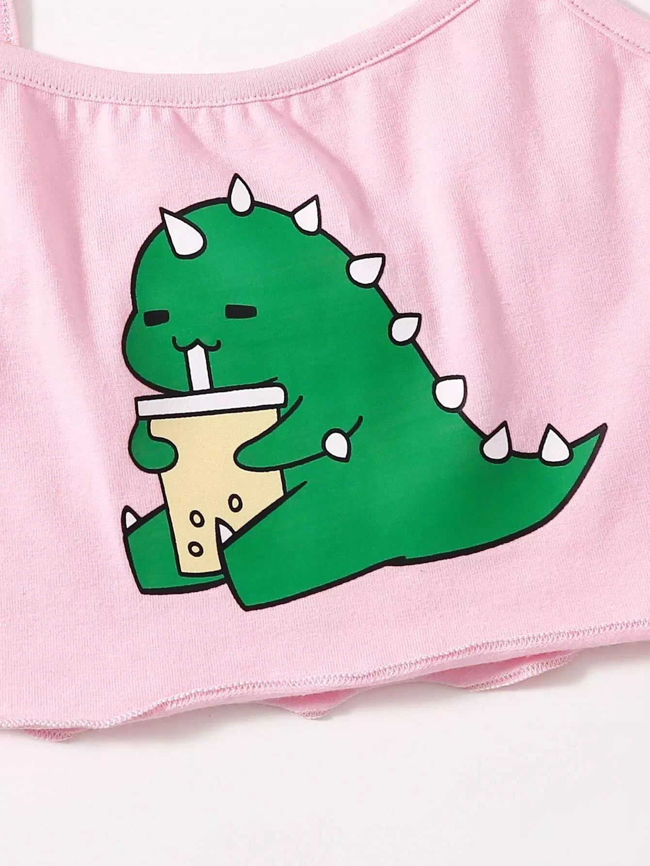 طقم بيجامات بطبعة ديناصور كرتوني للبنات الصغار