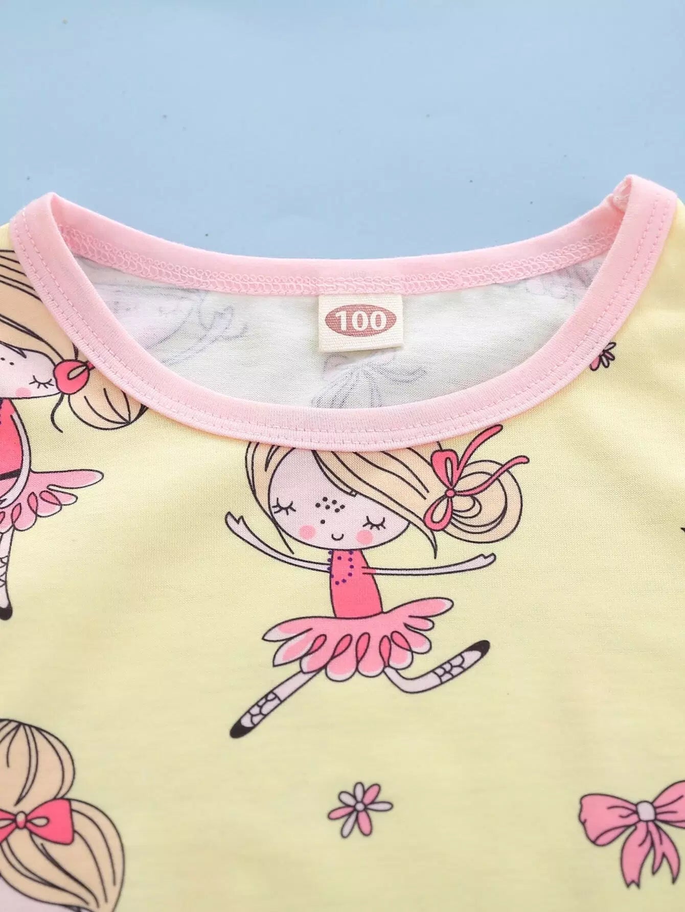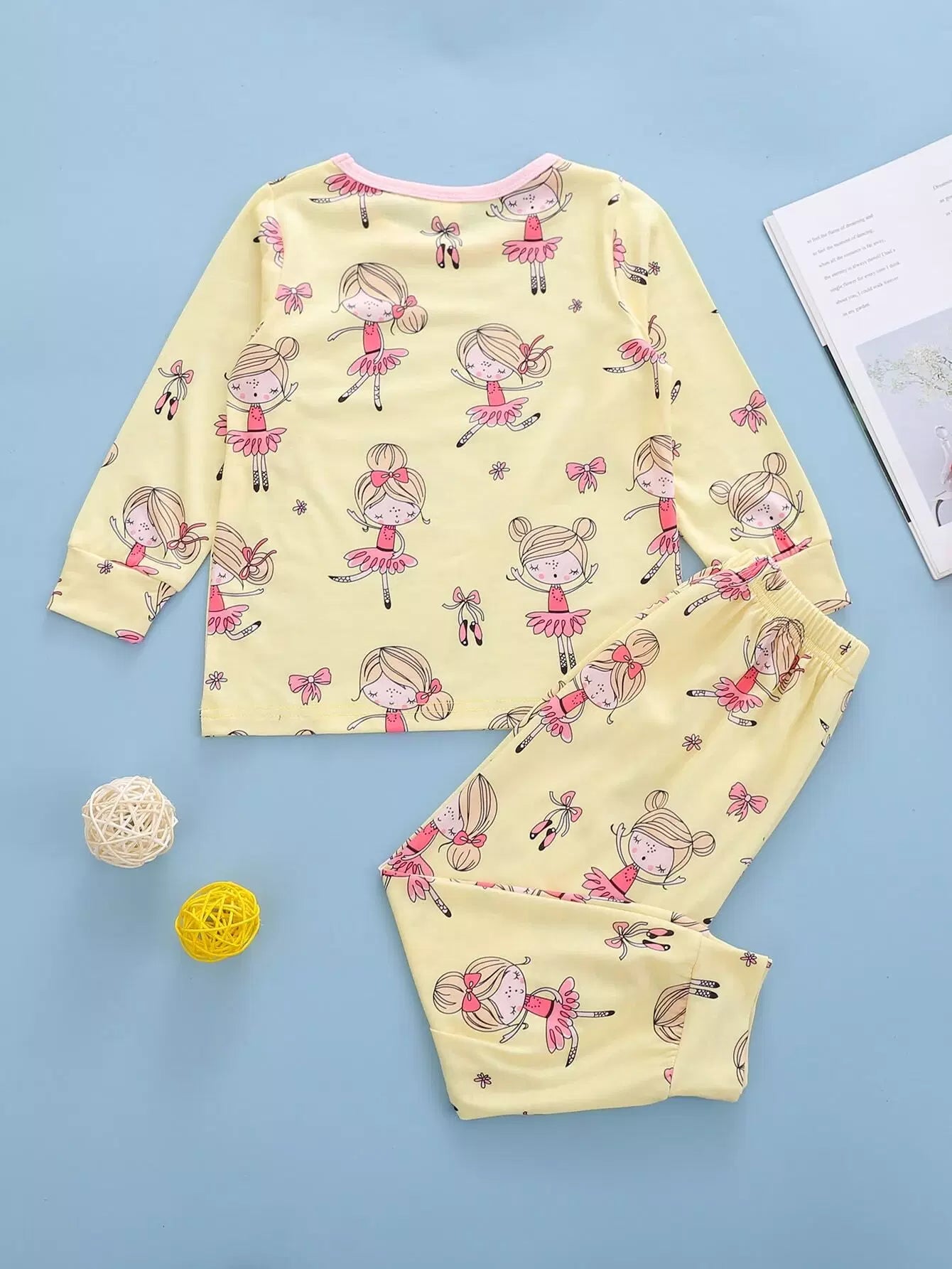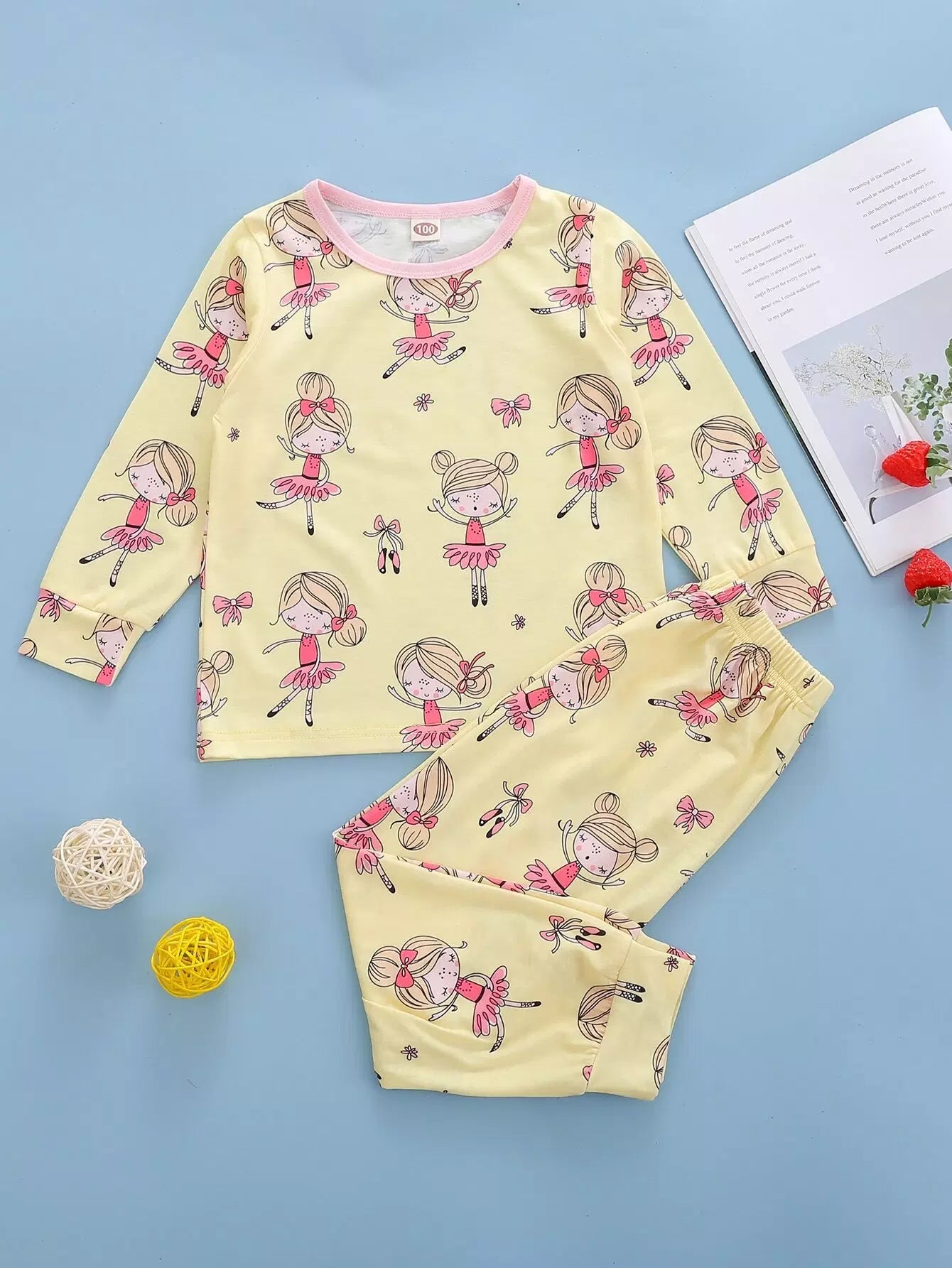 طقم بيجامات برسومات كرتونية للبنات الصغار