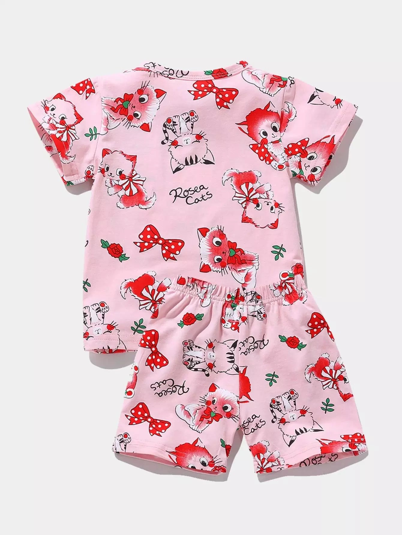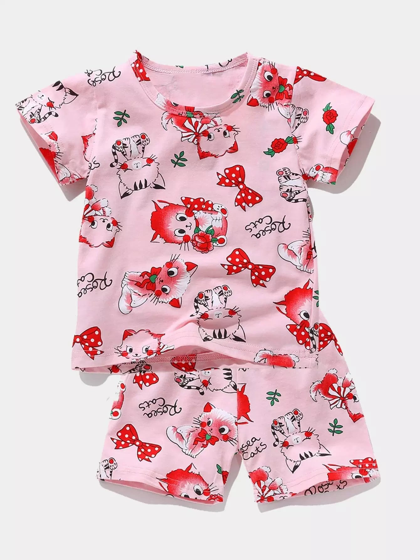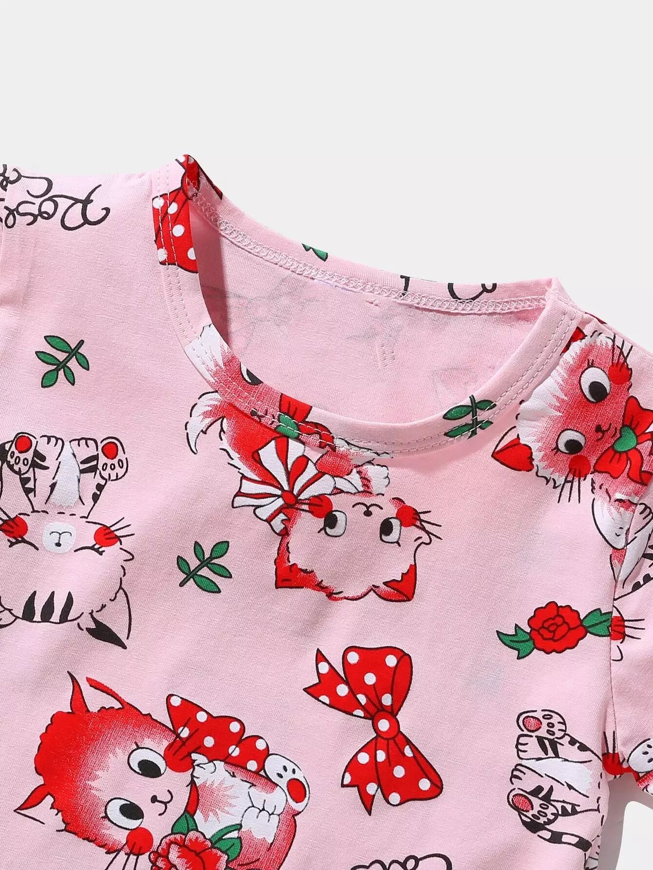 طقم بيجامة برسومات كرتونية ورسومات حروف للبنات الصغار