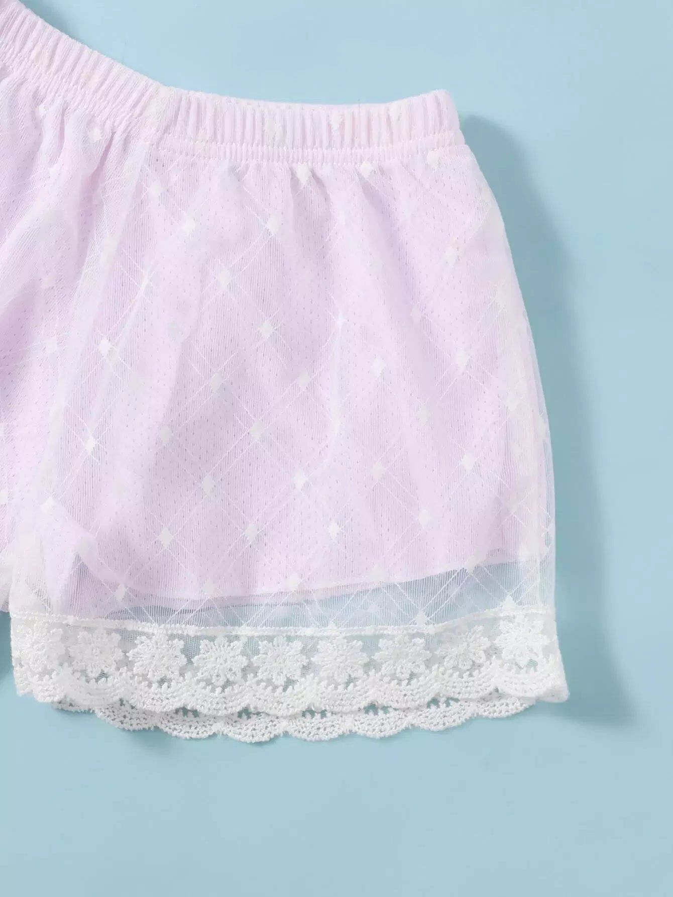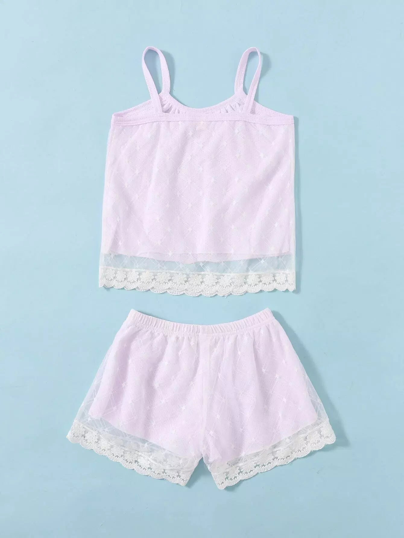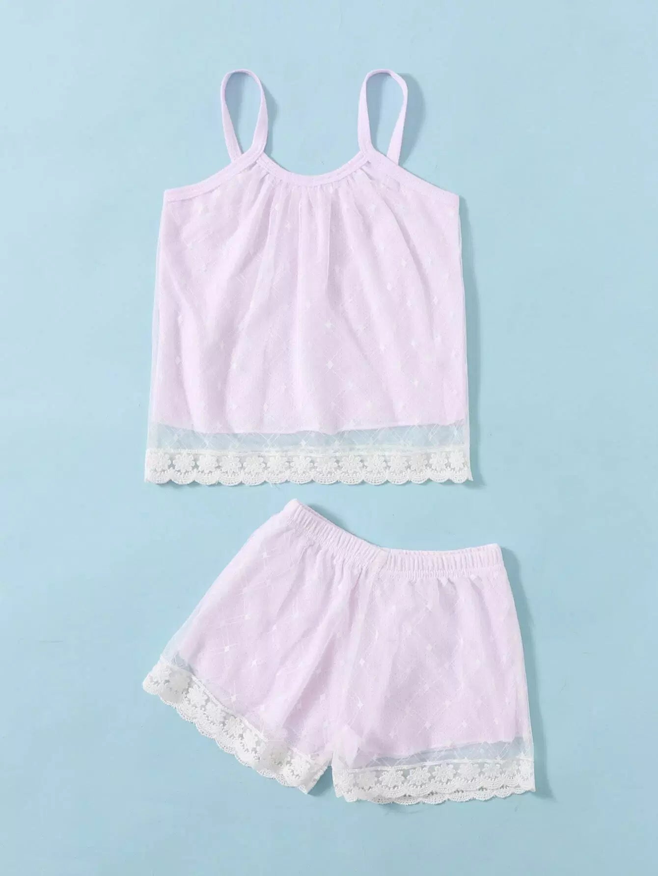 طقم بيجامة بيجامة دانتيل بلون مغاير للبنات الصغار