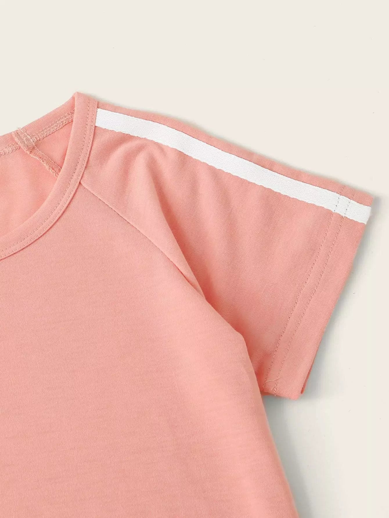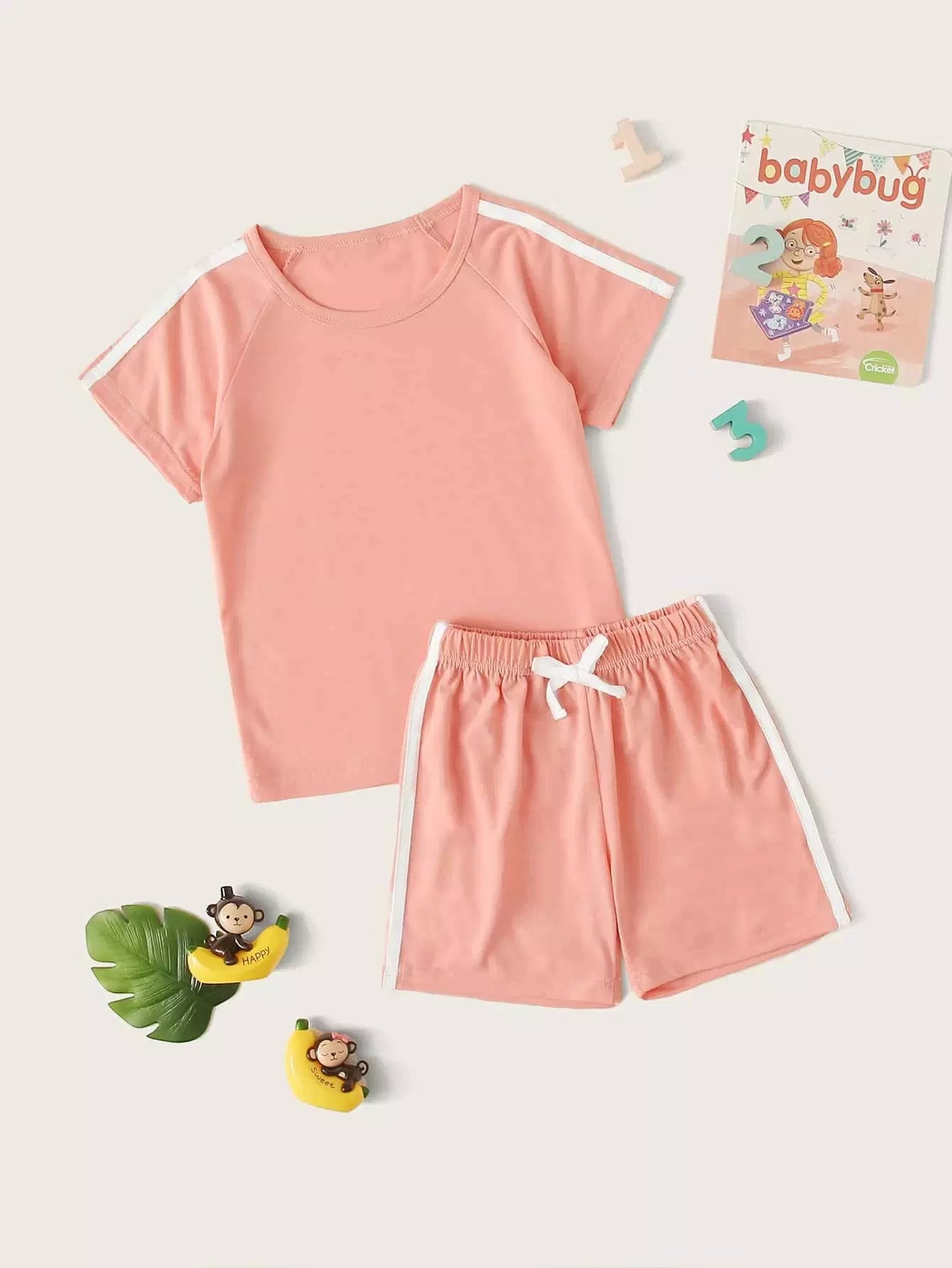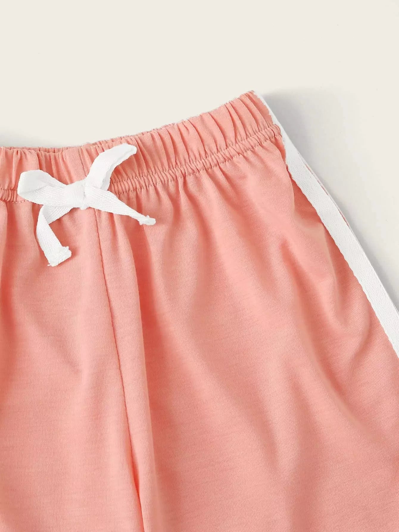 طقم بيجامات بنات صغيرات برباط خصر برباط بلون مغاير
