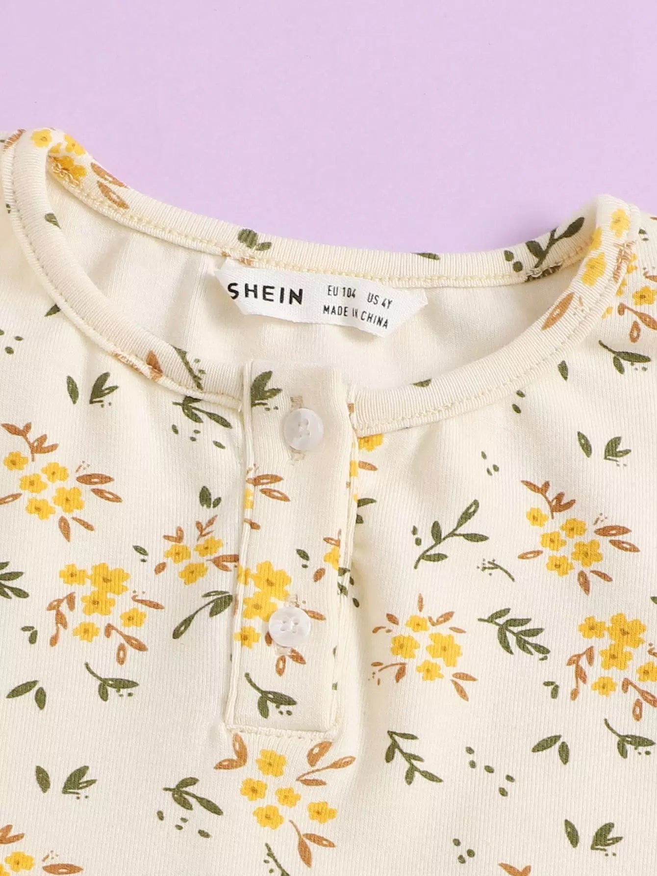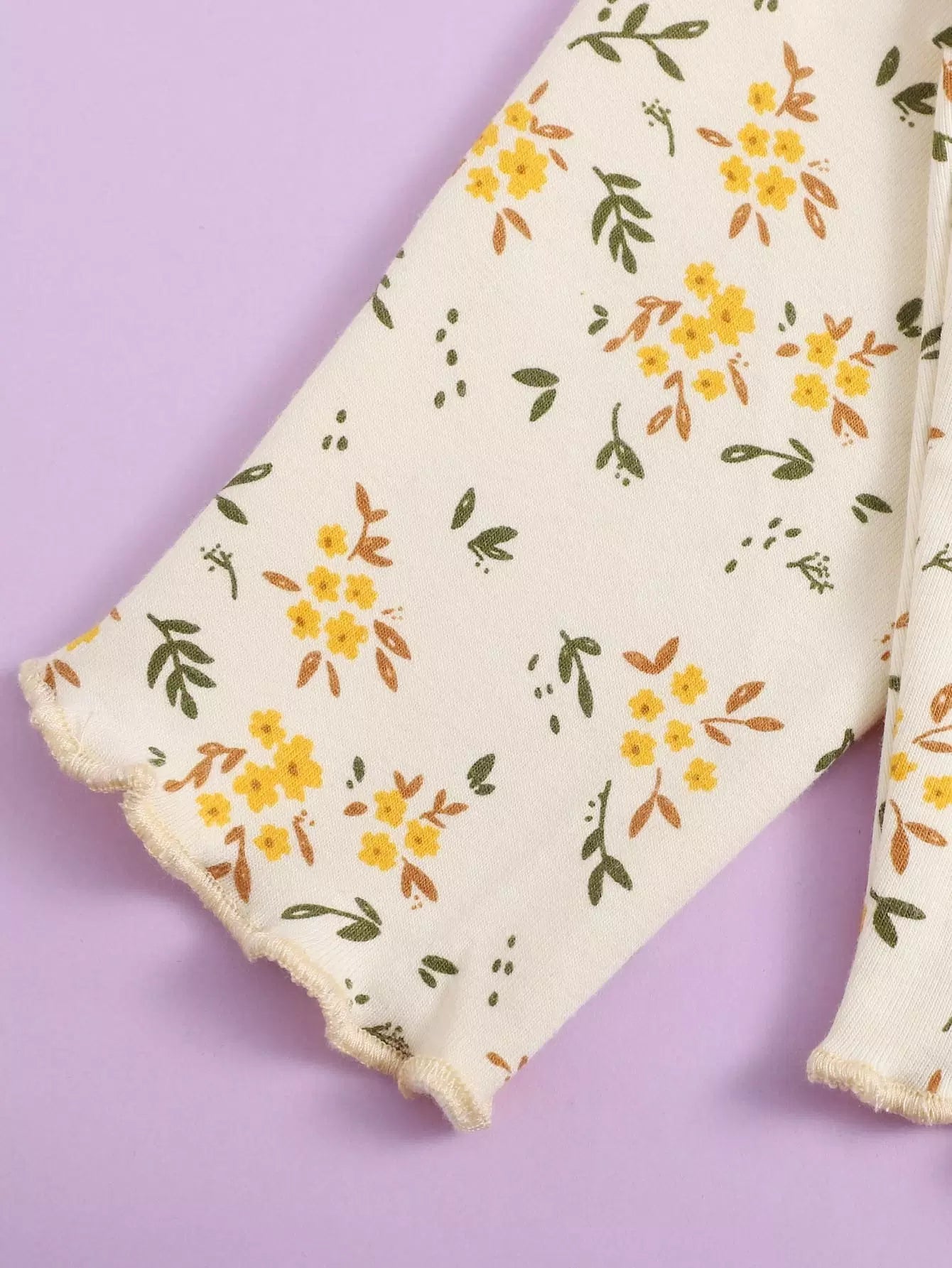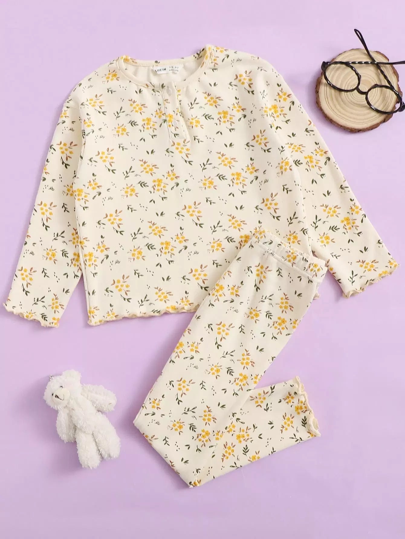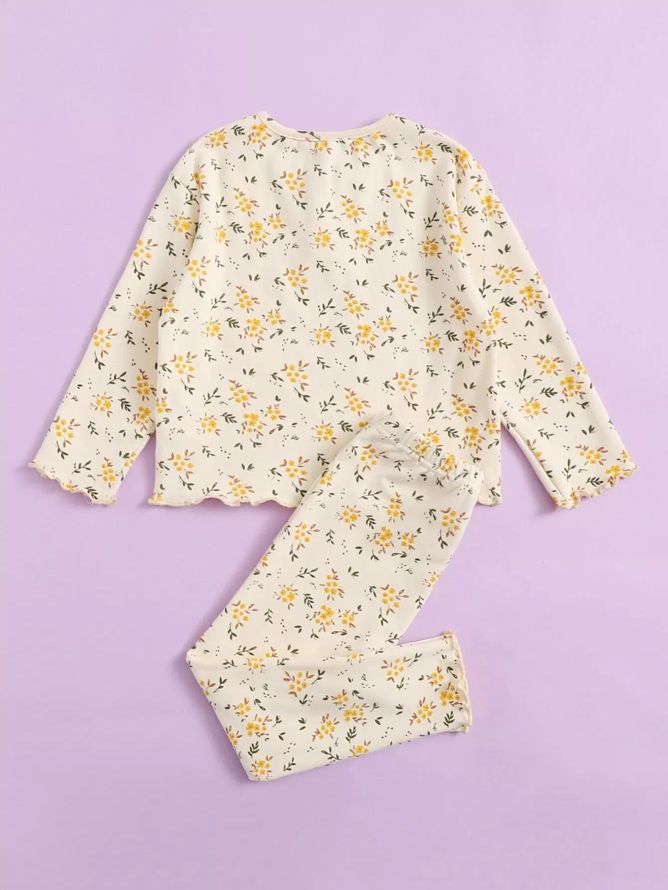 طقم بيجامة من تي شيرت وبنطلون ضيق مزين بنقشة زهور الخس للبنات الصغار