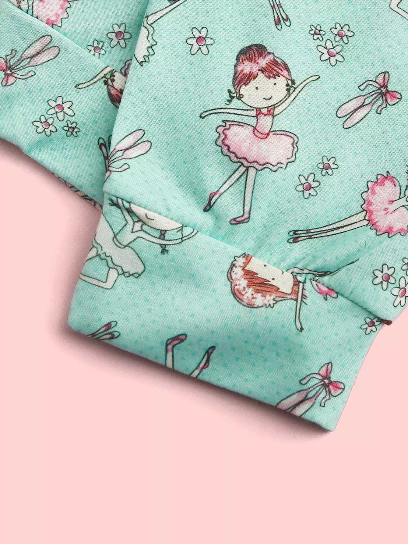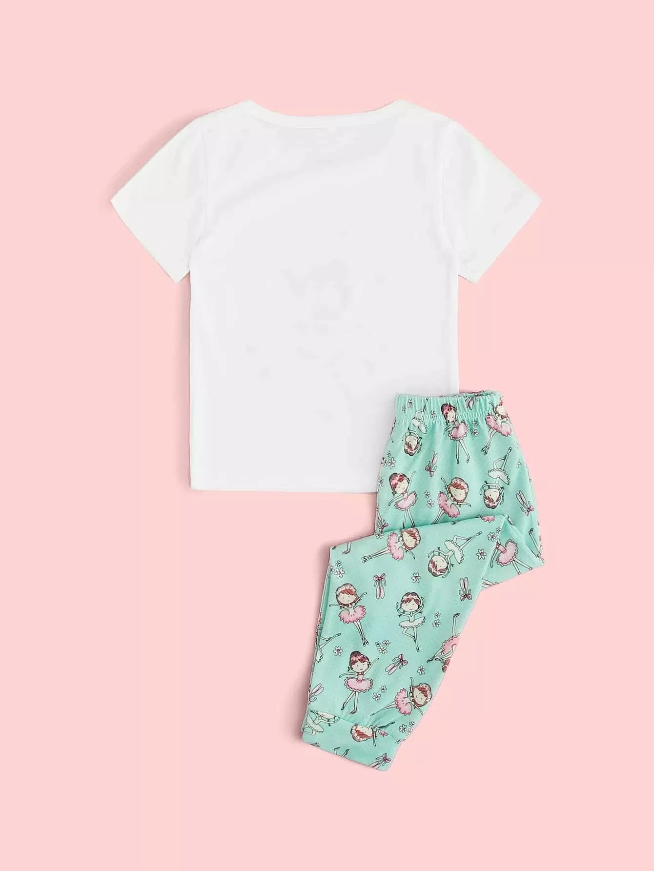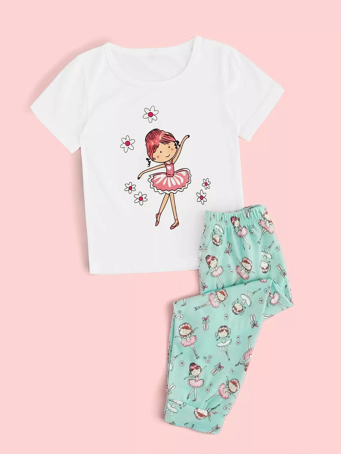 طقم بيجامة بناتي صغيرات مزين بالزهور والأشكال الجرافيكية