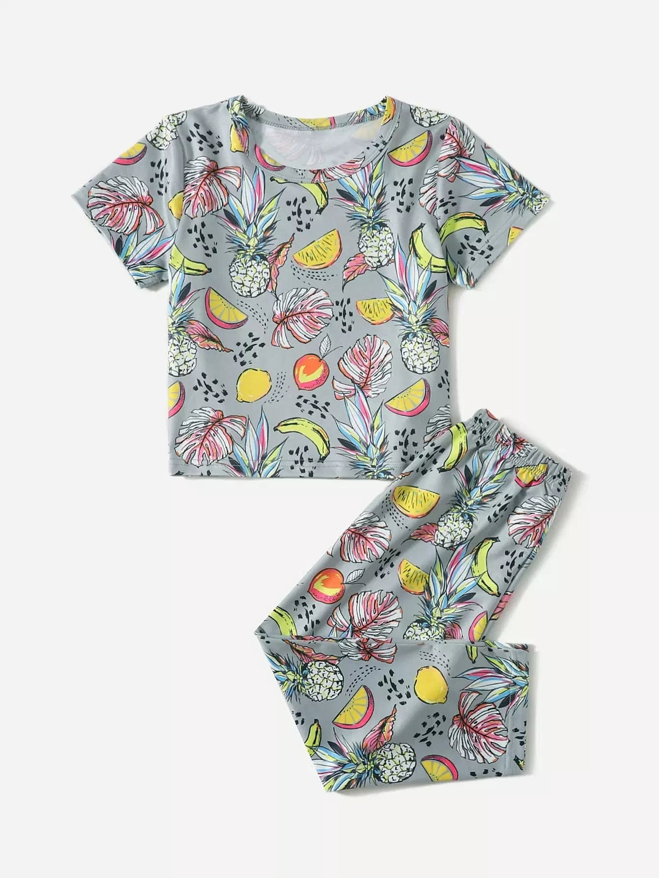 طقم بيجامات بطبعة فواكه للبنات الصغار