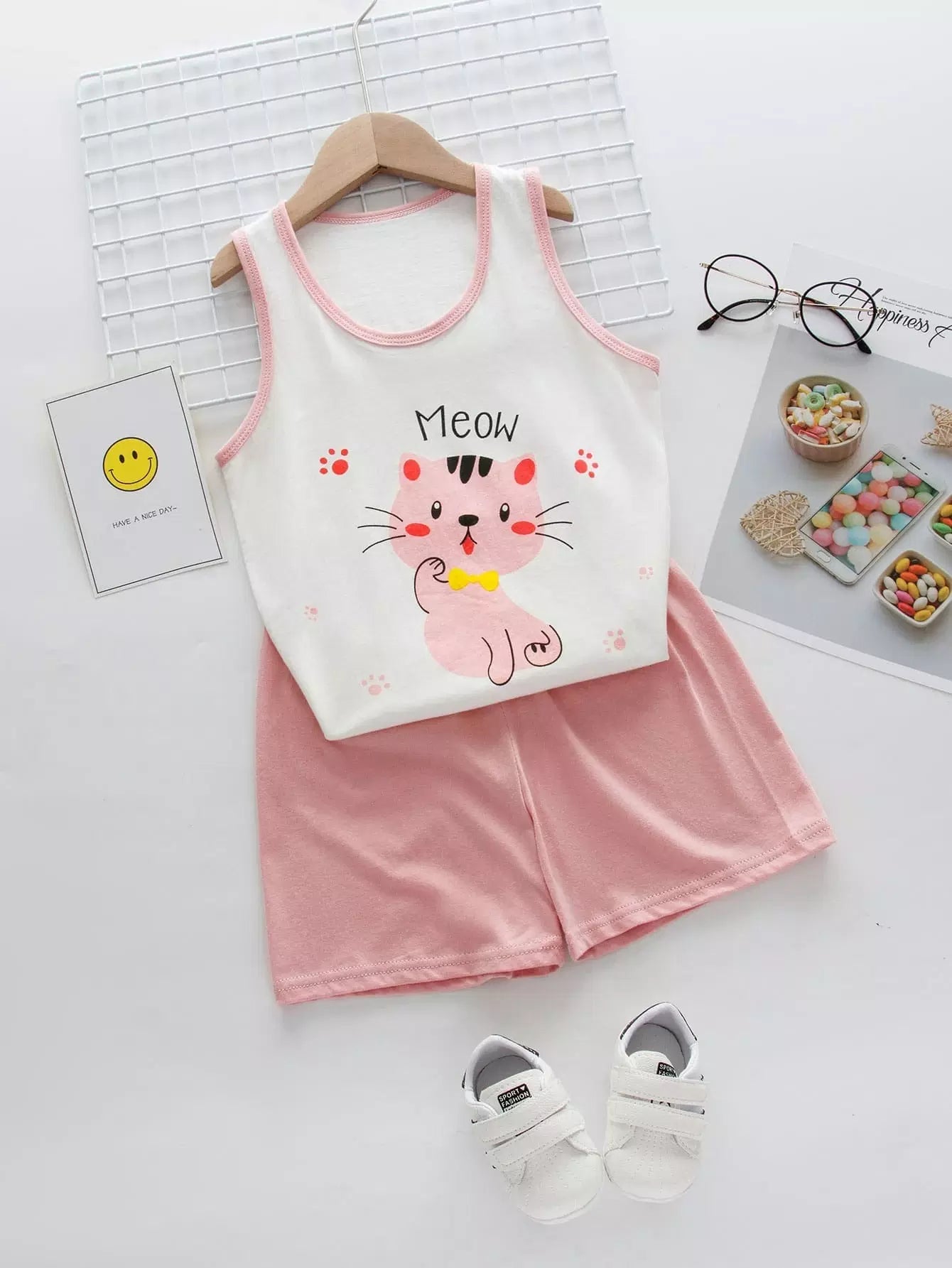طقم بيجامات برسومات ورسومات كرتونية للبنات الصغار