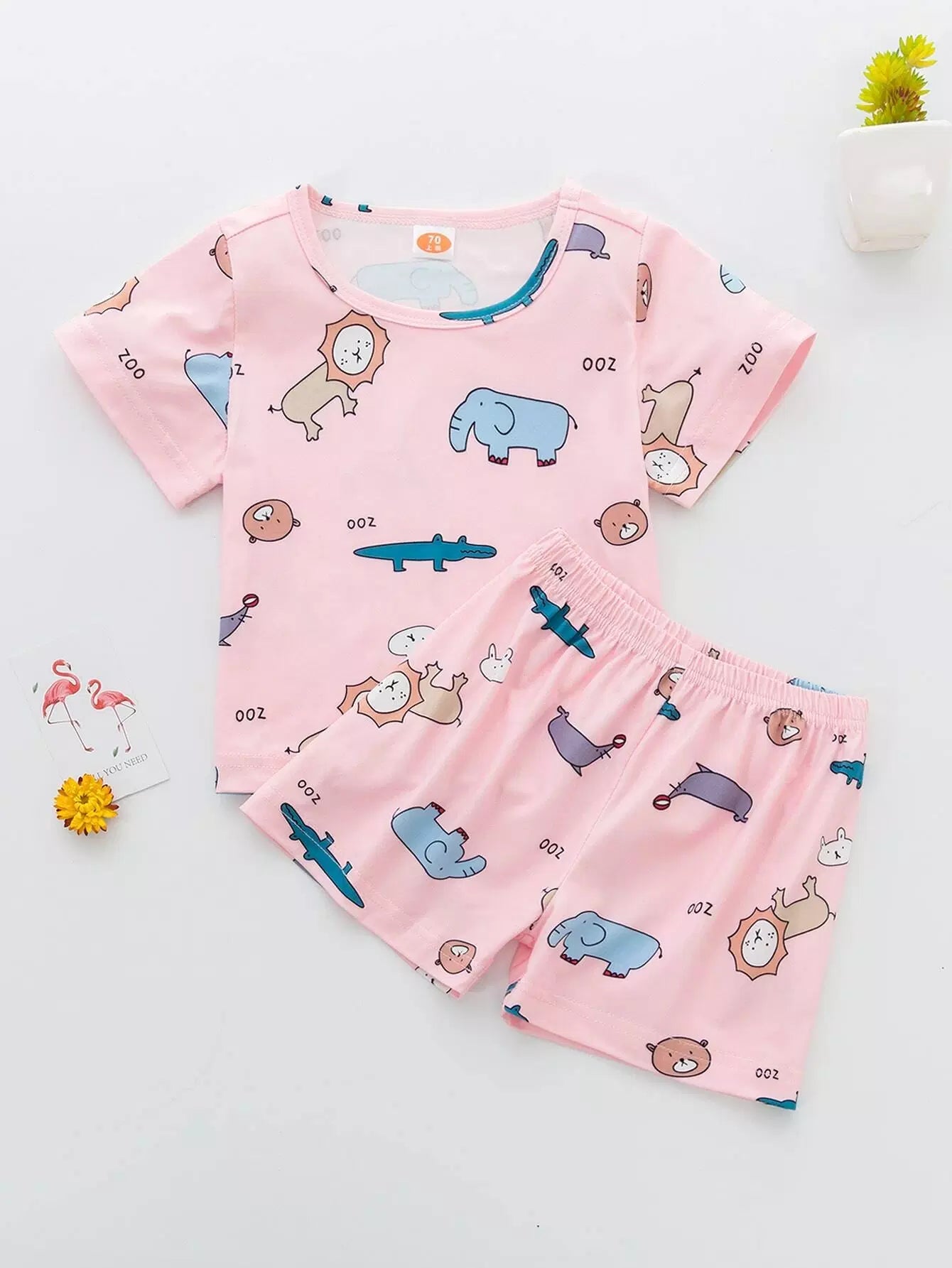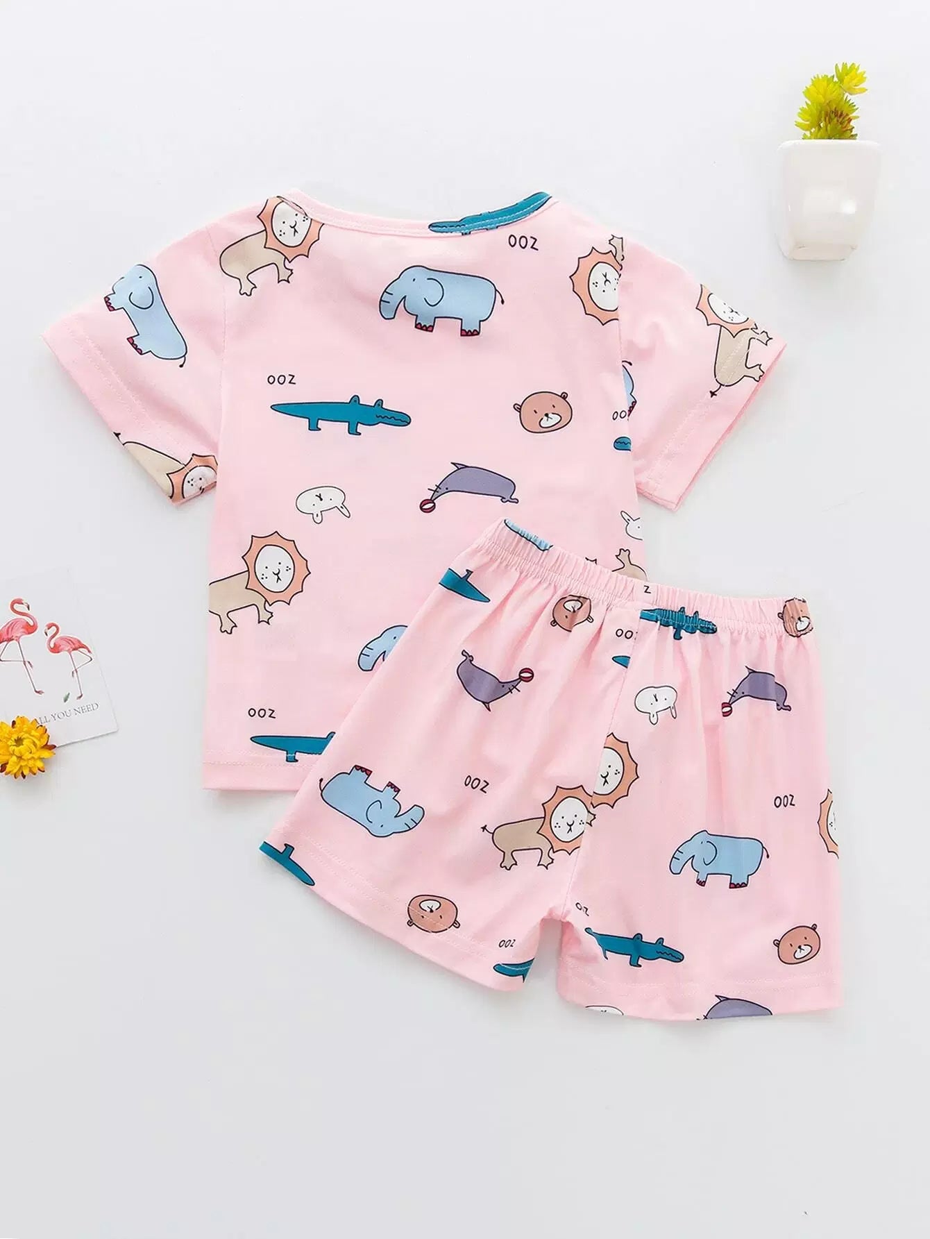 طقم بيجاما قصير برسومات ورسومات كرتونية للبنات الصغار