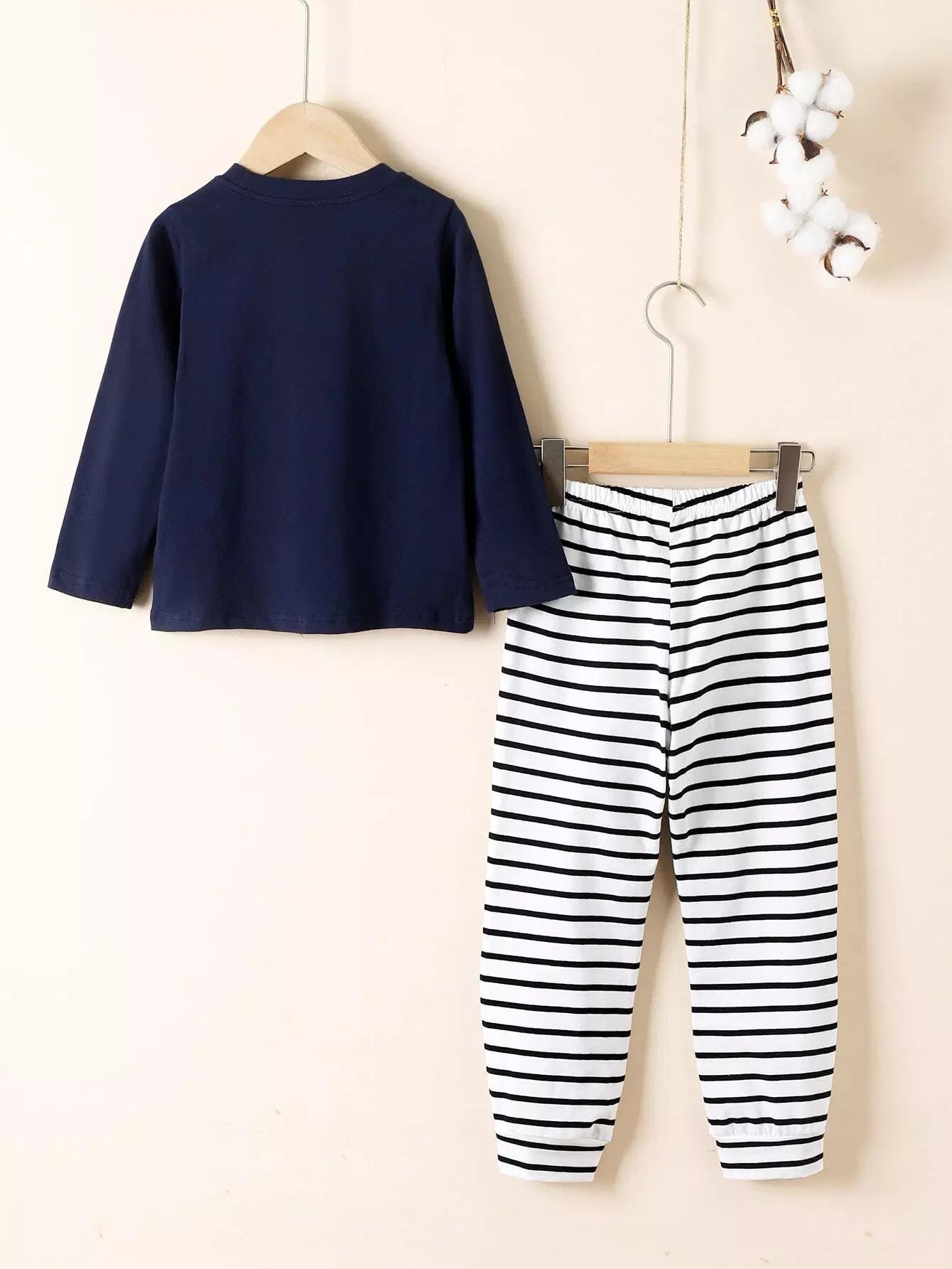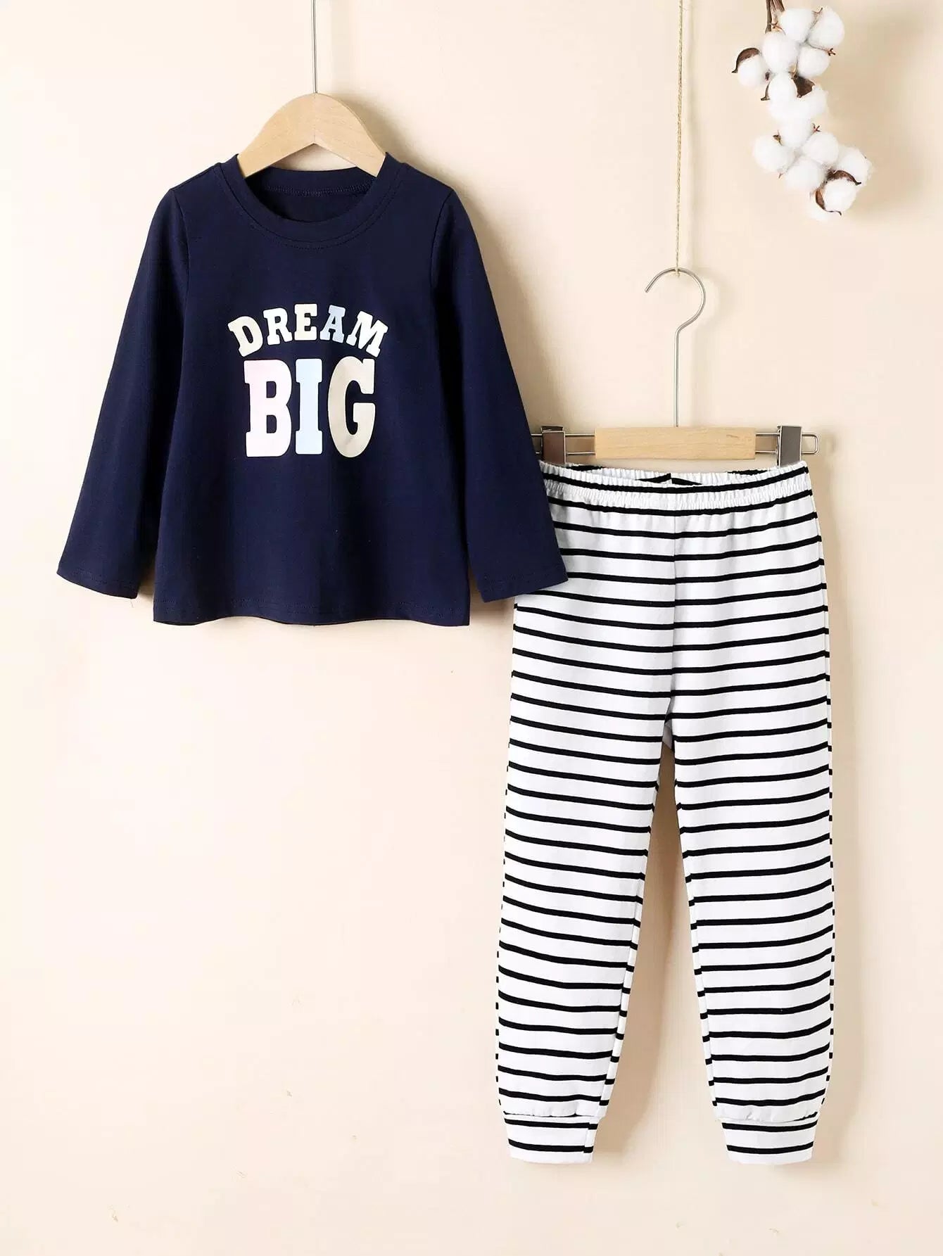 طقم بيجامة بنات صغيرات مطبوع عليه حروف ونقوش مخططة
