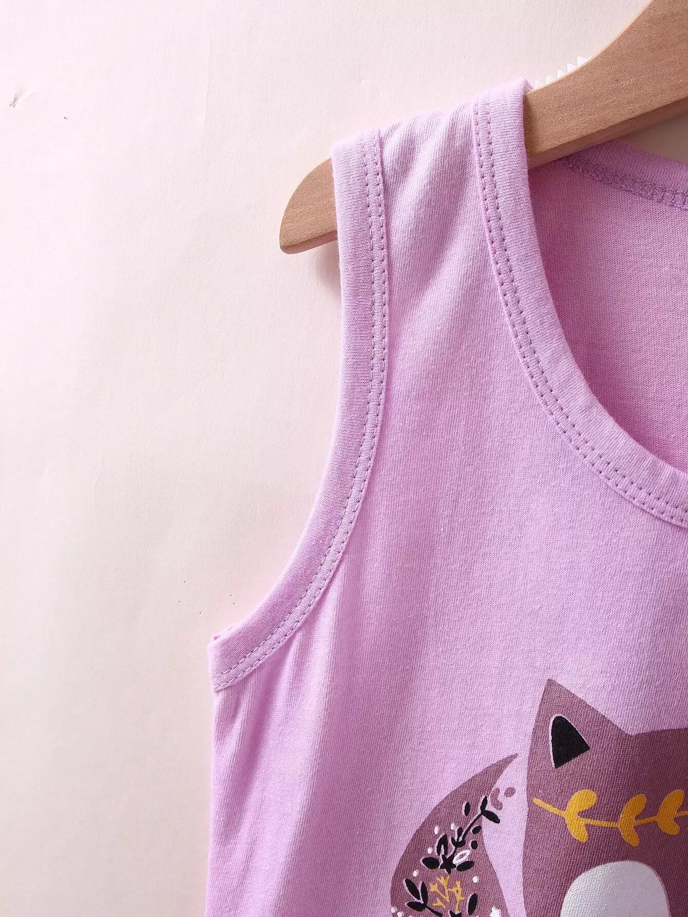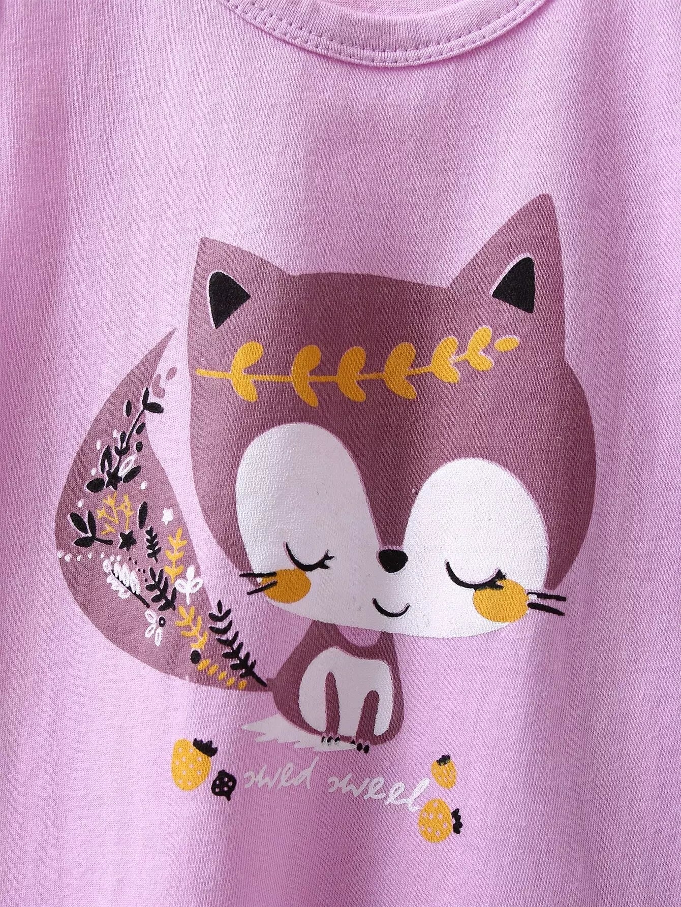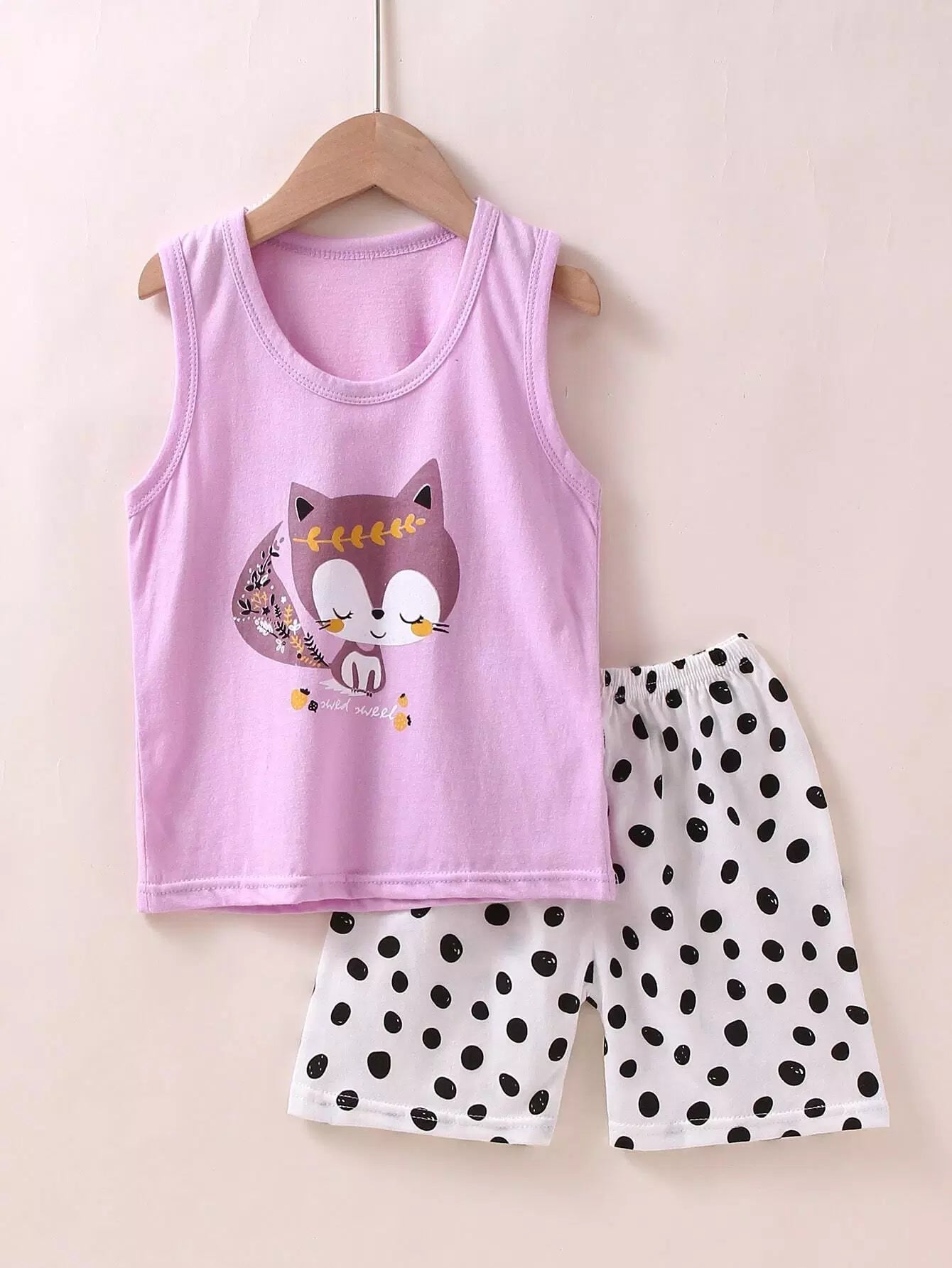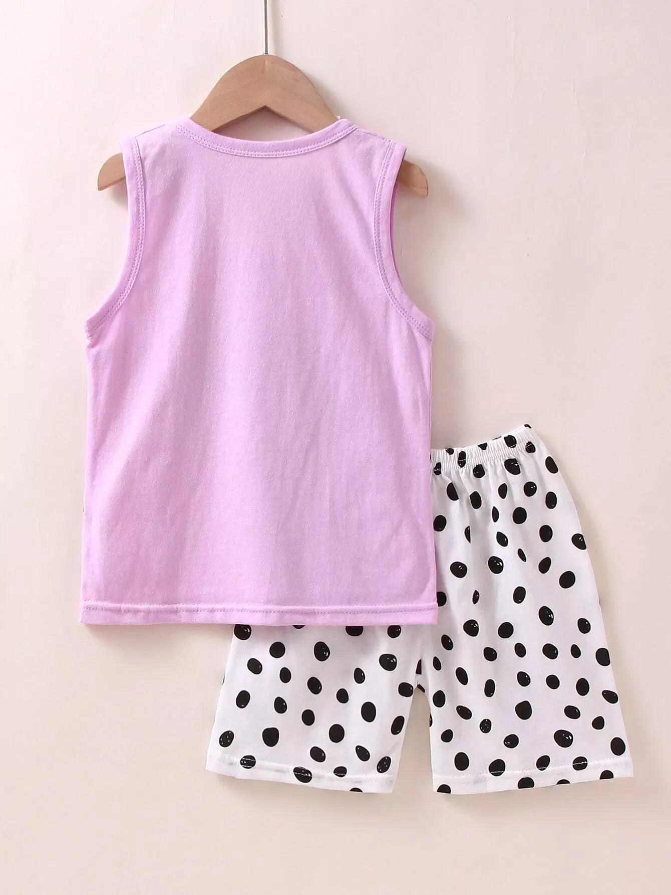 طقم بيجامة بنات صغيرات منقّطة ورسومات كرتونية منقطة ورسومات كرتونية