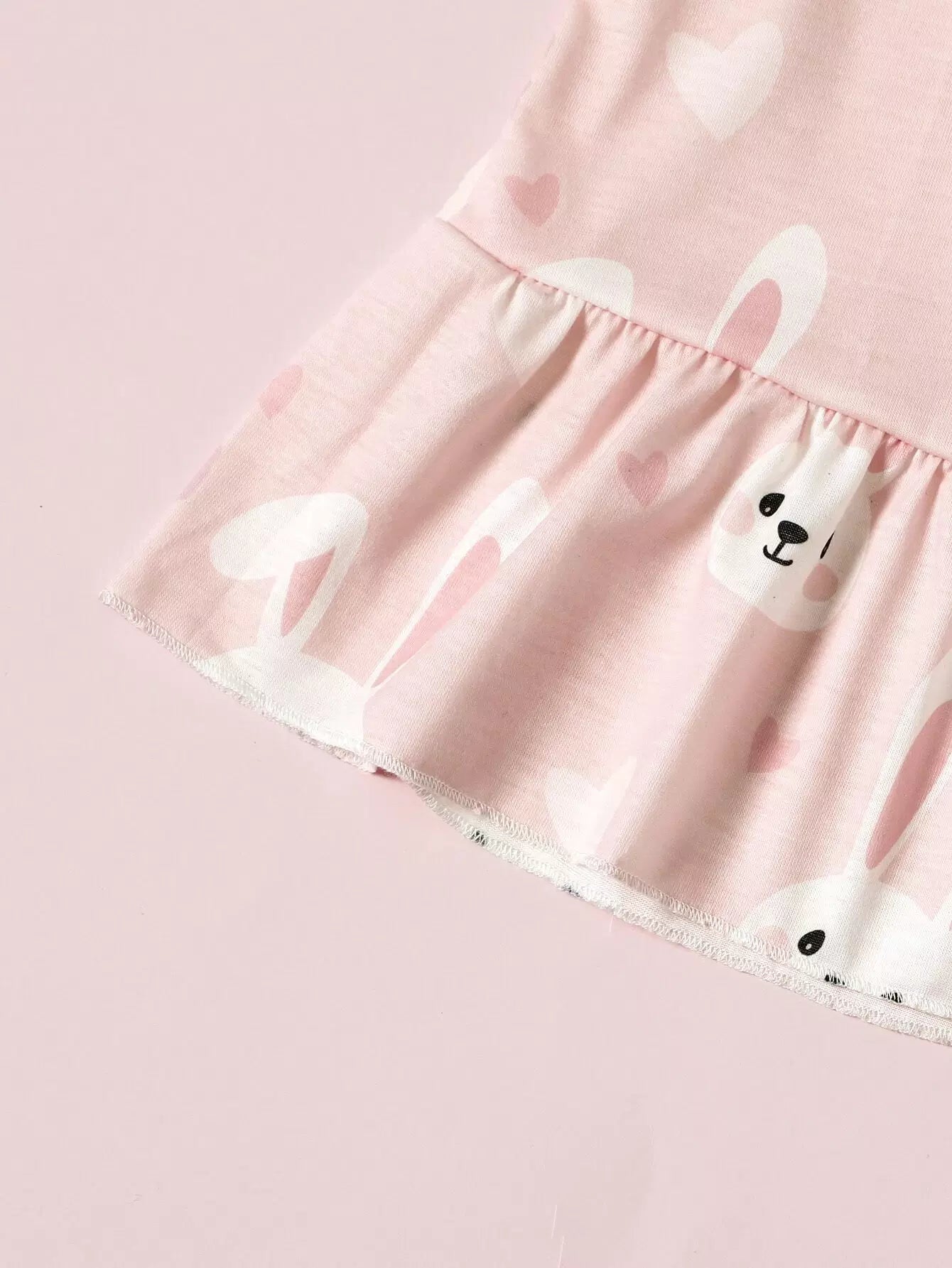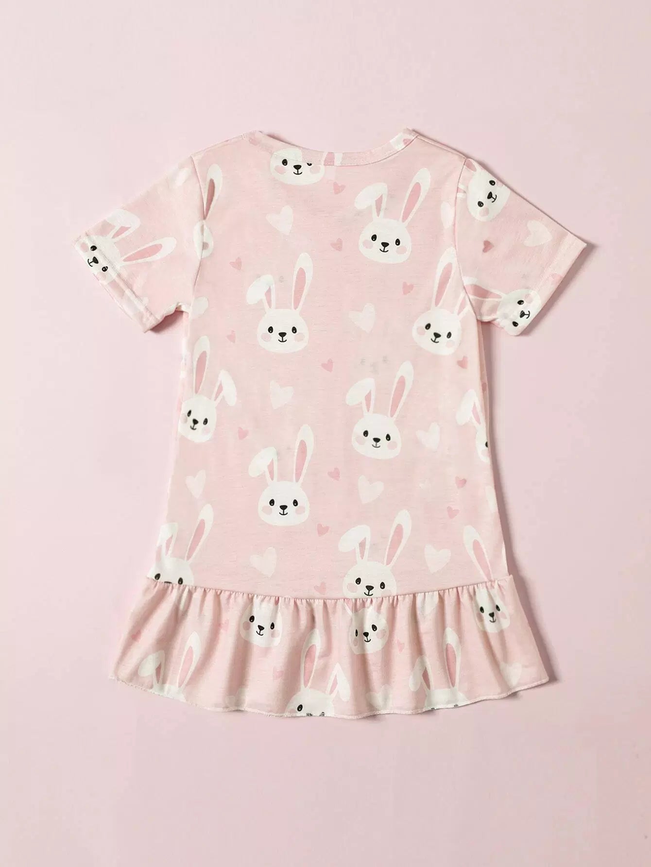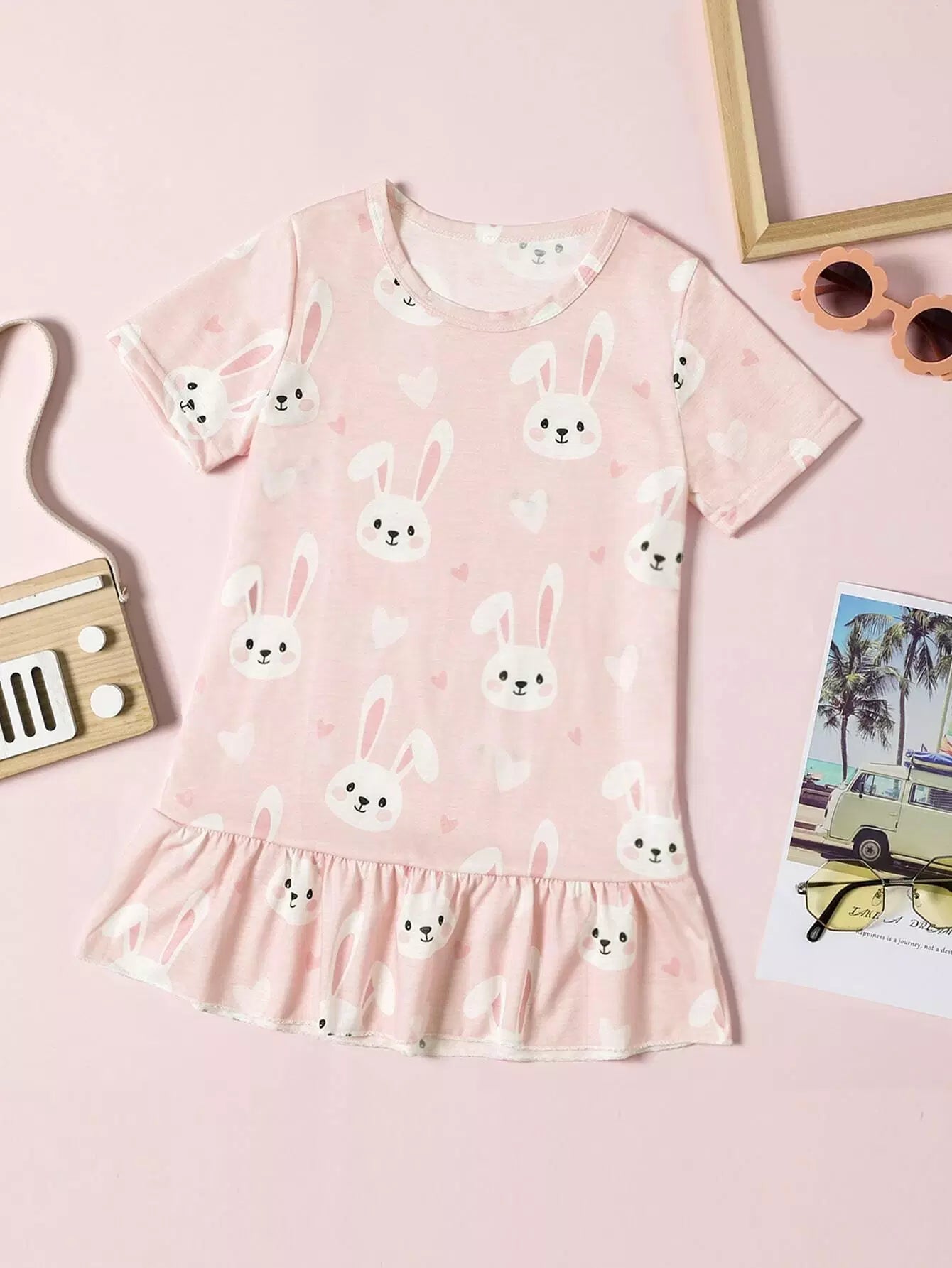 فستان سهرة بناتي صغيرات مزين بكشكش على شكل أرنب جرافيك كشكش