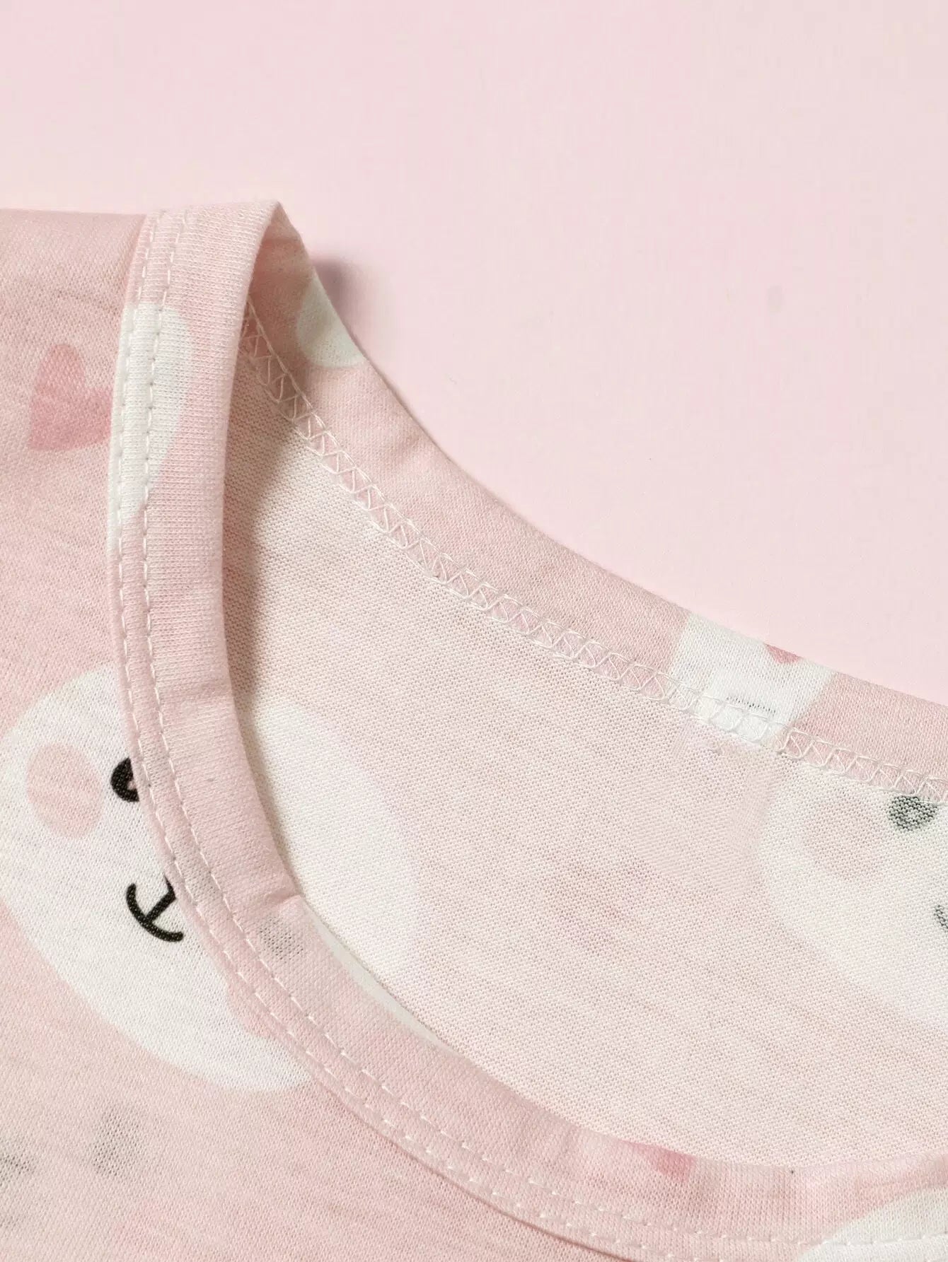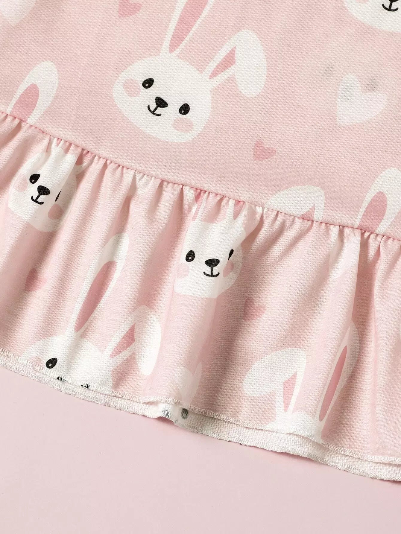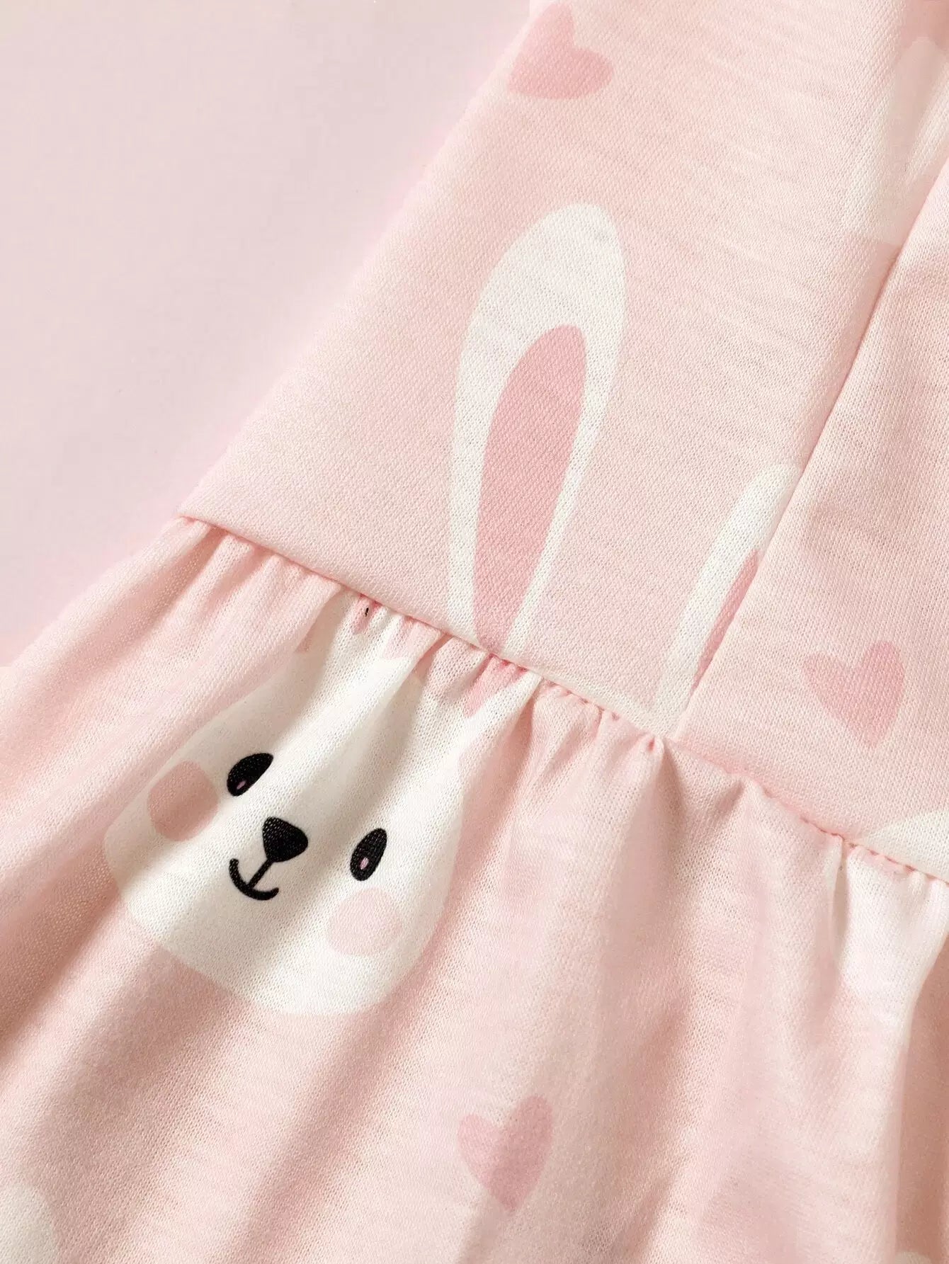 فستان سهرة بناتي صغيرات مزين بكشكش على شكل أرنب جرافيك كشكش