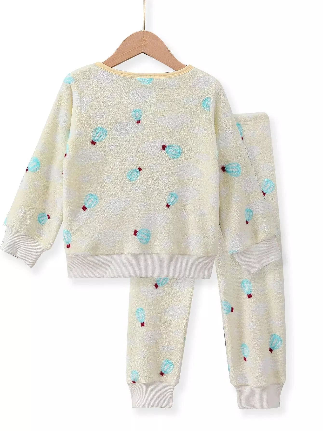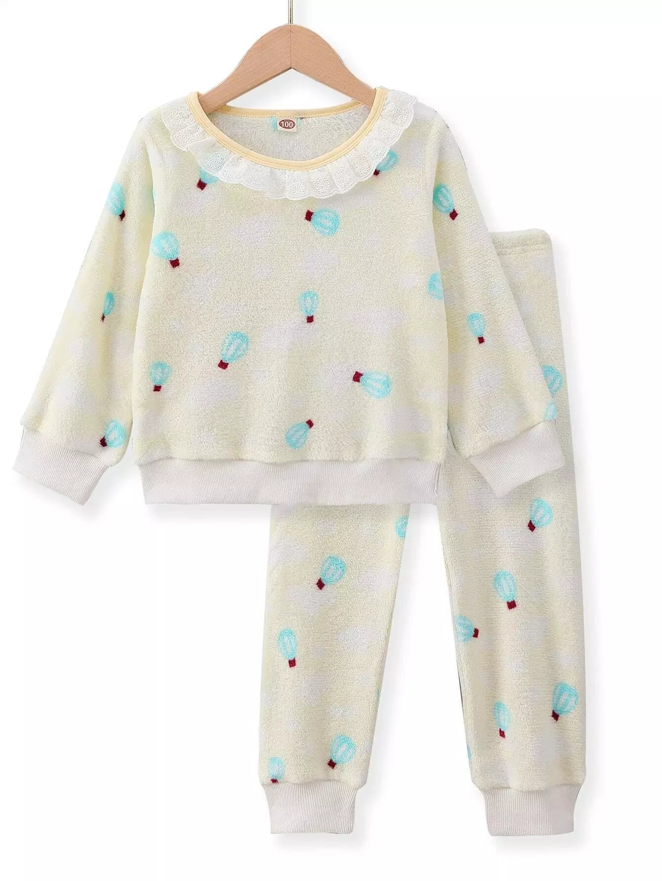 طقم بيجامة فانيلا بقصّة شيفتي تريم للبنات الصغار