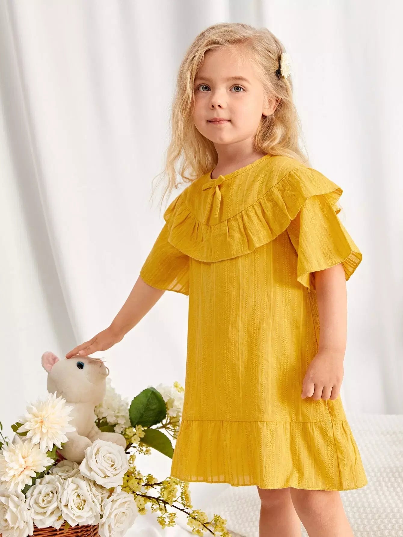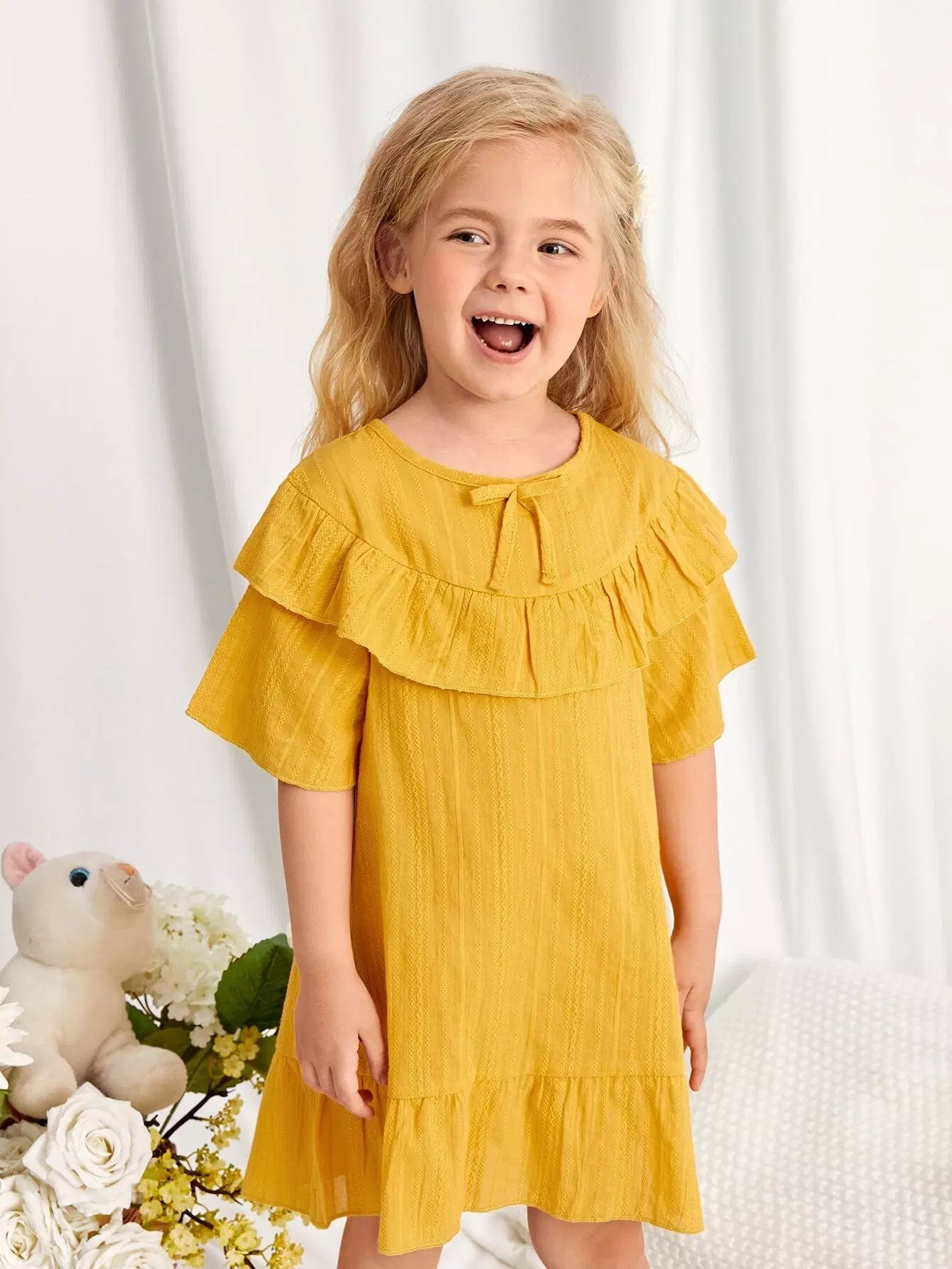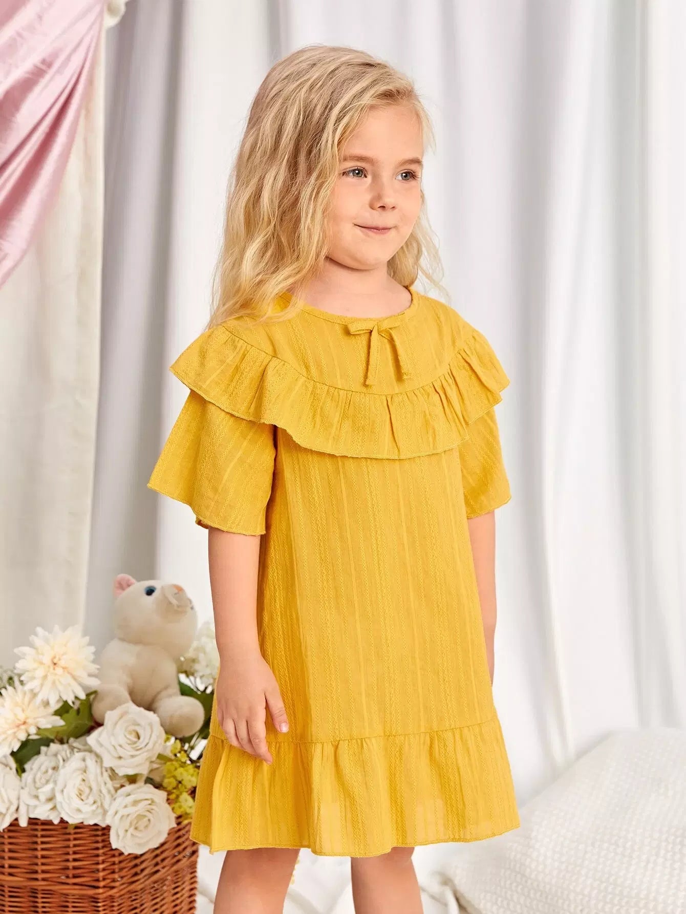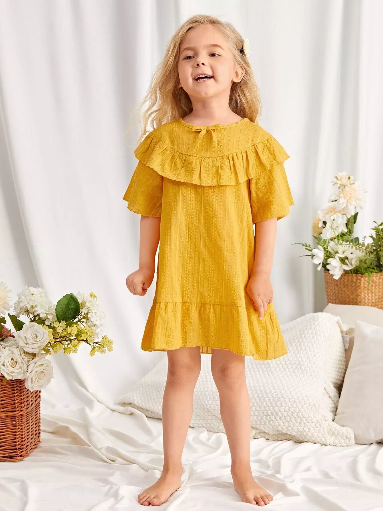 فستان نوم بتصميم سادة مزين بعقدة للبنات الصغار