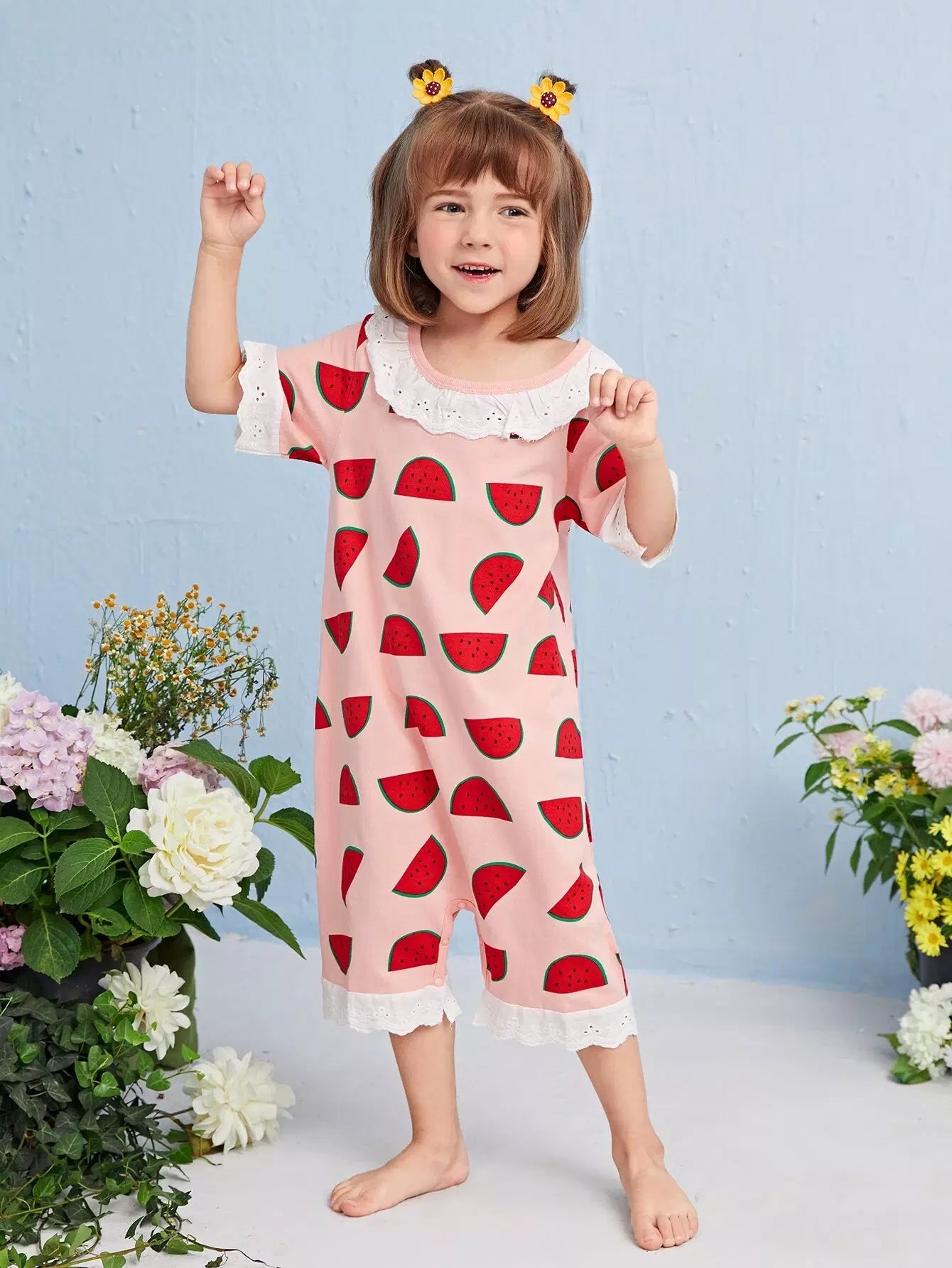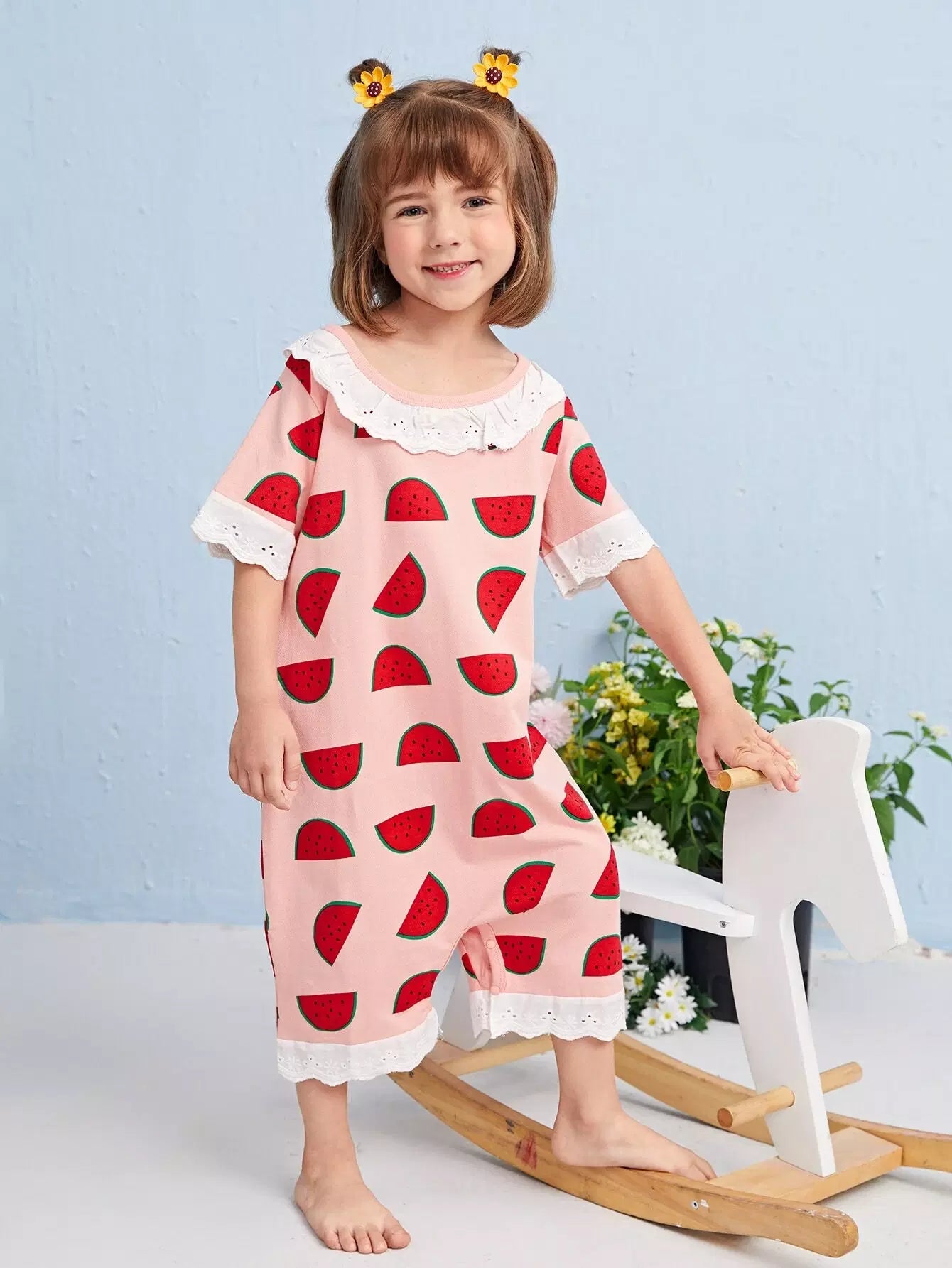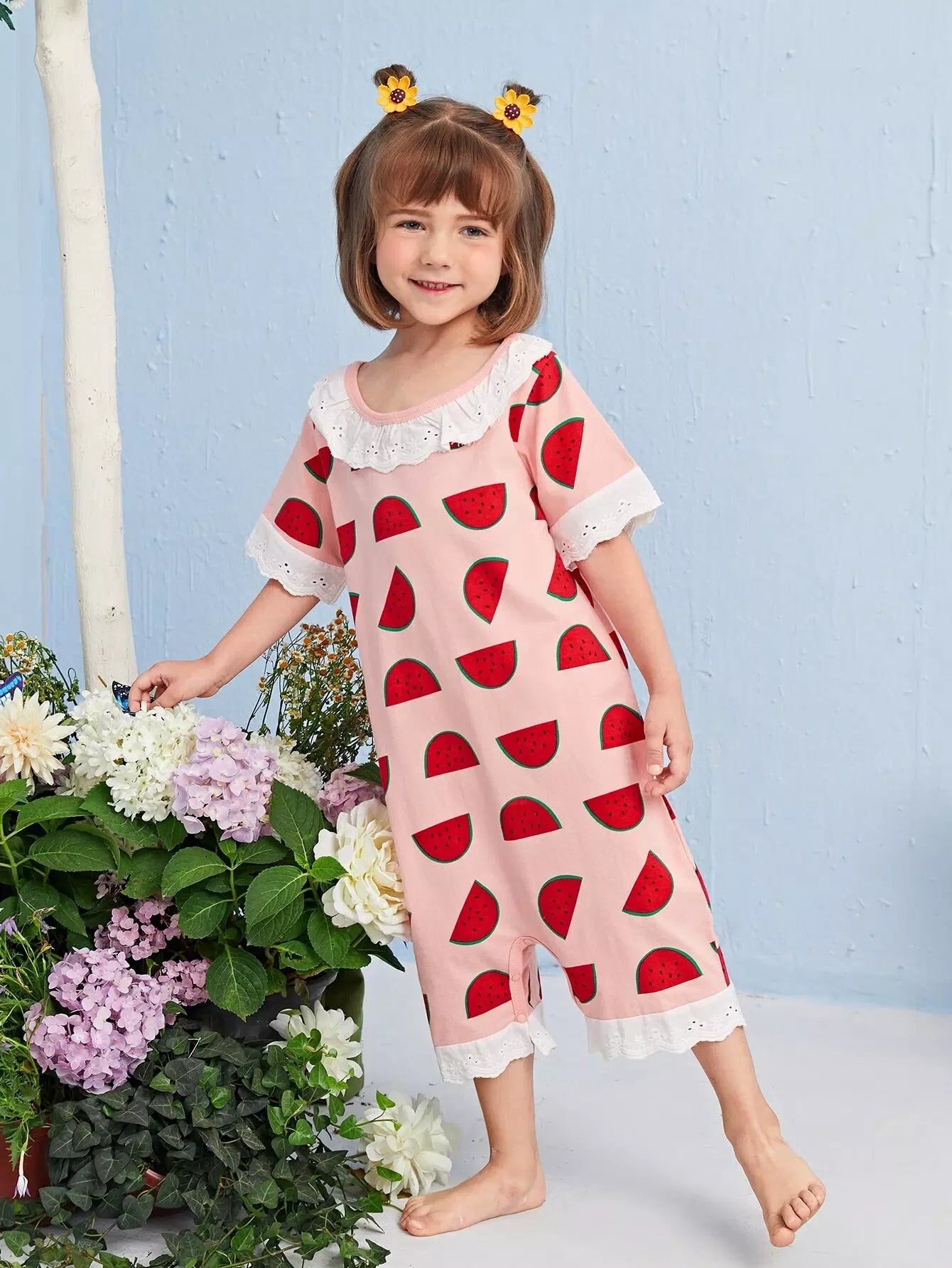 جمبسوت نوم بناتي صغيرات بطيخ بطبعة بطيخ بلون متباين