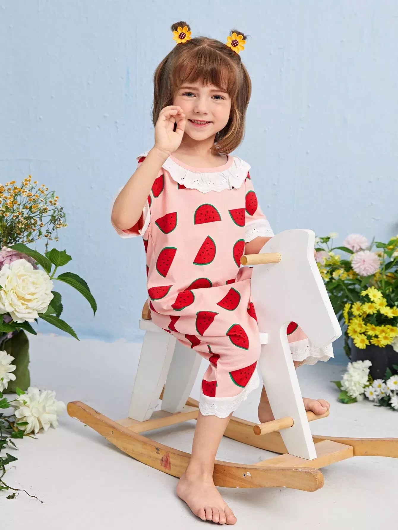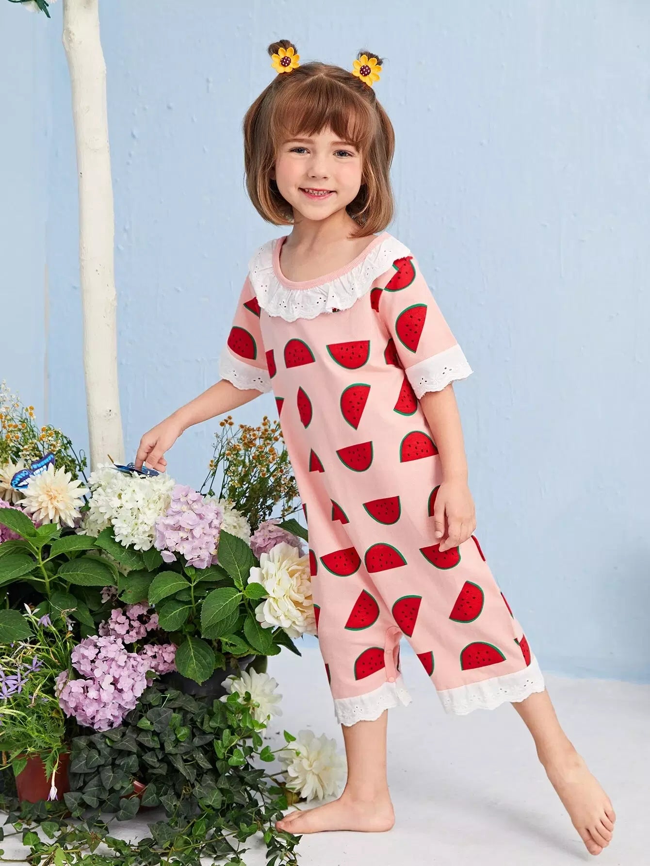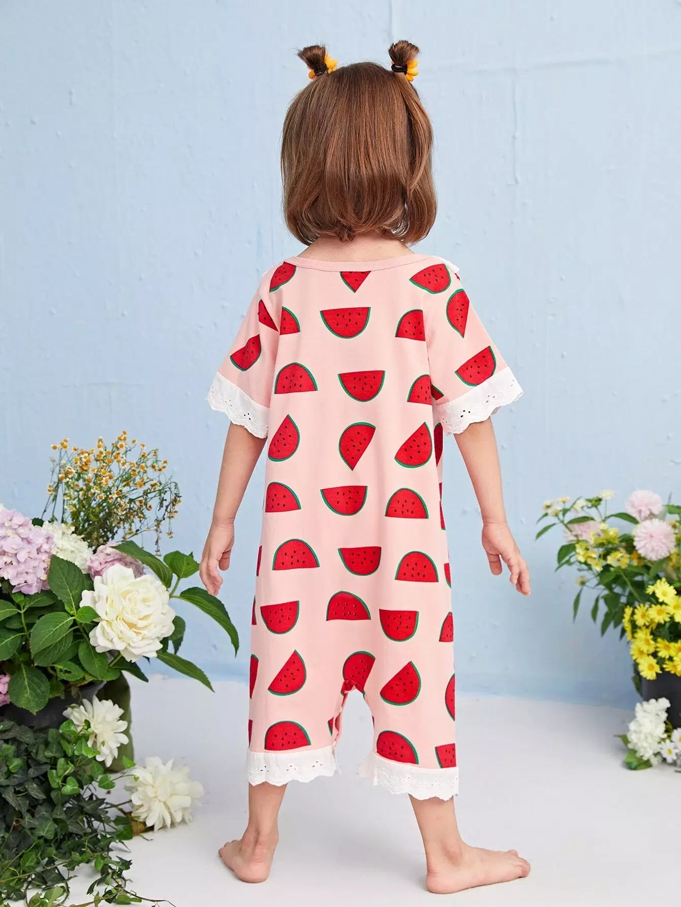 جمبسوت نوم بناتي صغيرات بطيخ بطبعة بطيخ بلون متباين