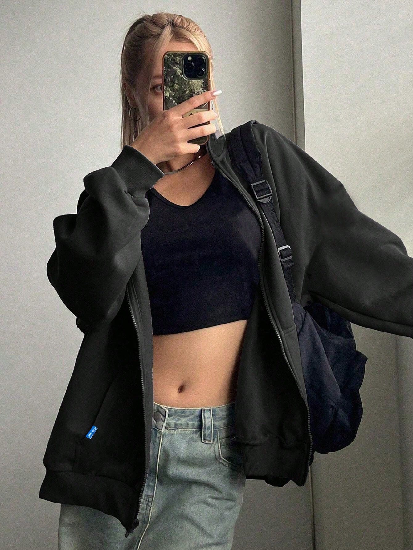 سترة رياضية أنيقة بغطاء رأس مزينة بطبعة عنكبوت، قطعة واحدة، للبنات المراهقات