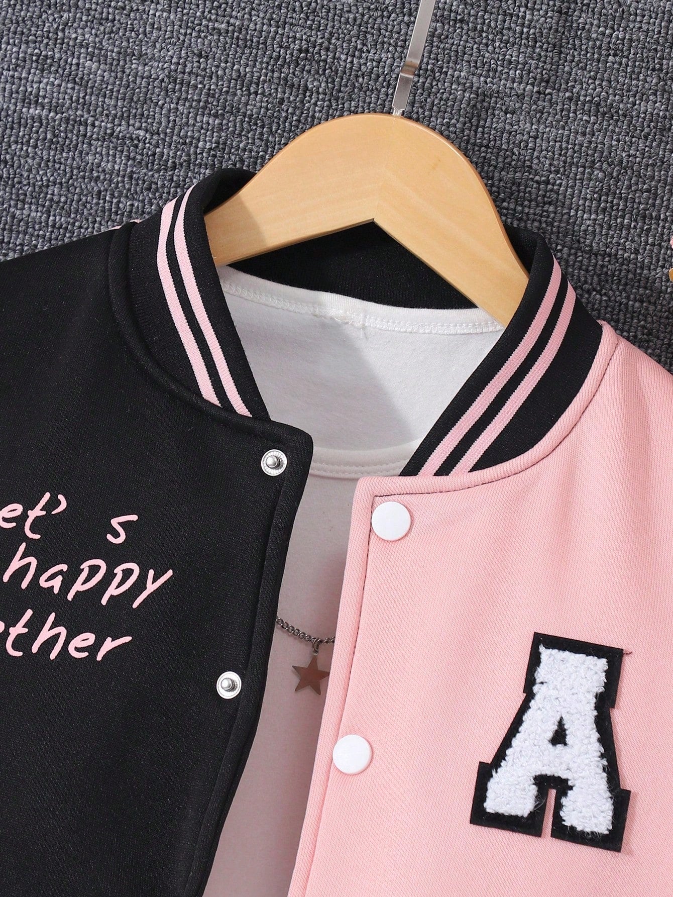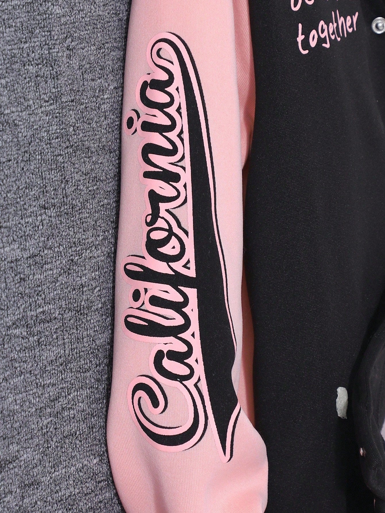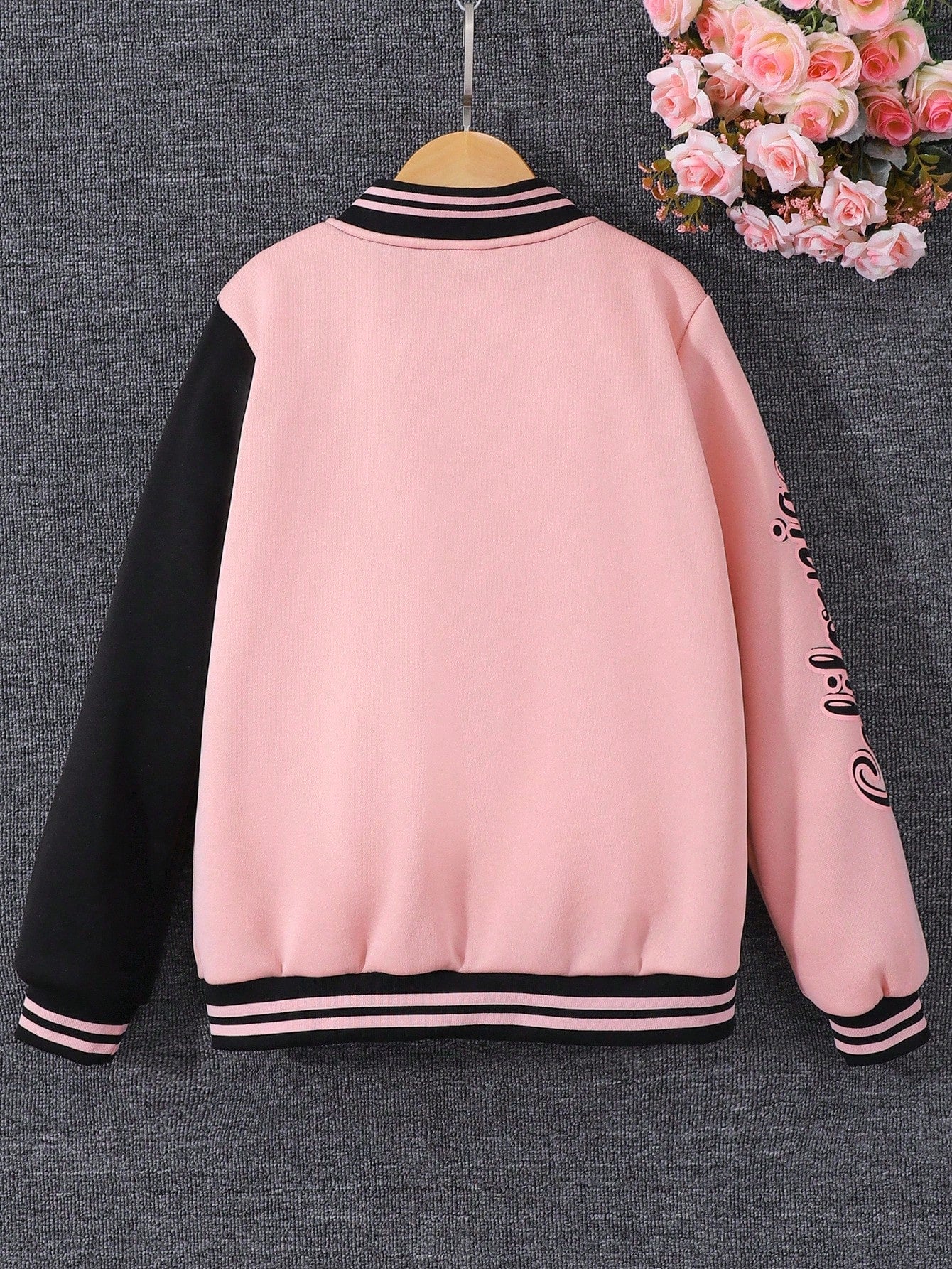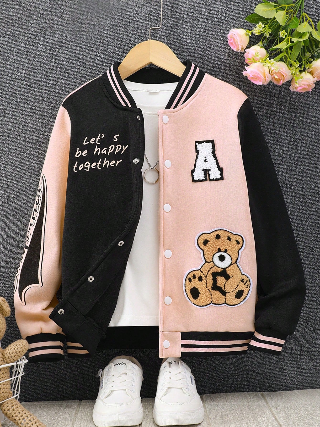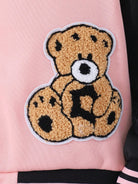 جاكيت رياضي ثنائي اللون للبنات المراهقات، مزين برسومات دب وشعار، بدون تيشيرت