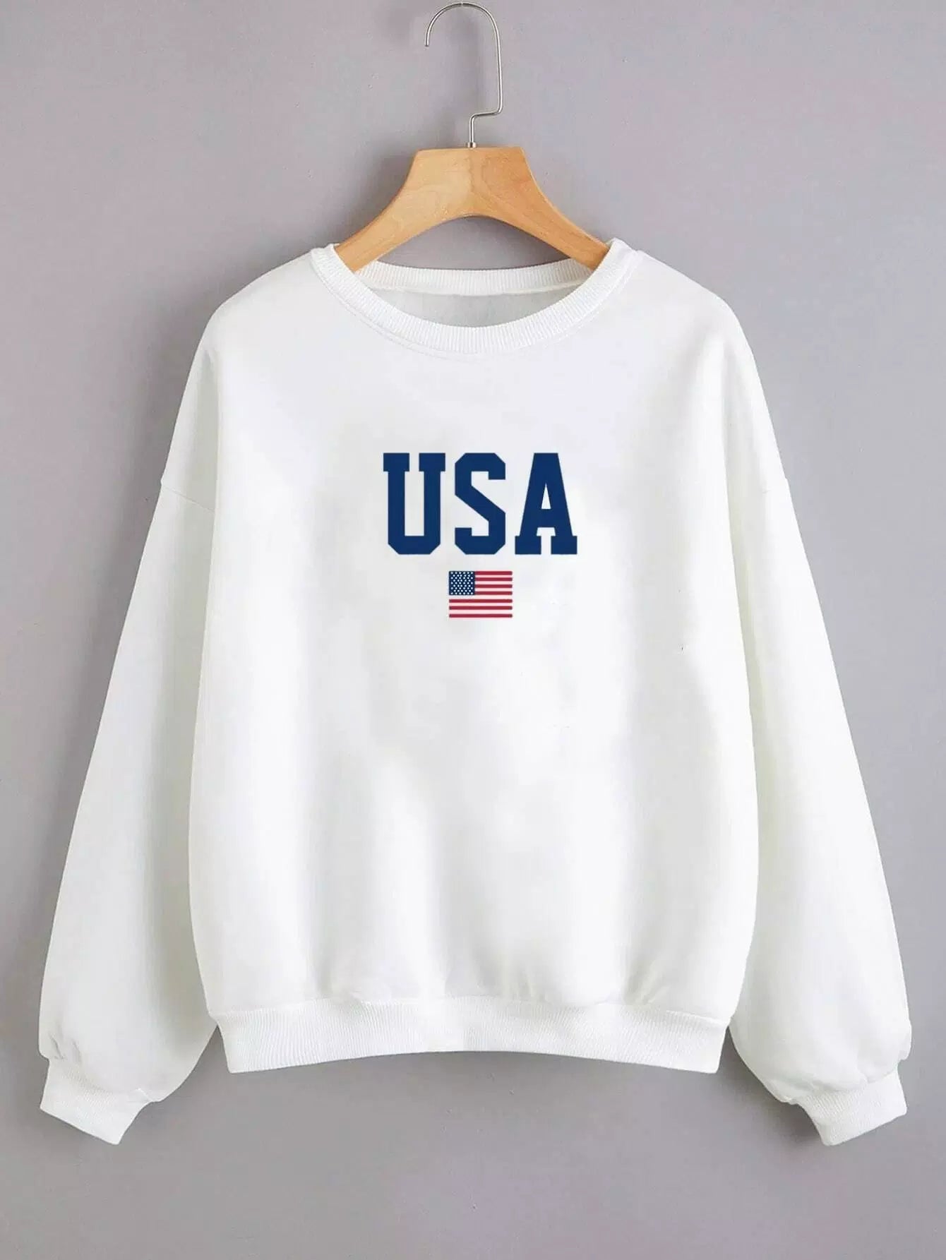 كنزة صوفية برسومات علم أمريكي وحروف بناتي