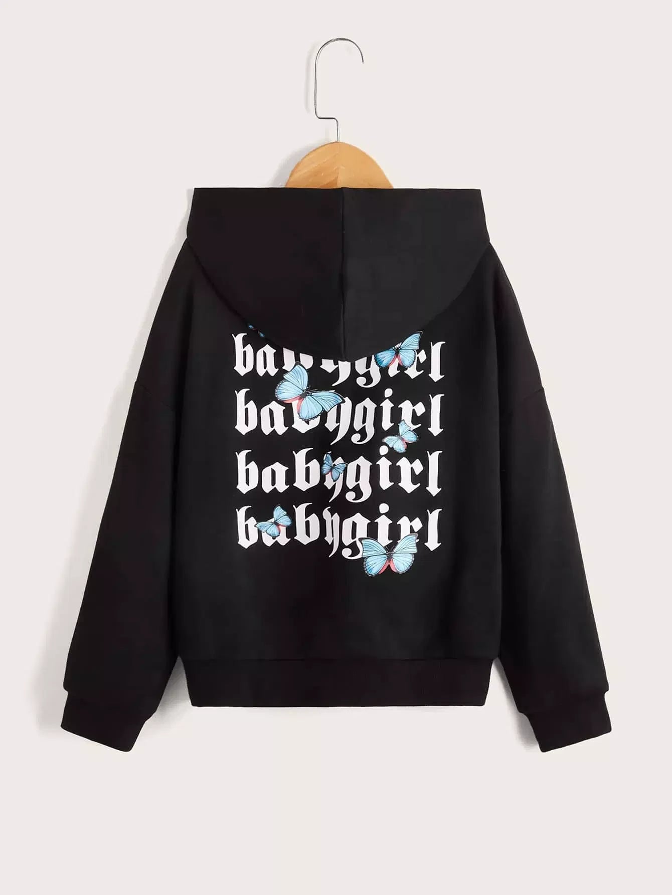 هودي بطبعة فراشة ورسومات حروف للبنات