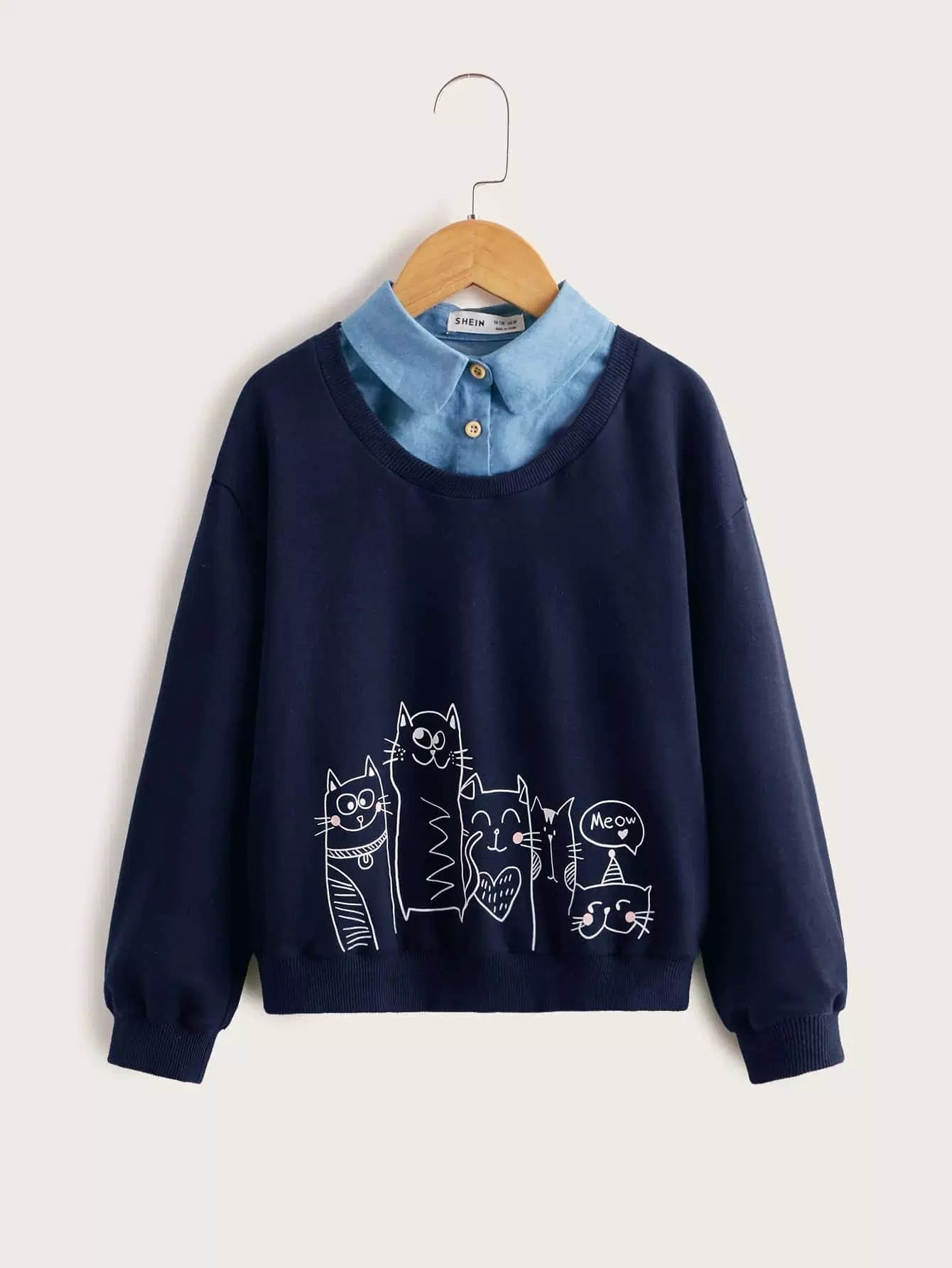 سويت شيرت مطبوع عليه قطط وحروف للبنات