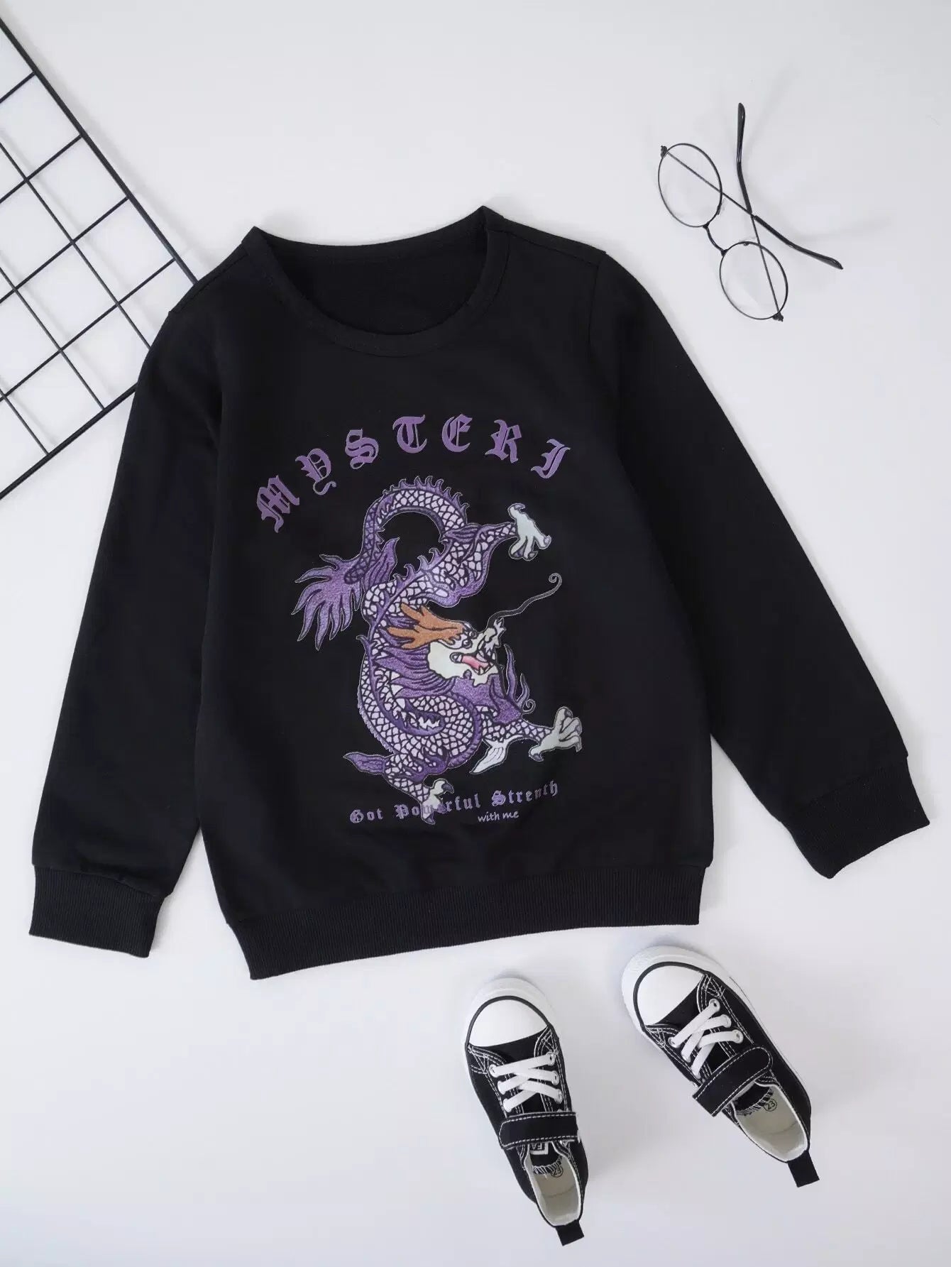 سويت شيرت برسومات تنين صيني وحروف صينية للبنات