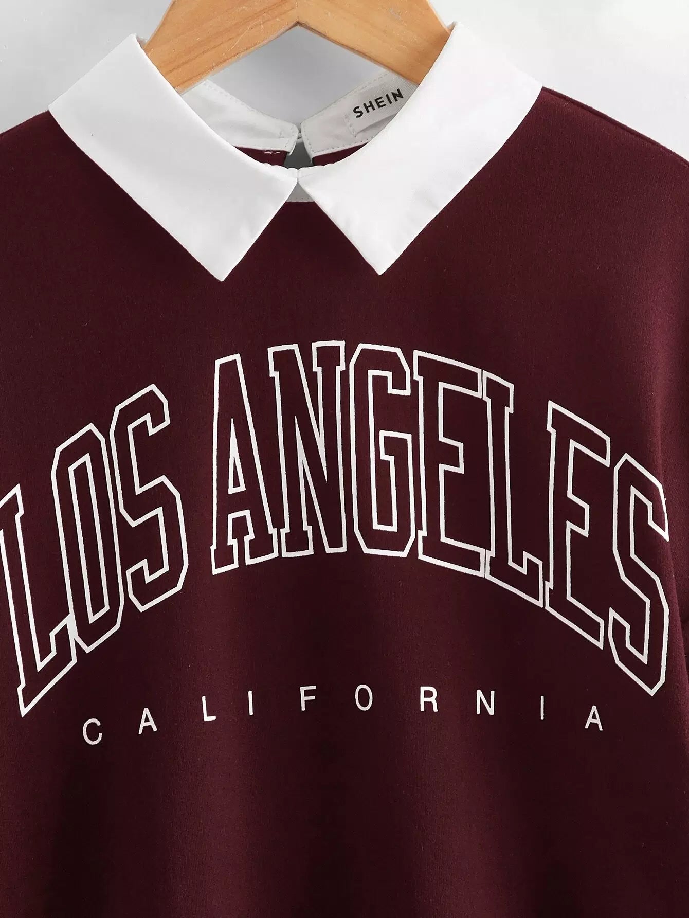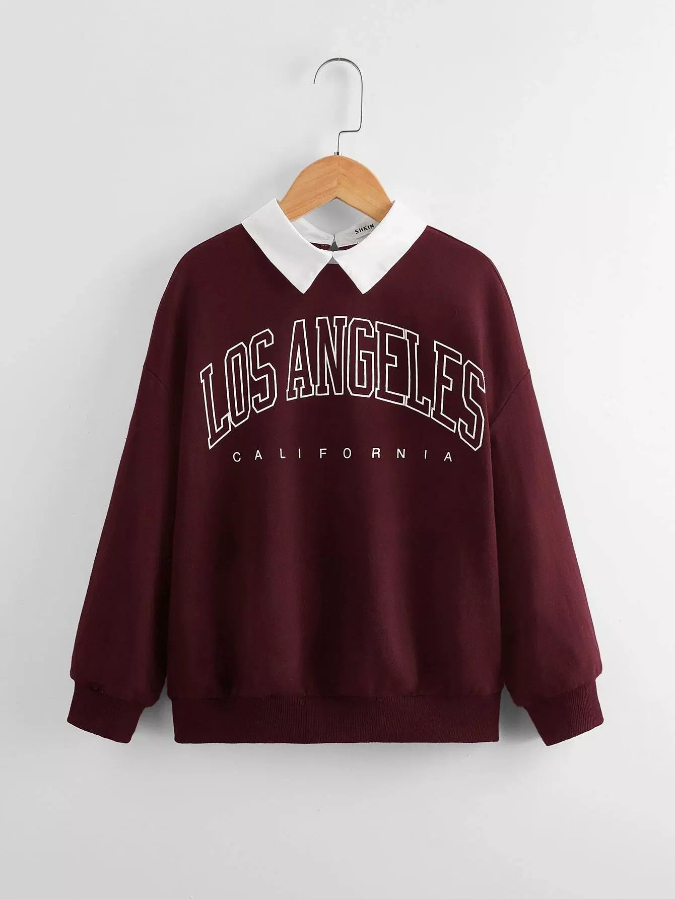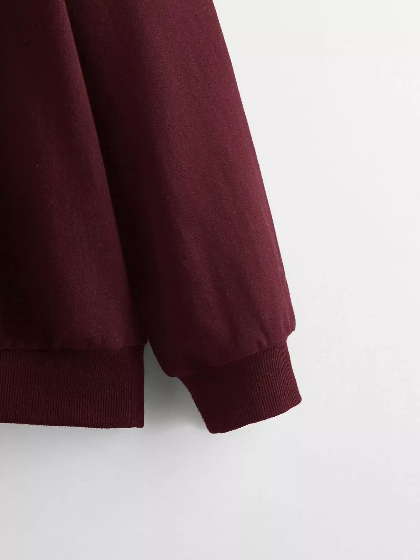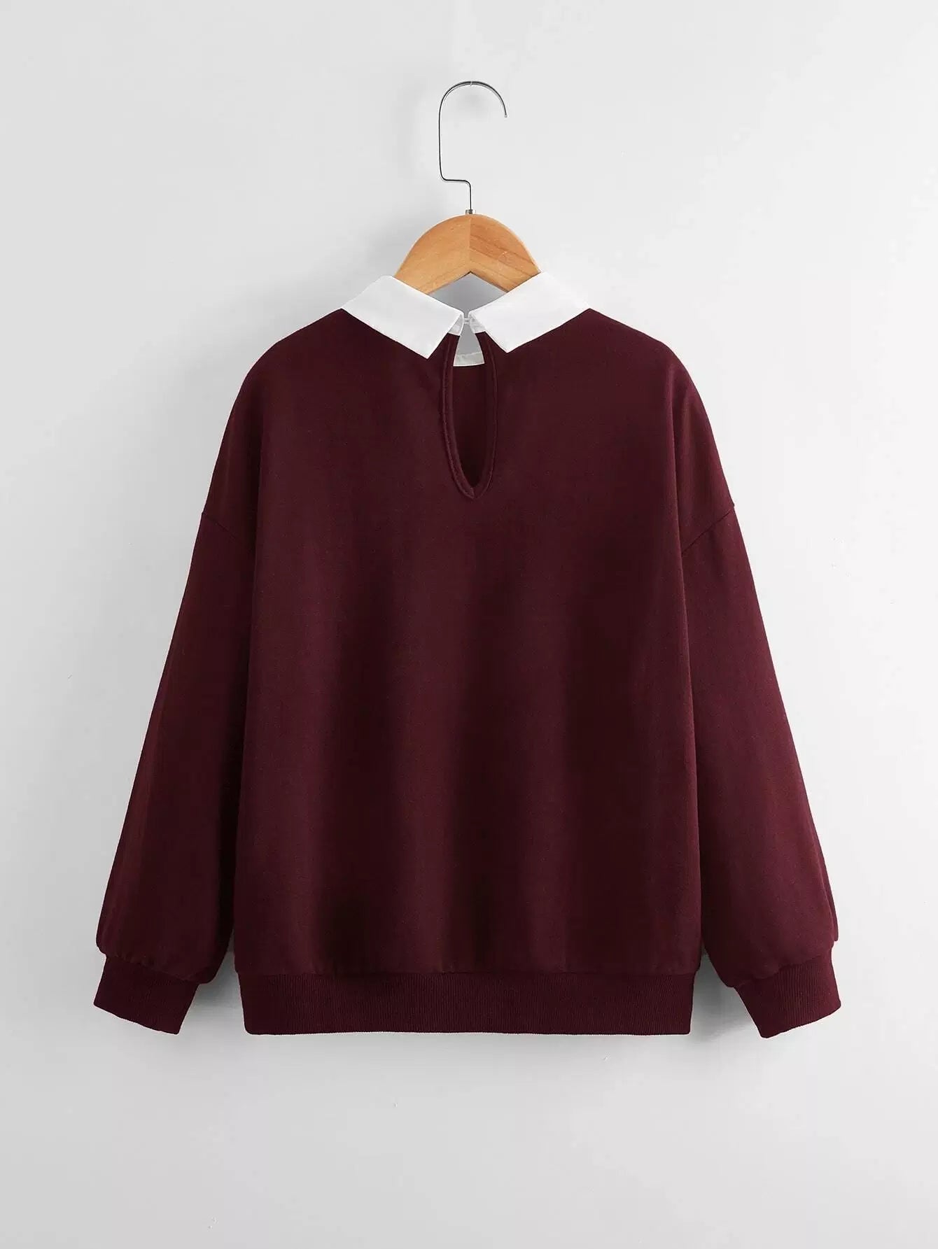 سويت شيرت بنات برقبة متباينة برسومات على الكتف المنسدل برسمة حرف متباين