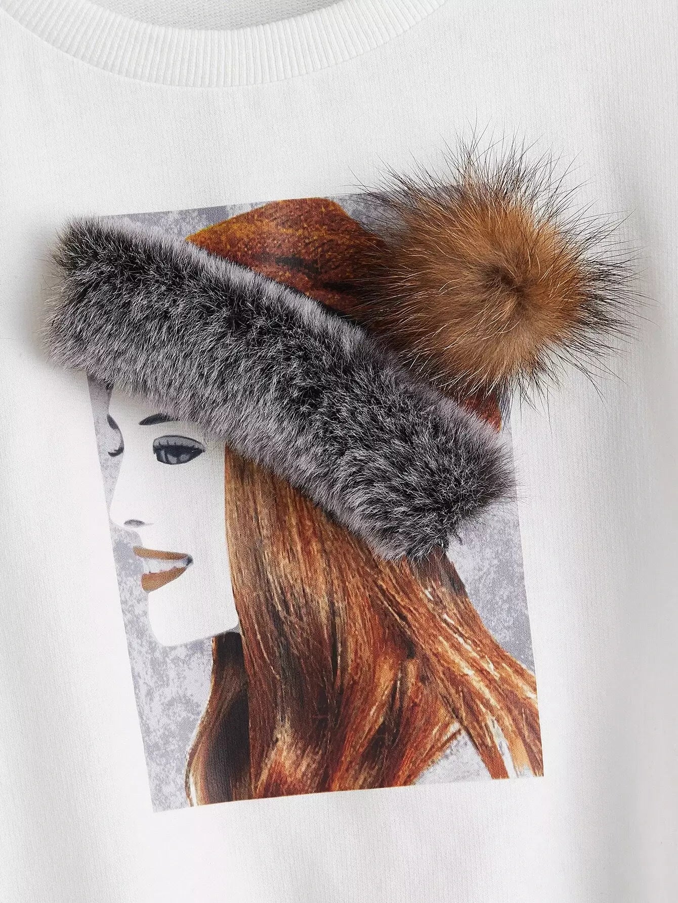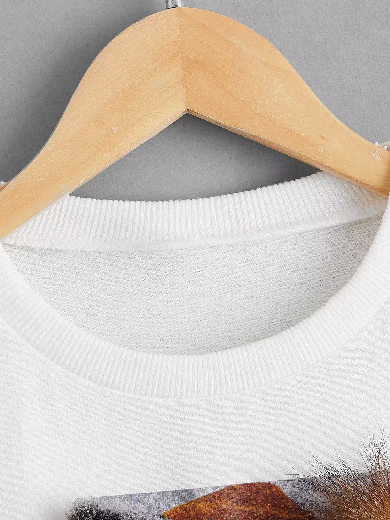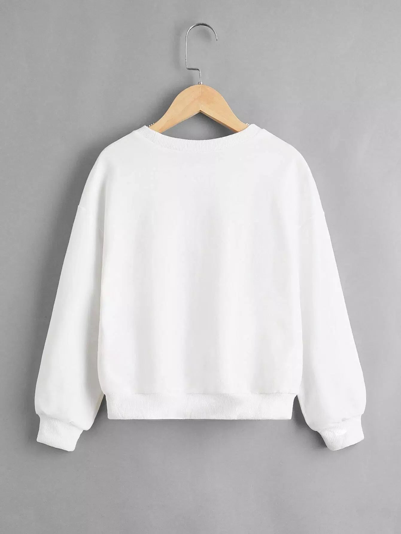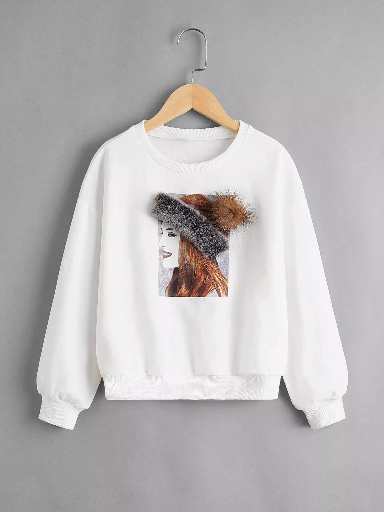 بلوفر بناتي برسومات جرافيكية مع رقع منسدلة على الكتف