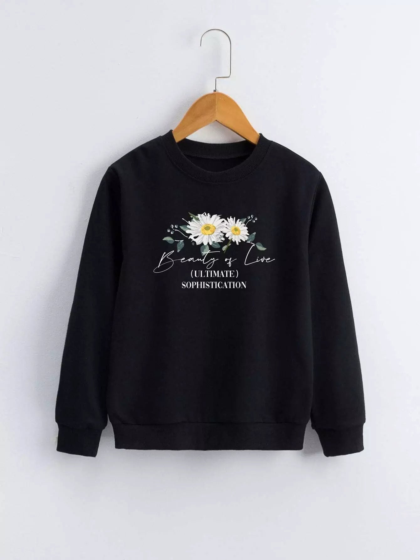 سويت شيرت بناتي مزين بالأزهار والرسومات على شكل حرف