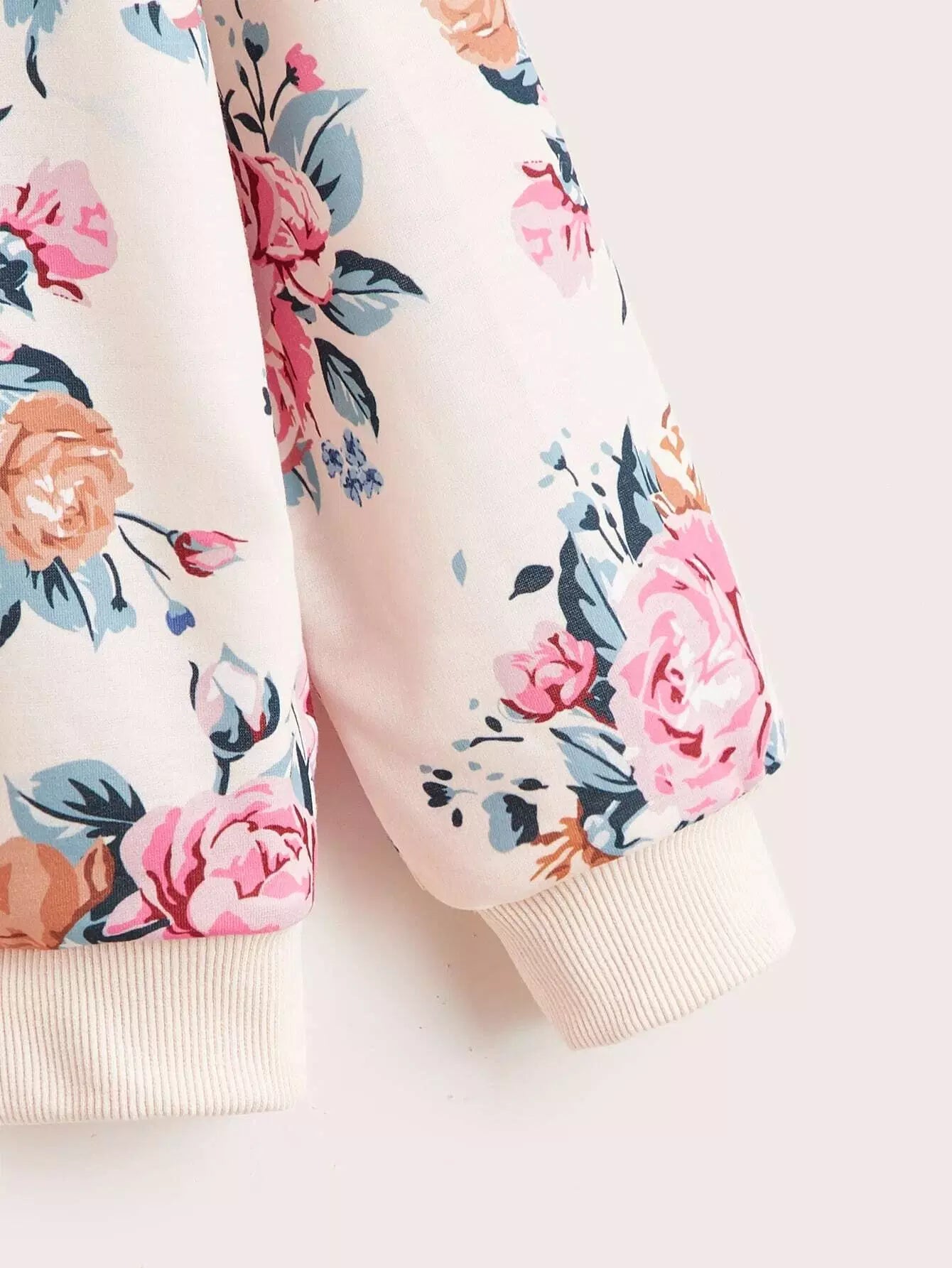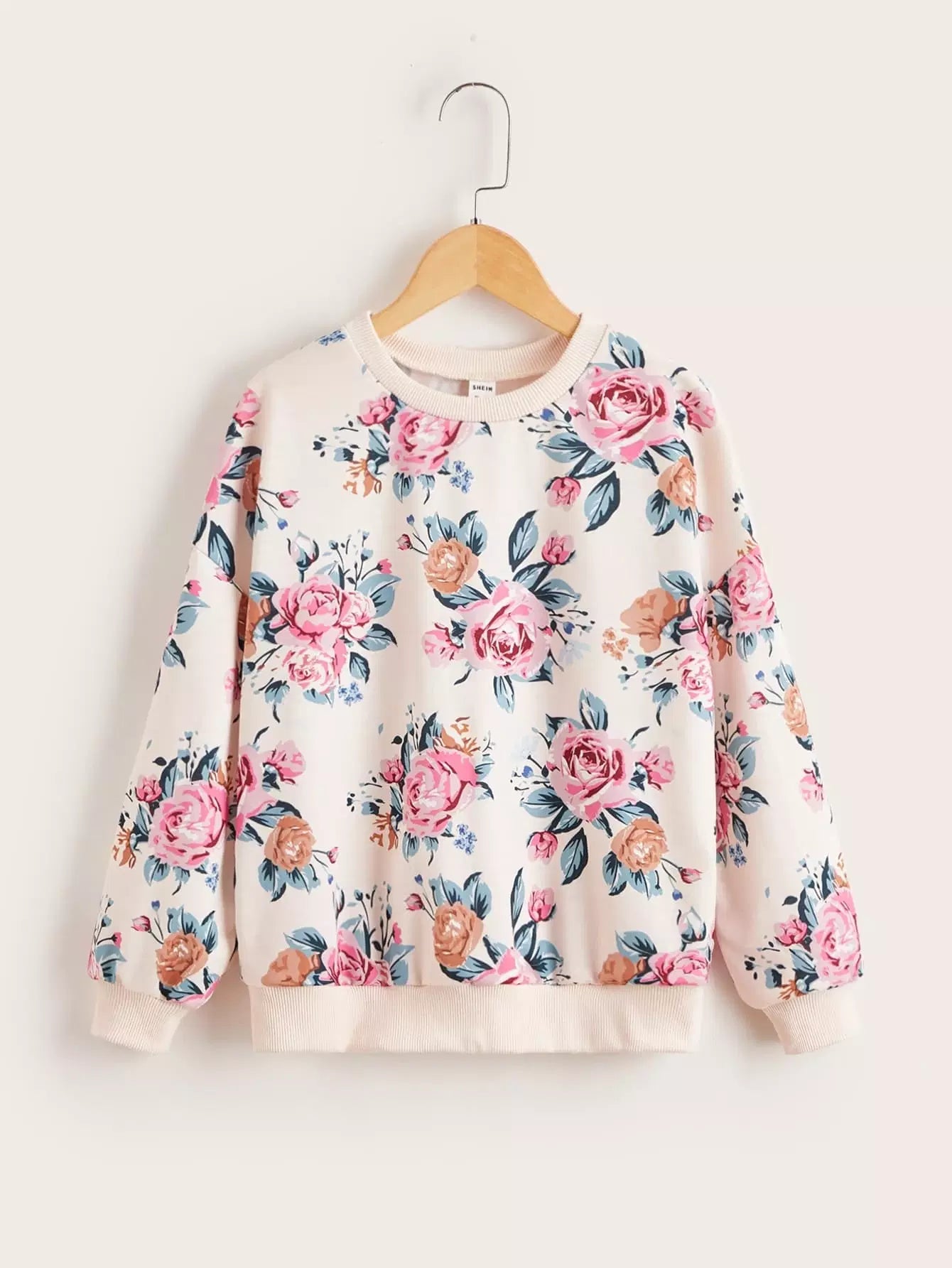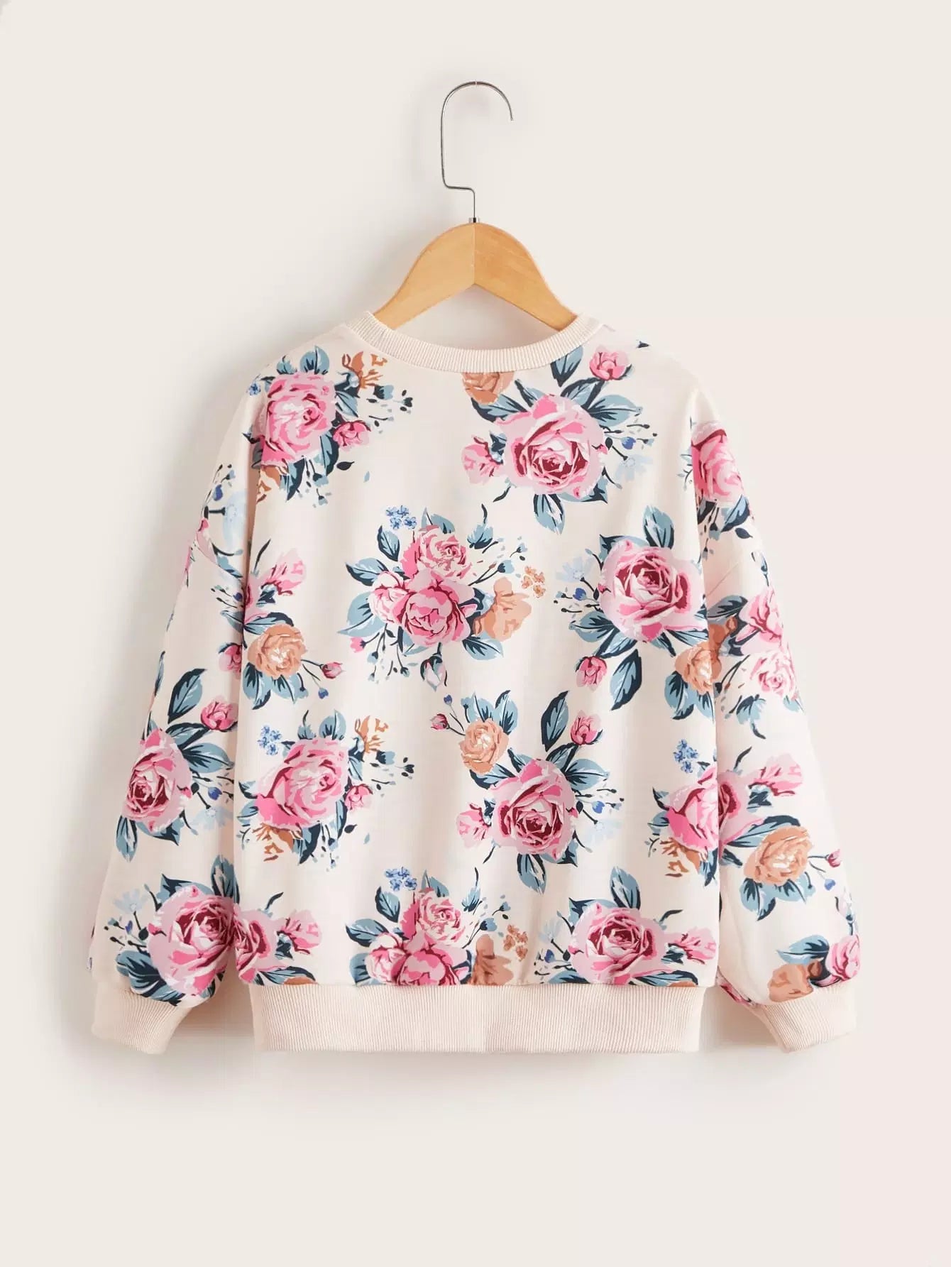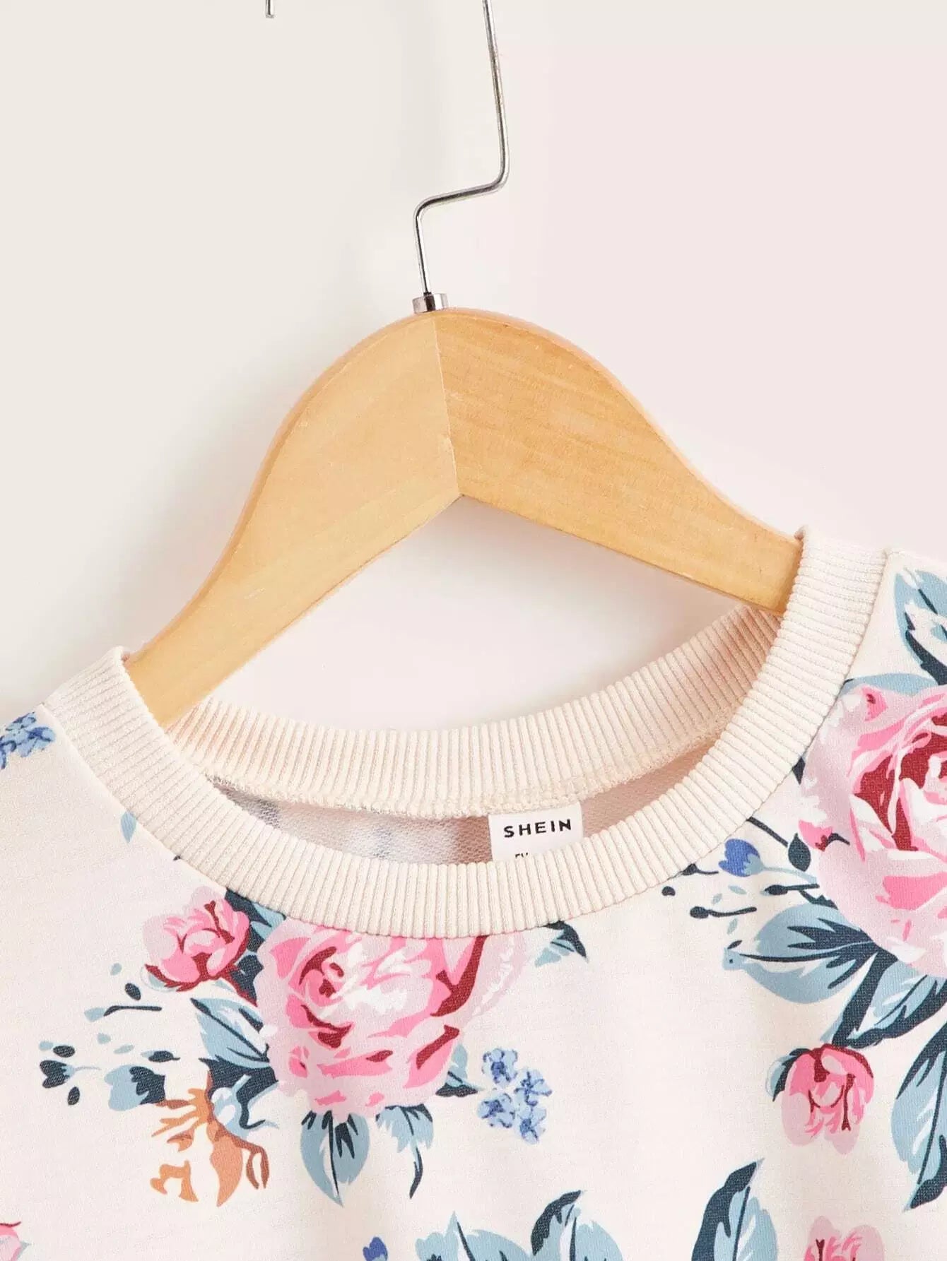 سويت شيرت بناتي بطبعة زهور منسدلة الكتفين