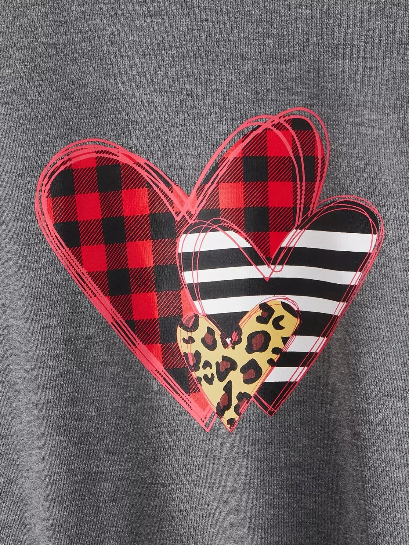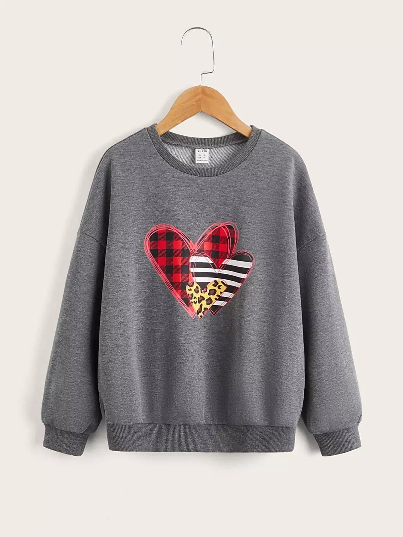 بلوفر بناتي بطبعة مربعات وقلب منسدل على الكتف