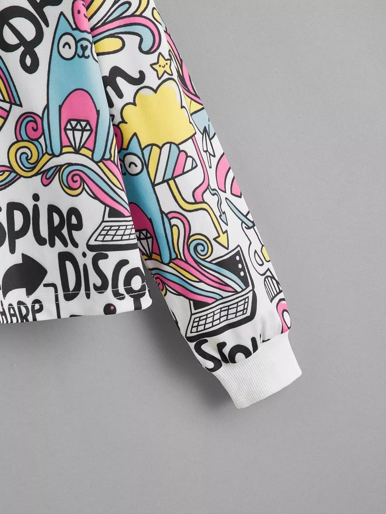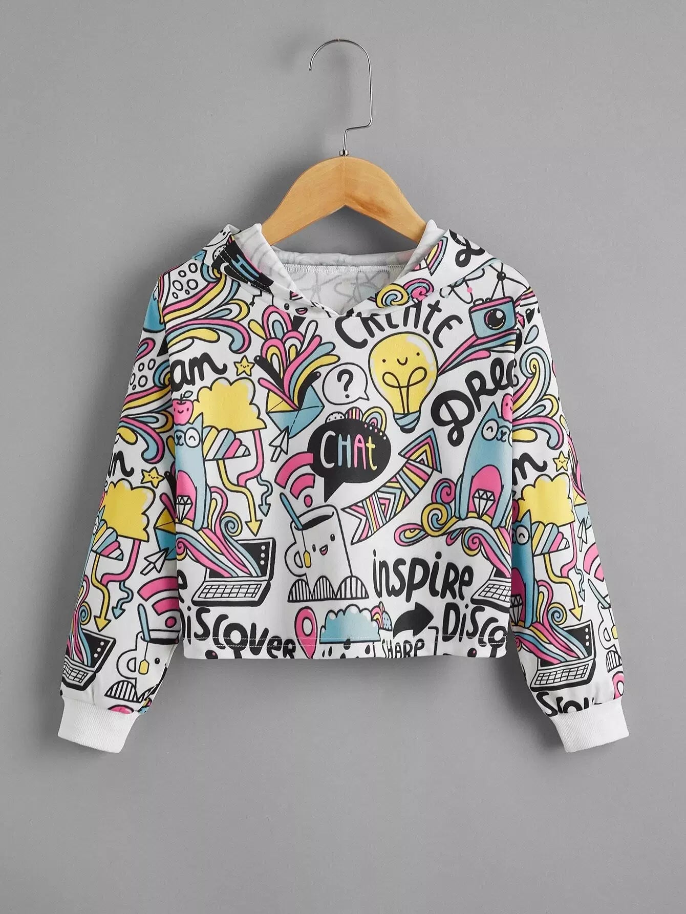 سويت شيرت بقبعة بغطاء رأس برسومات ورسومات كرتونية للفتيات