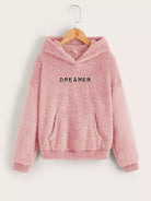 هودي تيدي للبنات منقوش عليه حروف منسدلة على الكتف