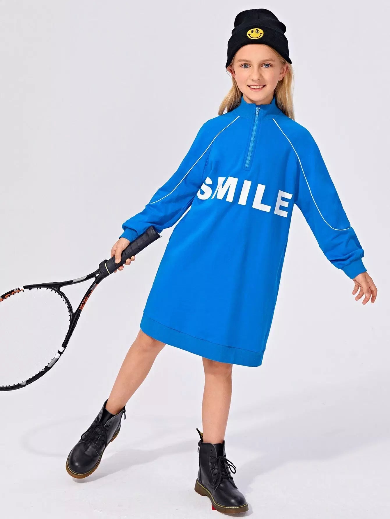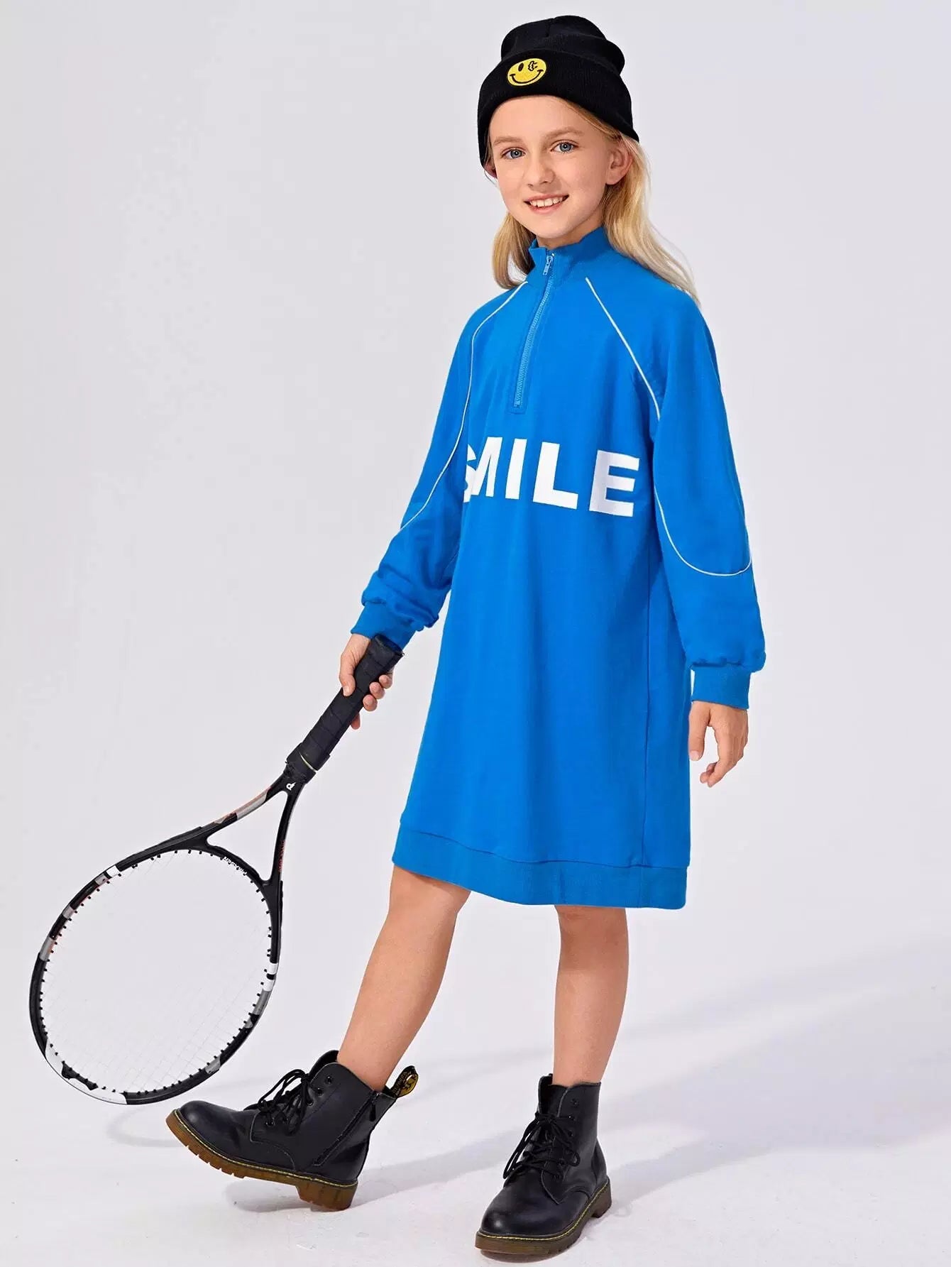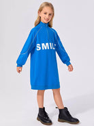 فستان سويت شيرت بطبعة حروف جرافيكية متباينة الألوان للبنات