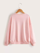 بلوفر بناتي برسومات أحرف منسدلة على الكتف