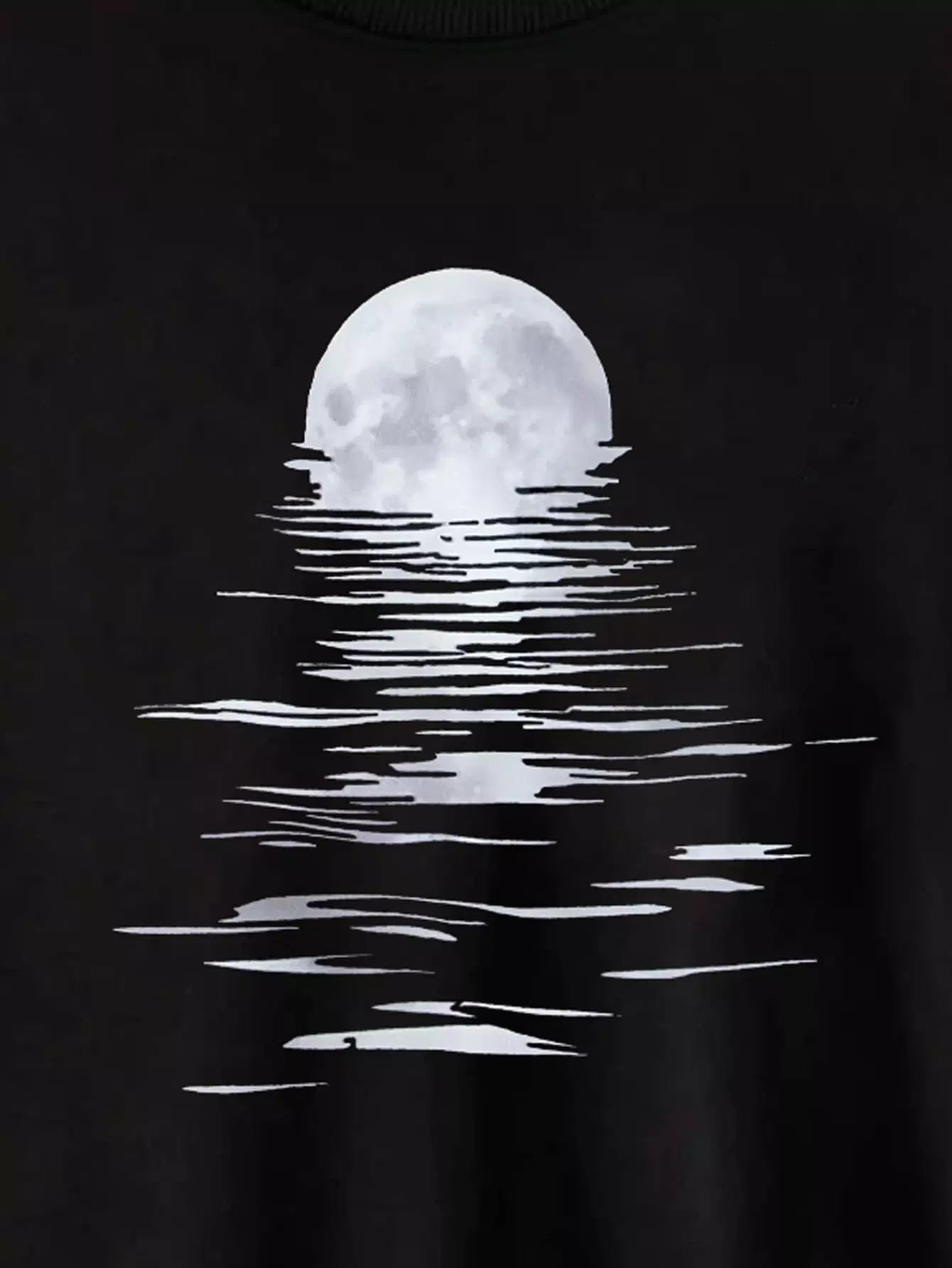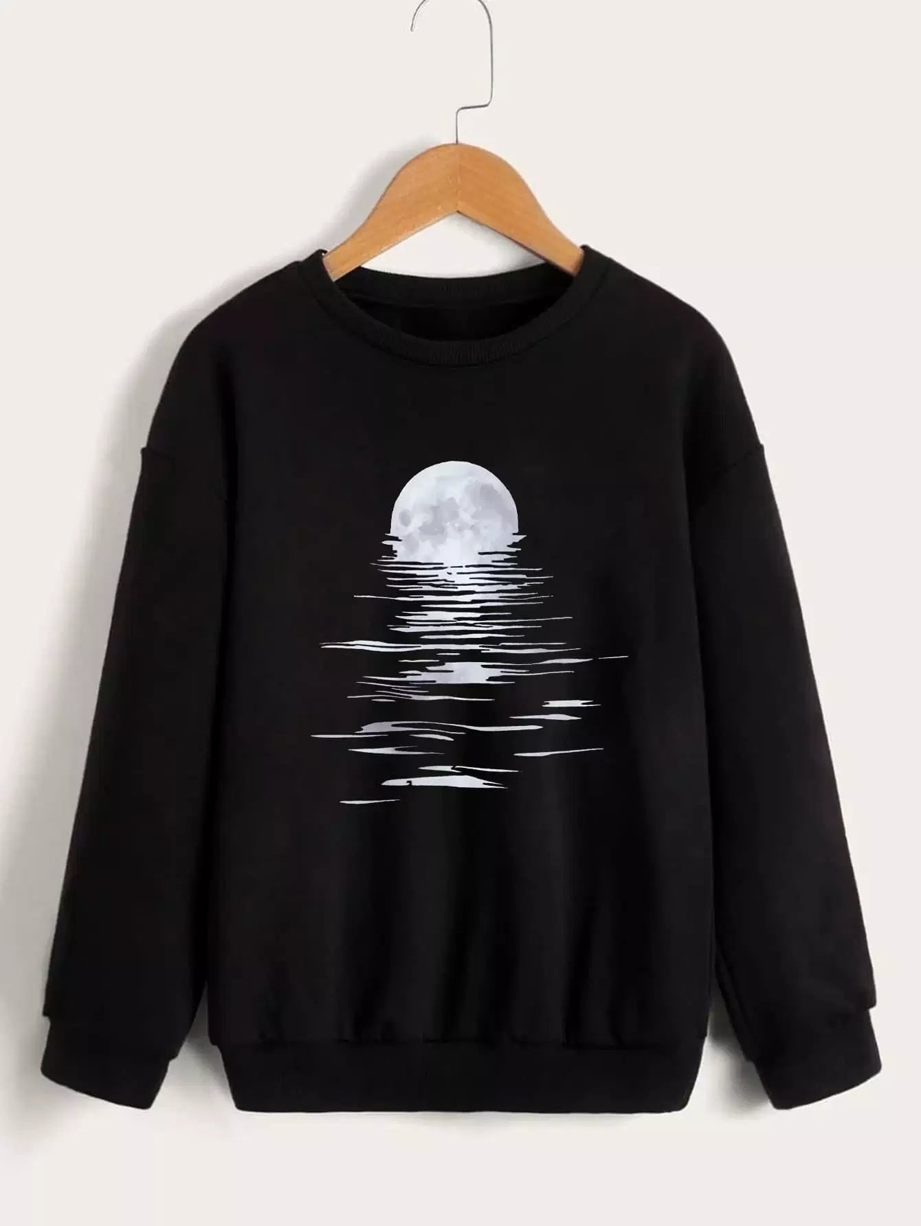 كنزة صوفية منسدلة على الكتف بطبعة قمر للبنات