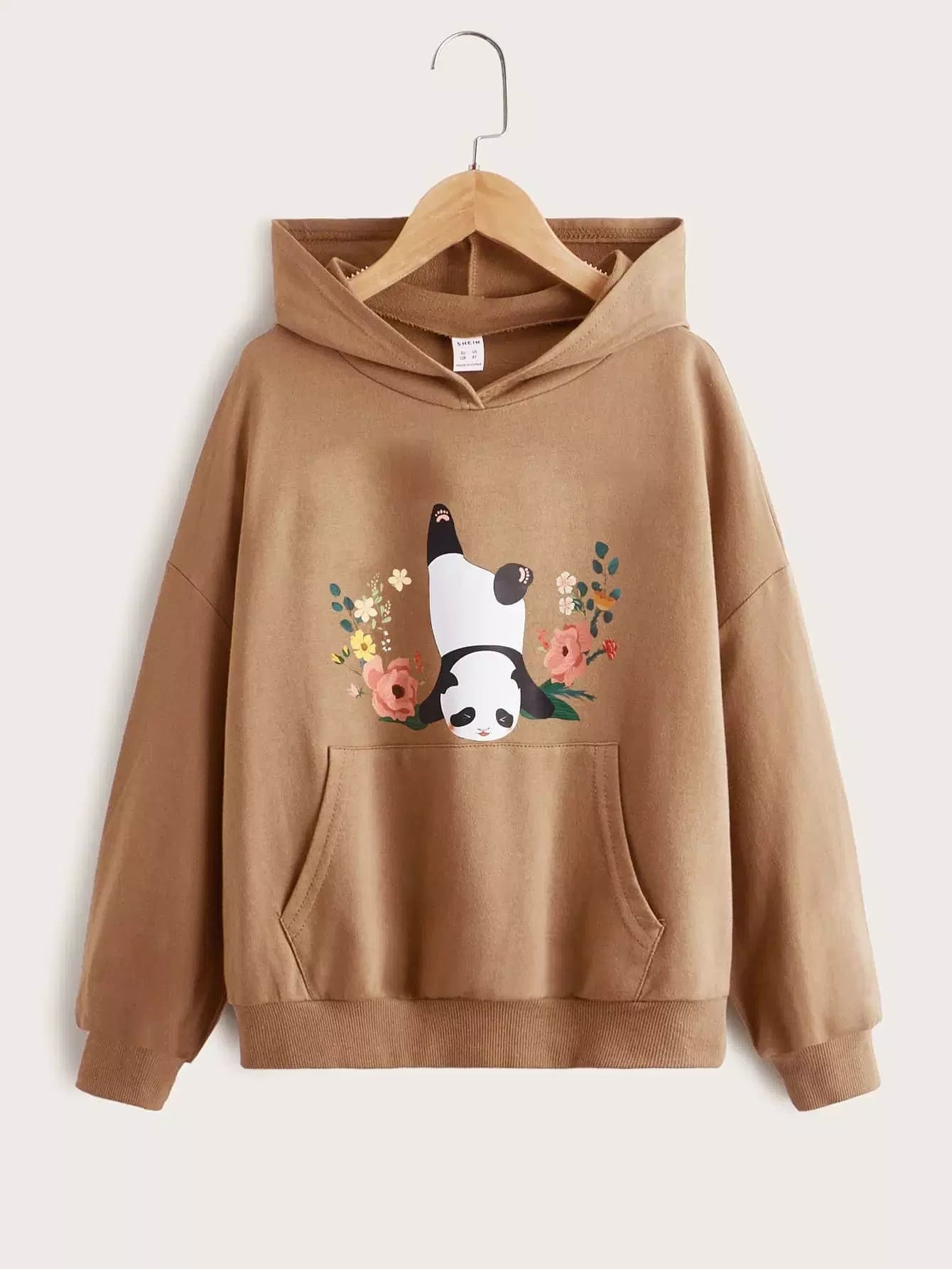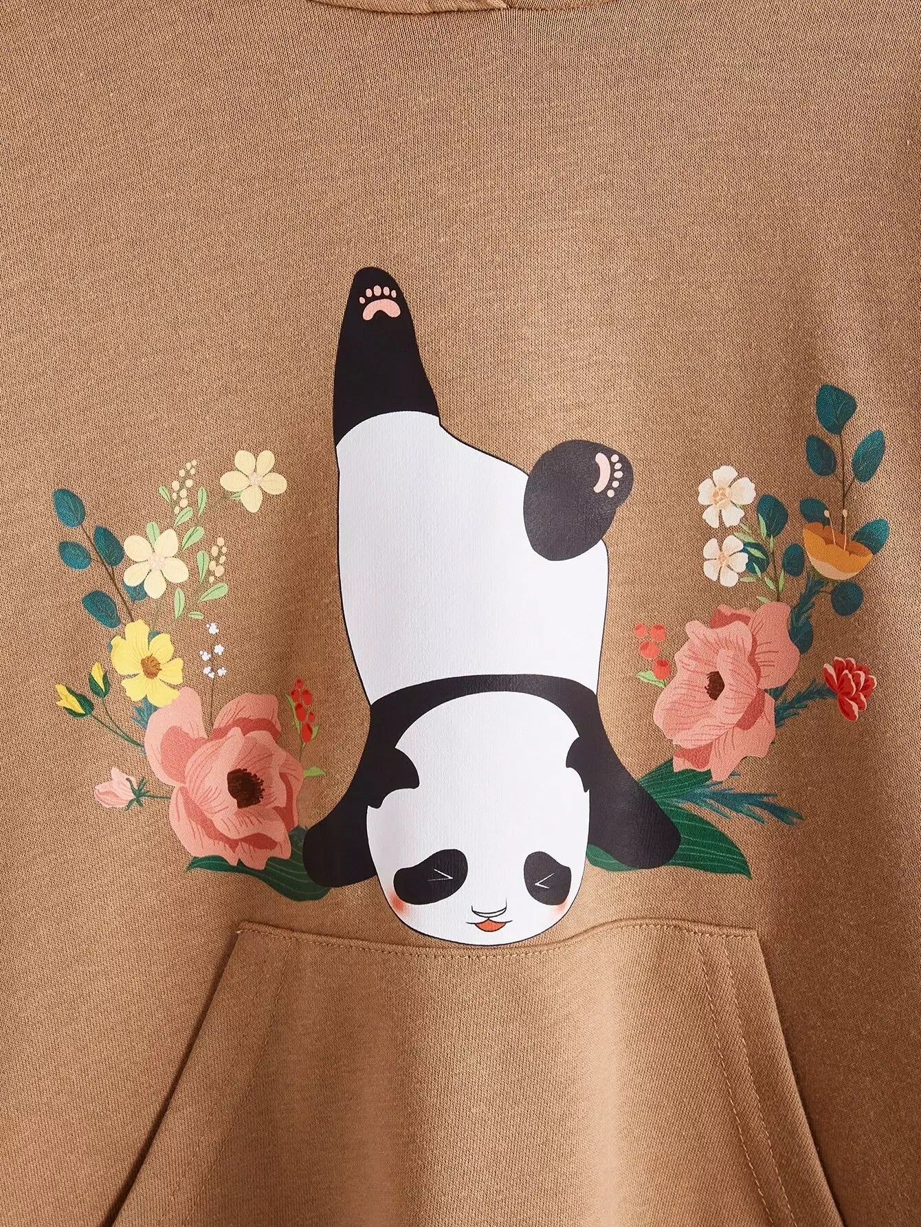 هودي بطبعة باندا وزهور للبنات بجيوب أمامية