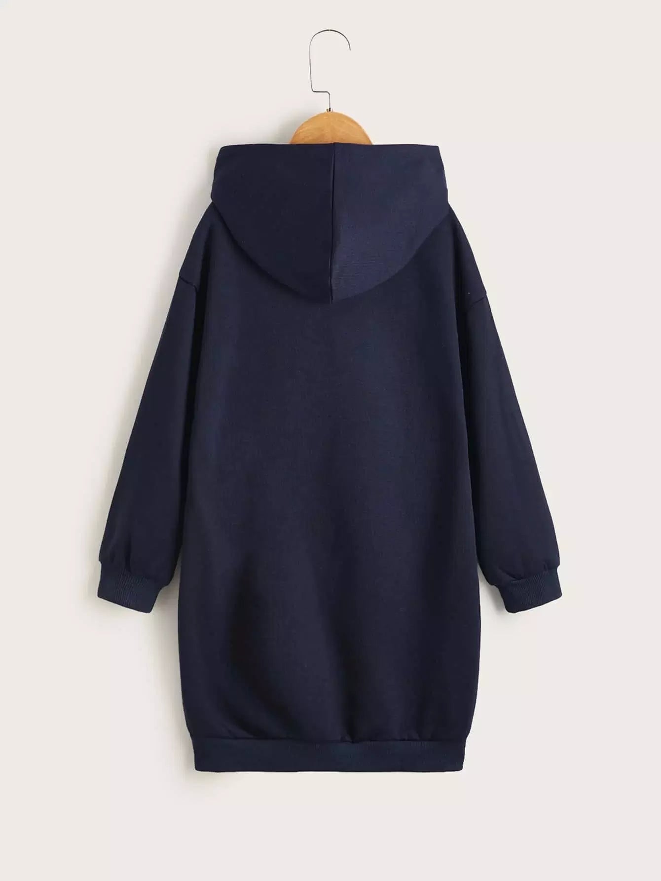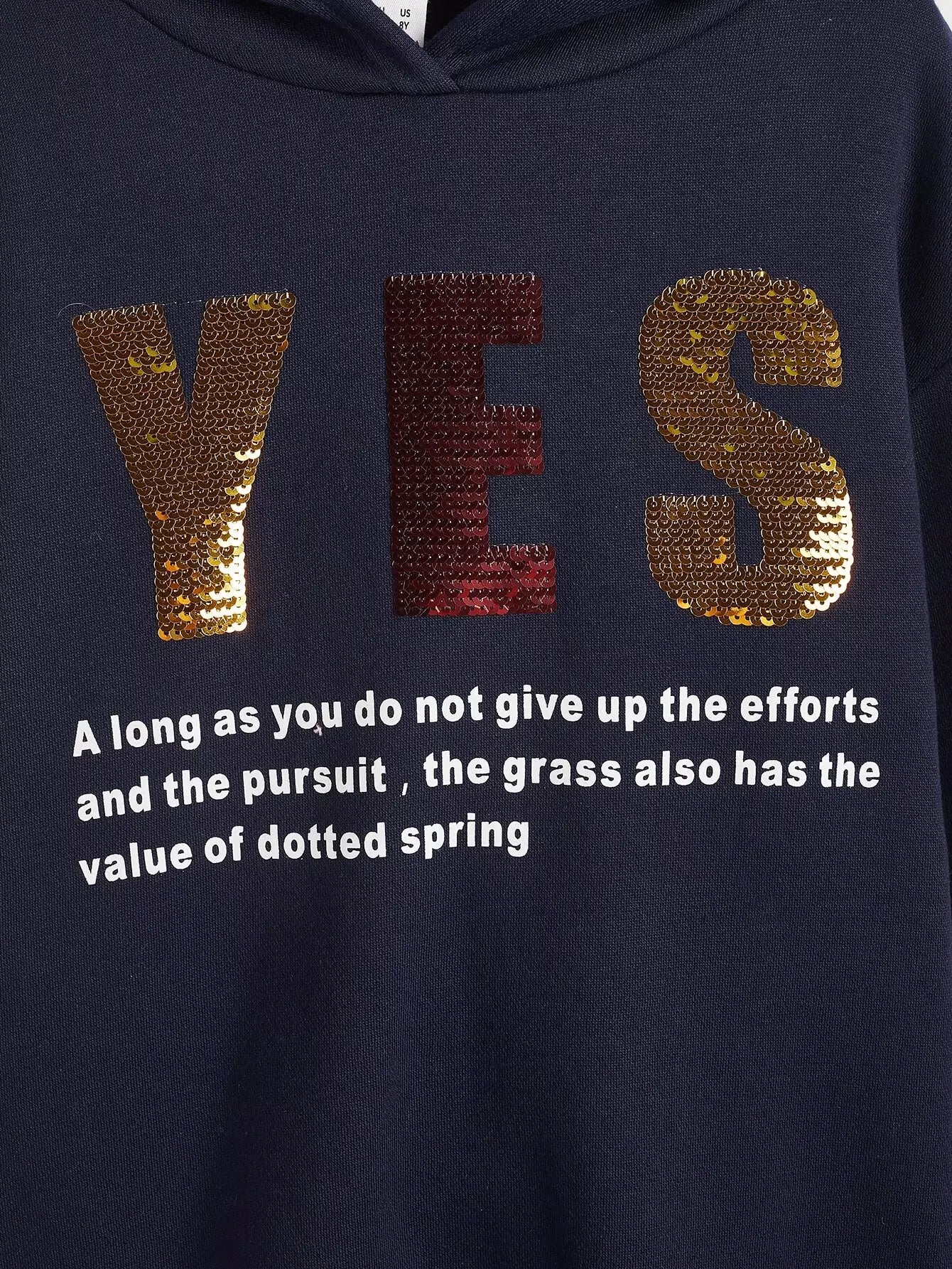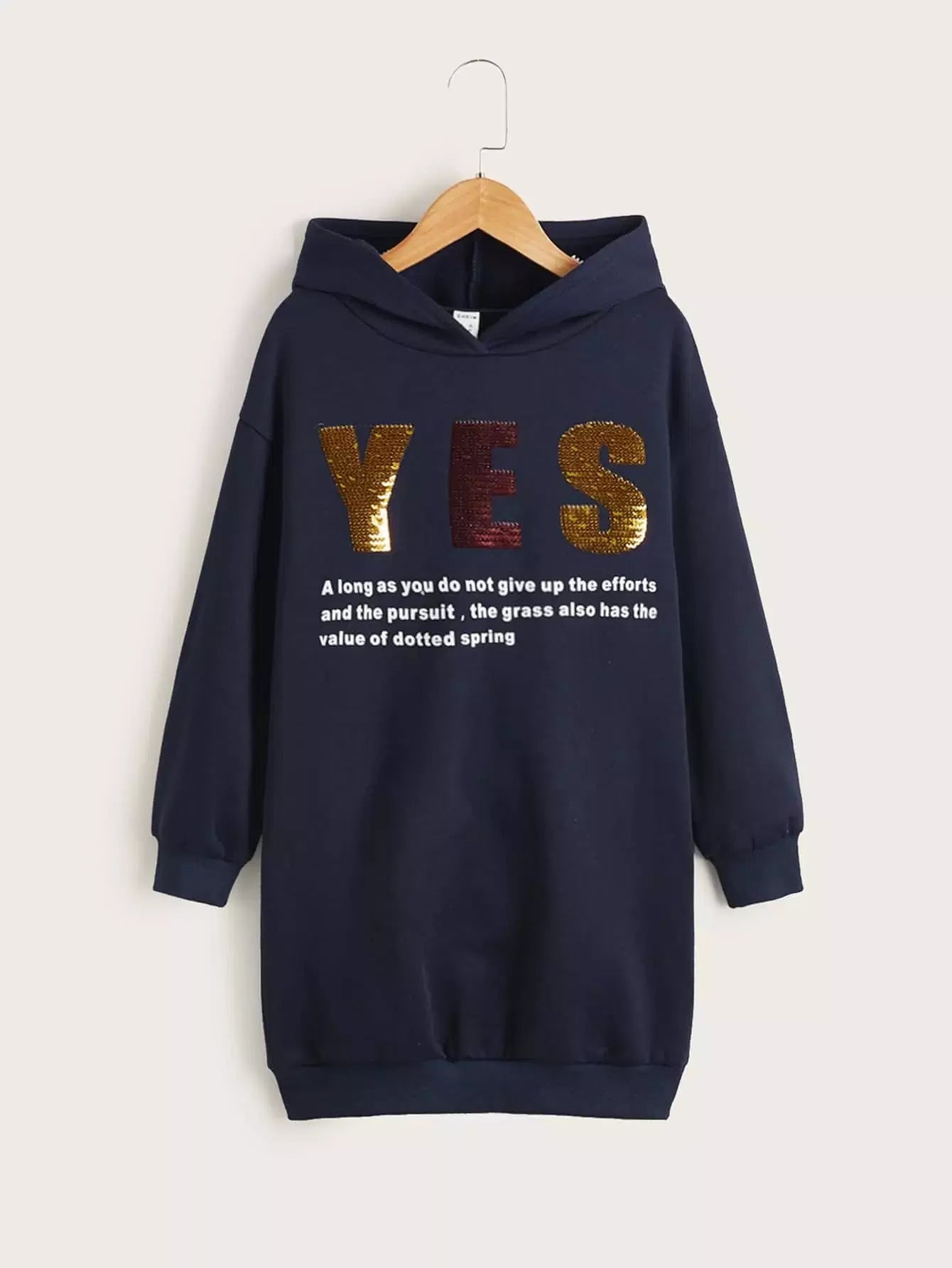 فستان هودي برسومات شعارات مزخرف بالترتر للبنات