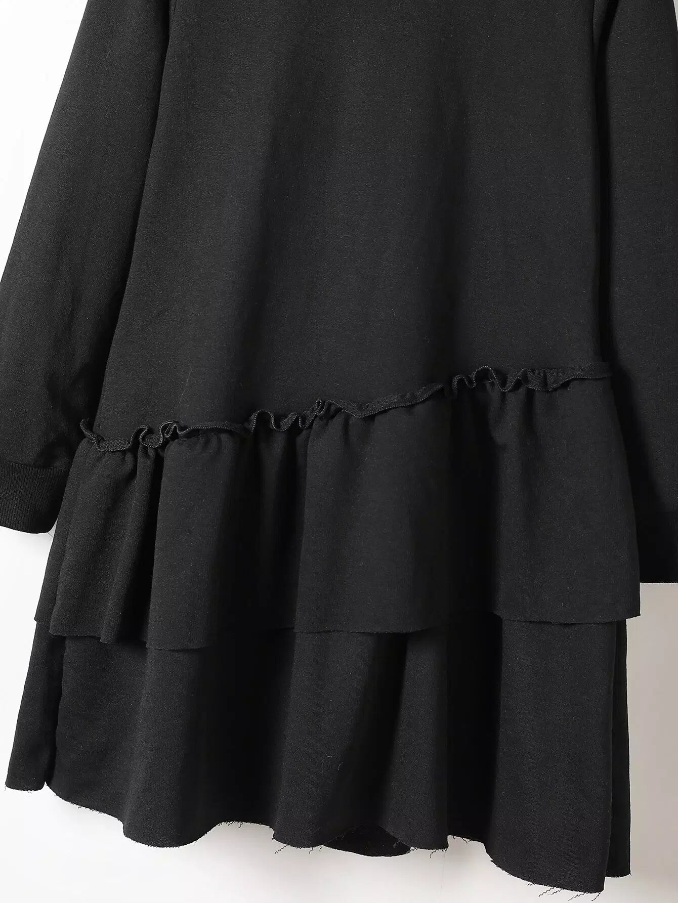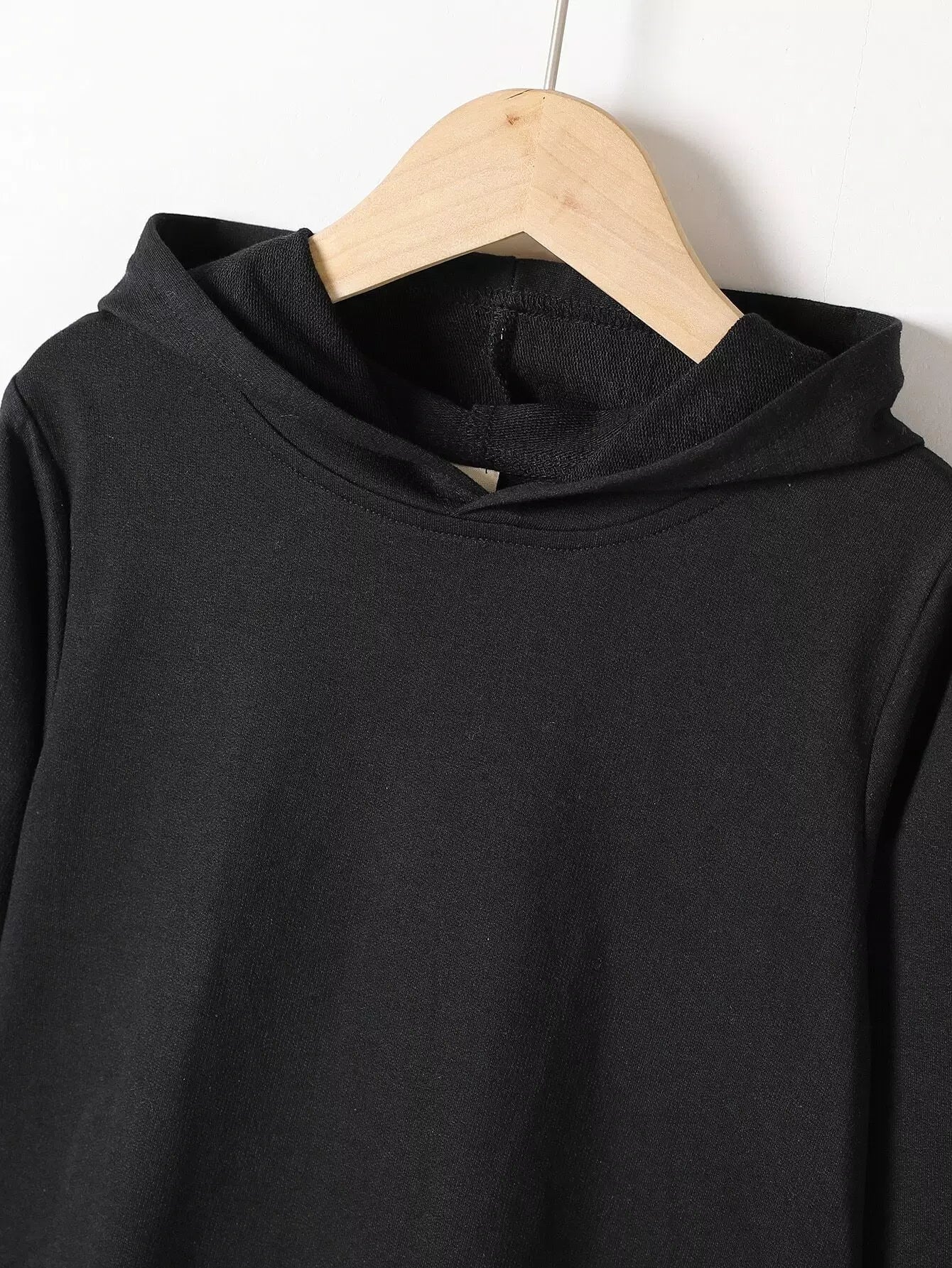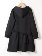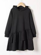 فستان بناتي سادة بحافة مكشكشة بقلنسوة بغطاء للرأس سادة