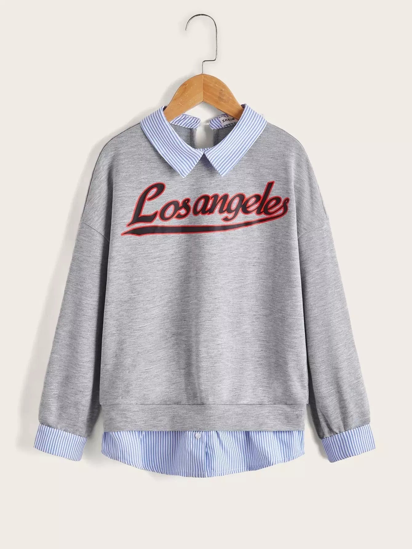 سويت شيرت 2 في 1 مخطط ومطبوع عليه حروف للبنات