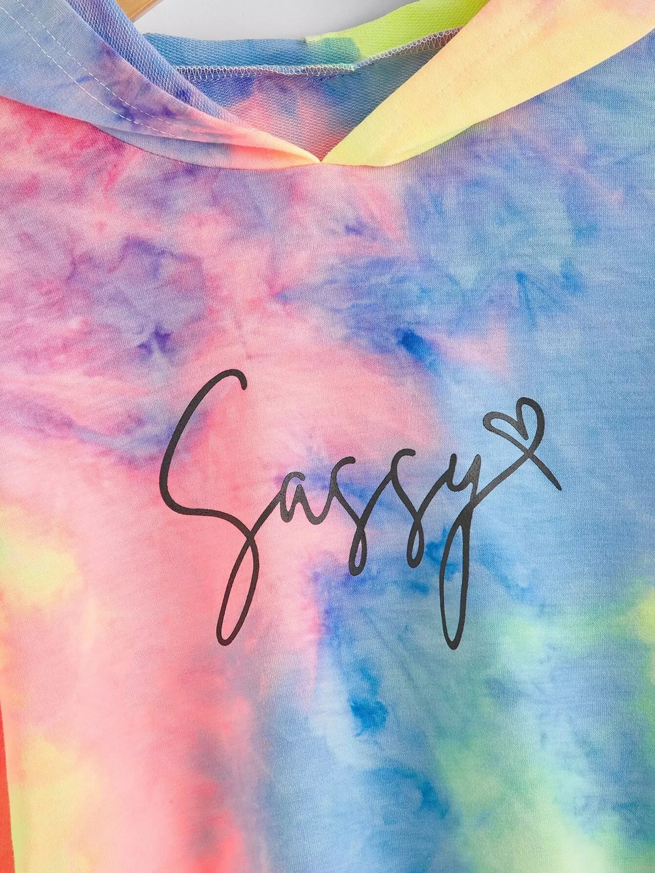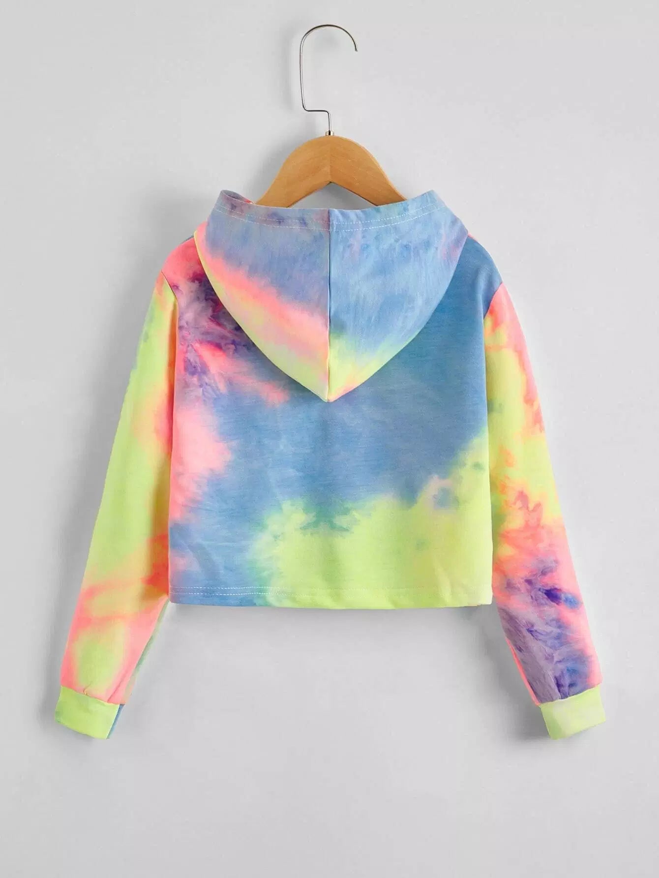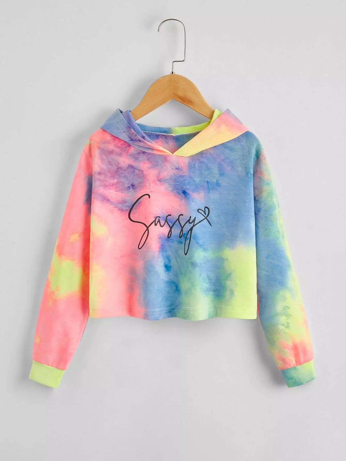 سويت شيرت بغطاء للرأس مصبوغ برسومات على شكل حرف Tie Dye للبنات