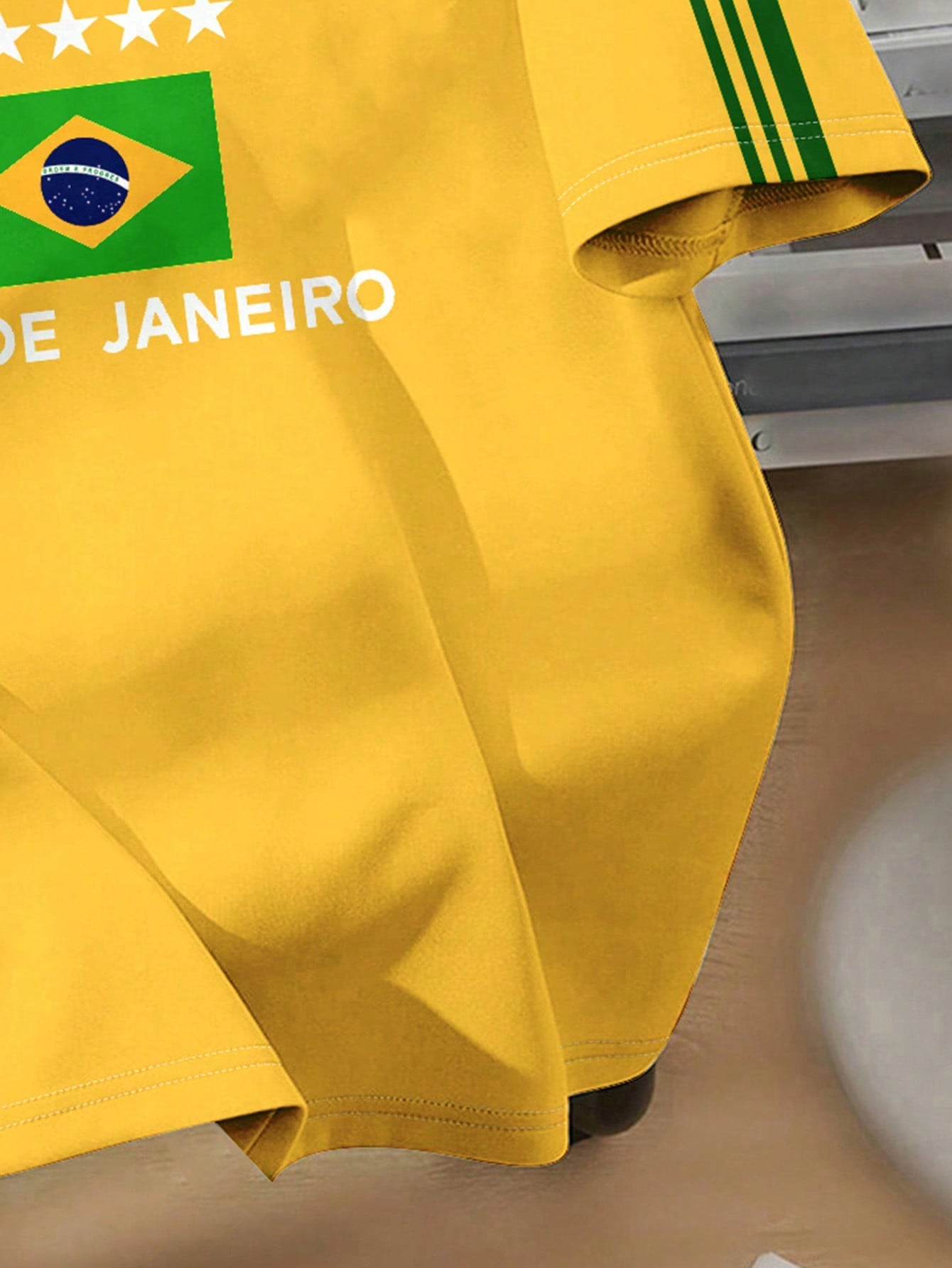 Brazil, Teen Boys' Casual Cartoon Graphic Round Neck Short Sleeve T-Shirt, Suitable For Summer