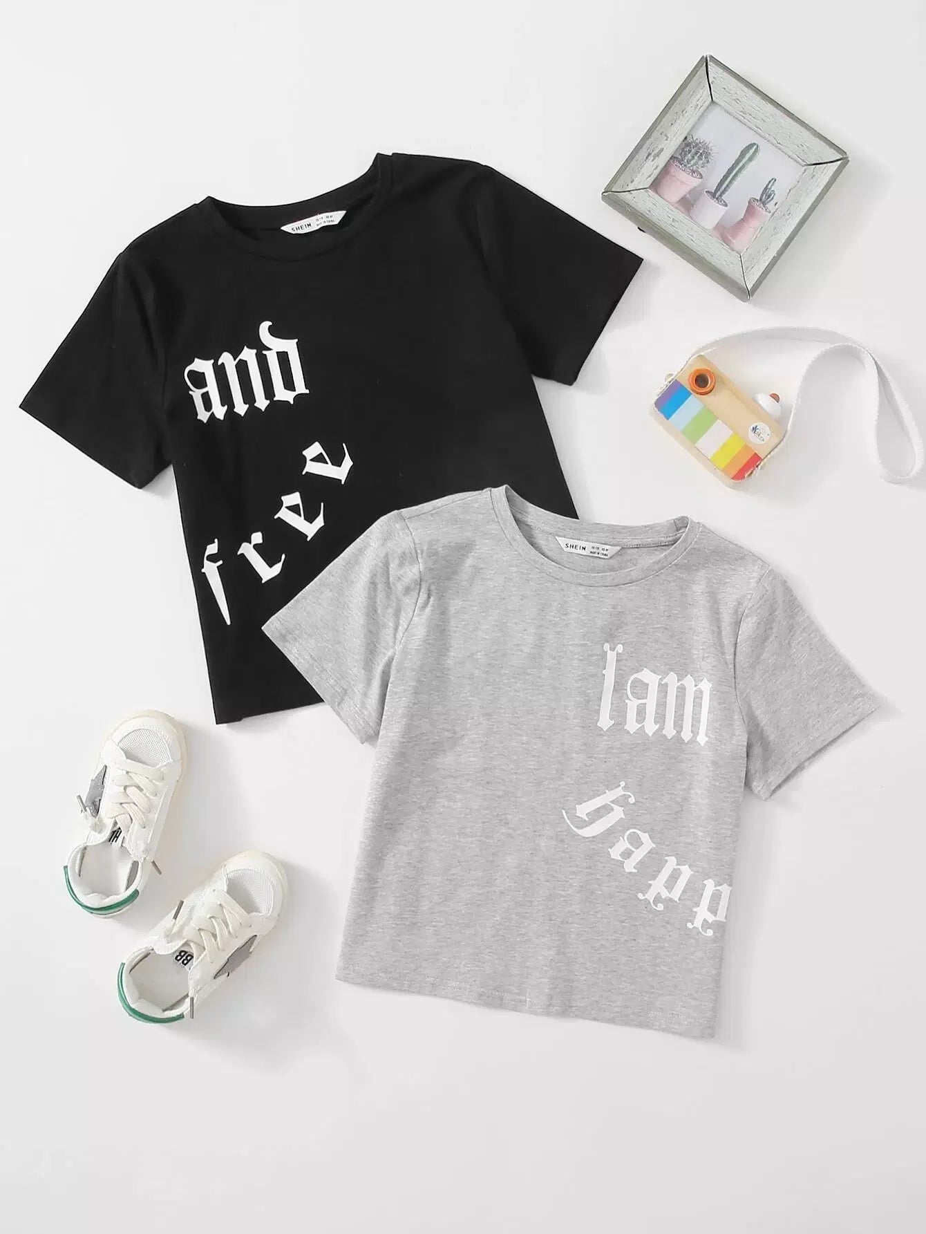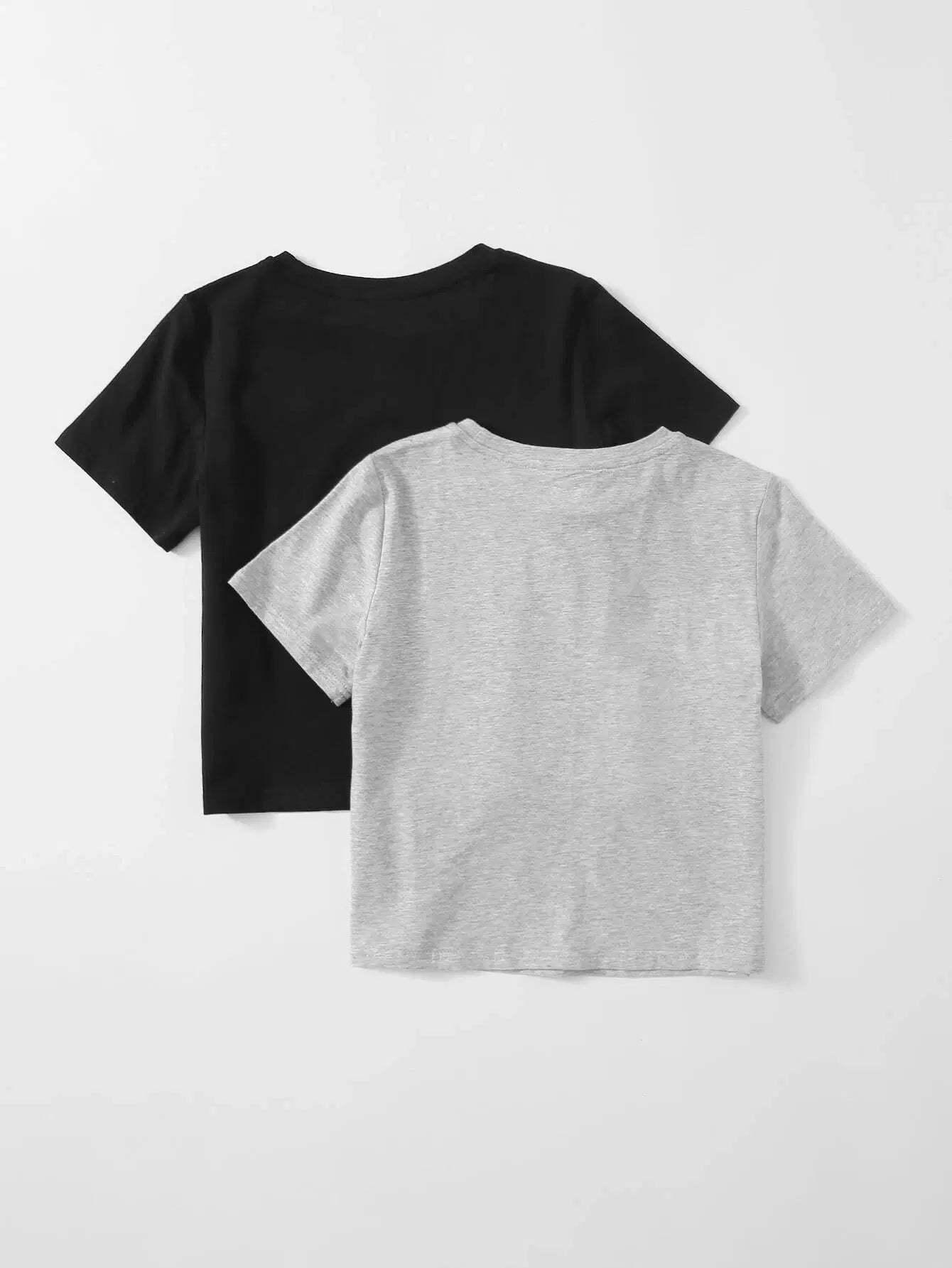 مجموعة من قطعتين من القمصان المزينة بحروف جرافيكية للفتيات