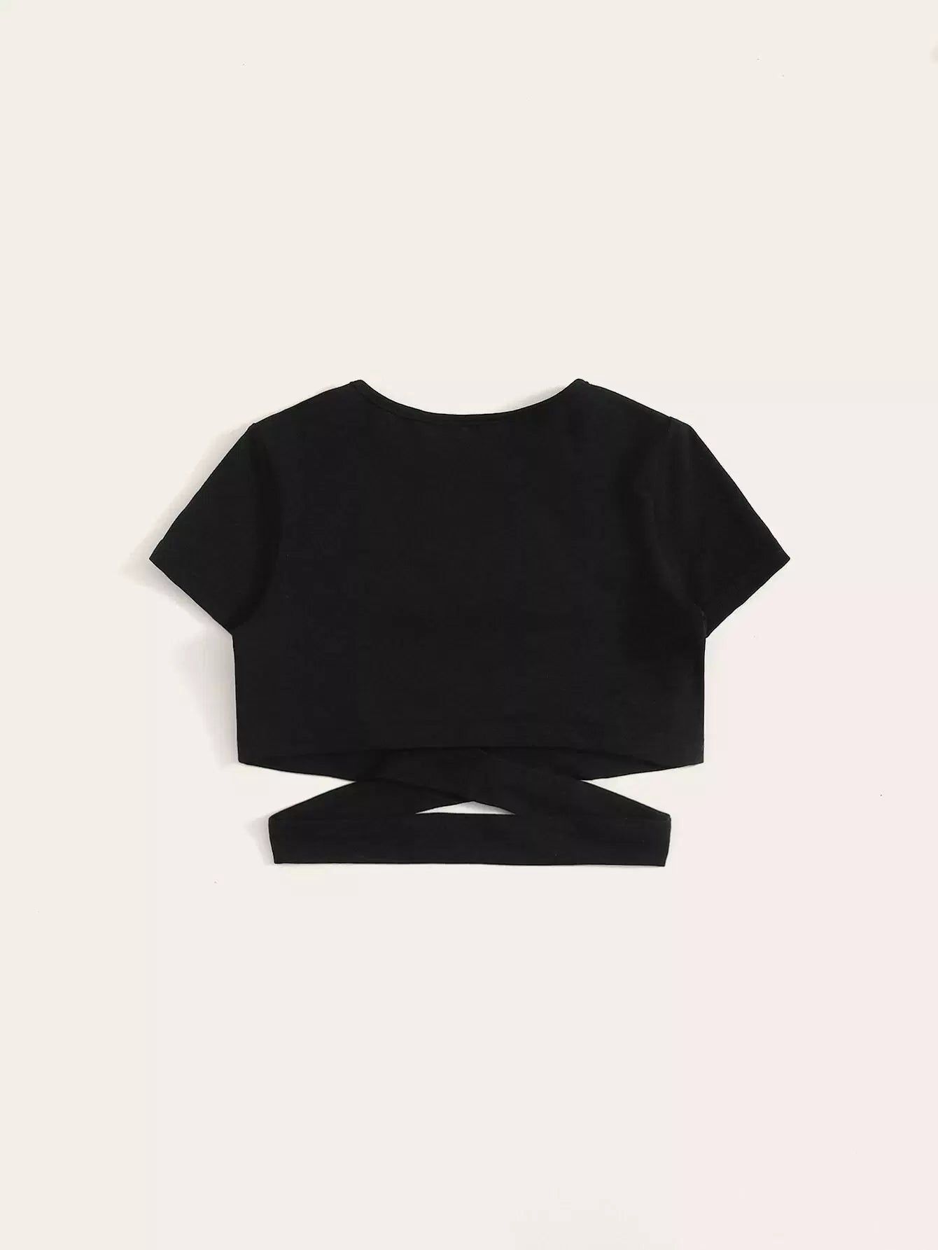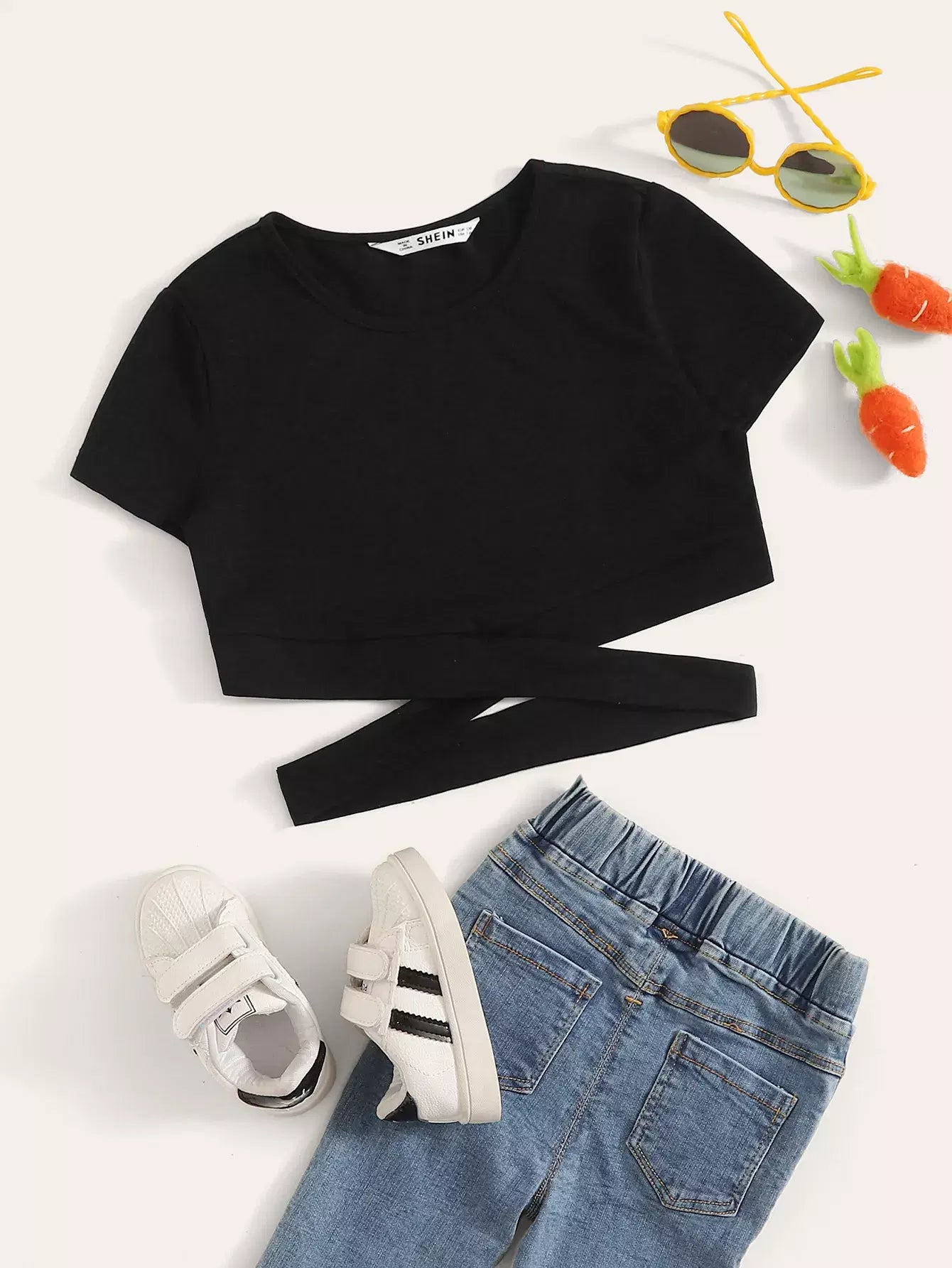 بلوزة بناتية متقاطعة ذات تصميم سادة